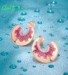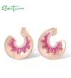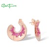 SANTUZZA 925 Sterling Silver Earrings White CZ Created Ruby Geometric Half Moon Jewelry