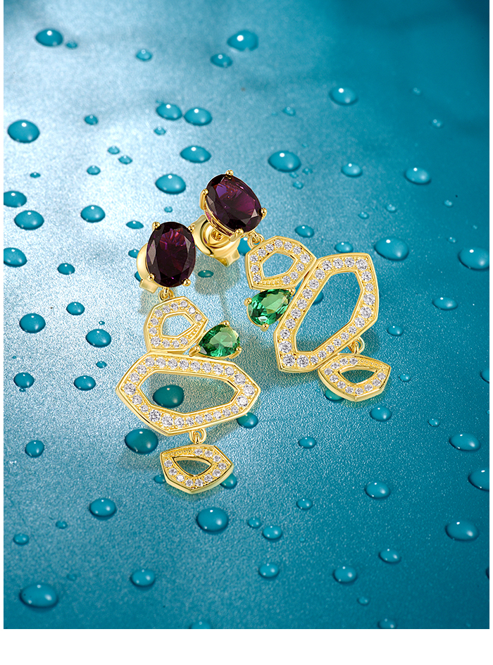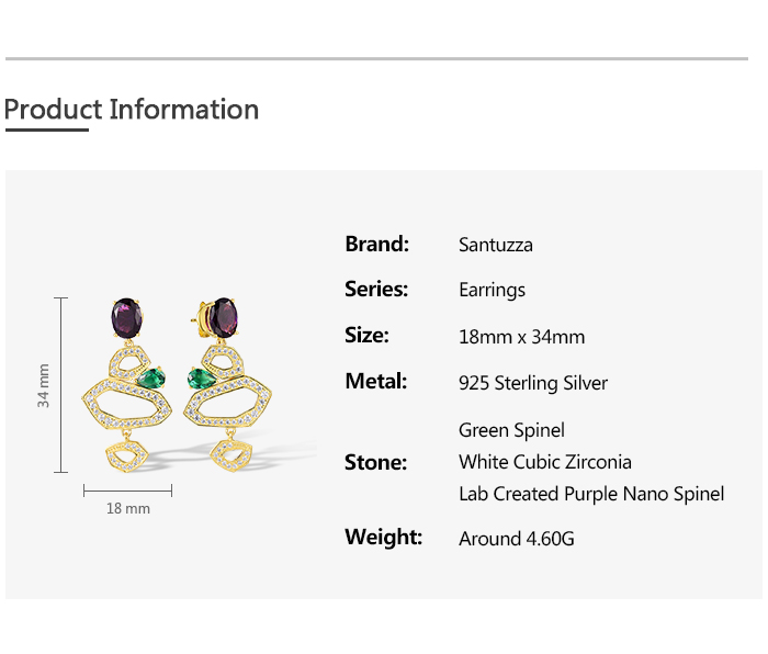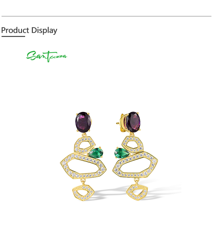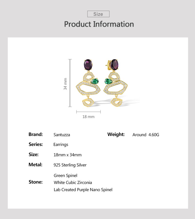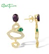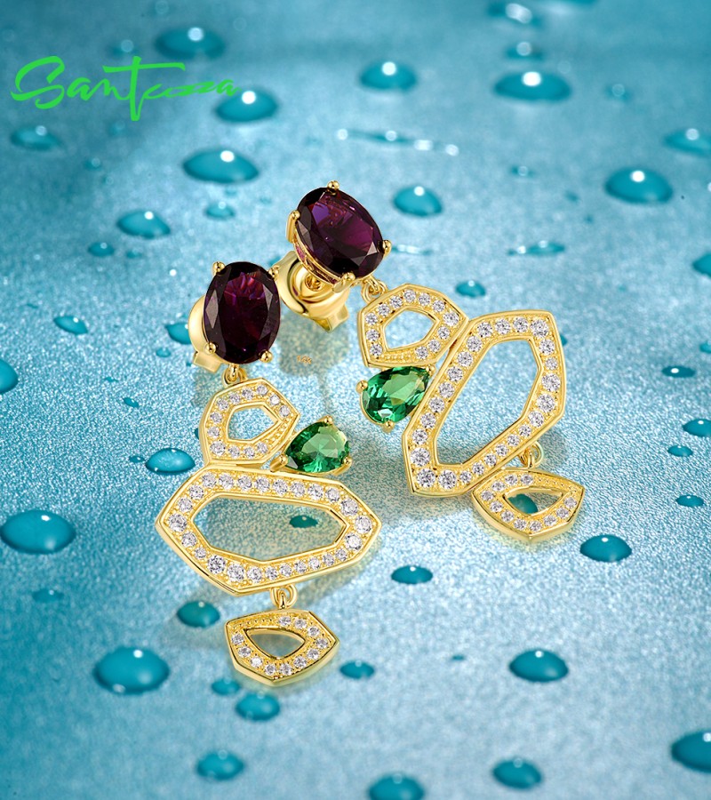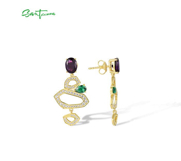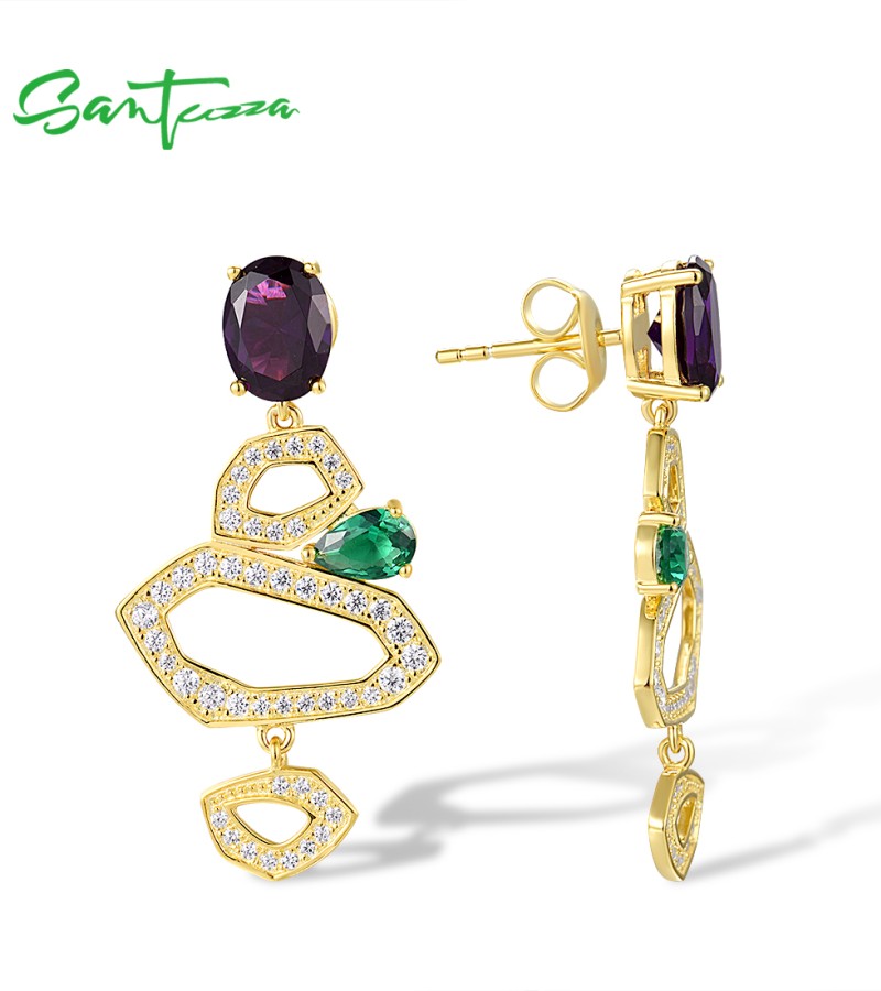 SANTUZZA 925 Sterling Silver Stud Earrings Purple Stones White CZ Geometric Dangling Earrings Jewelry