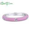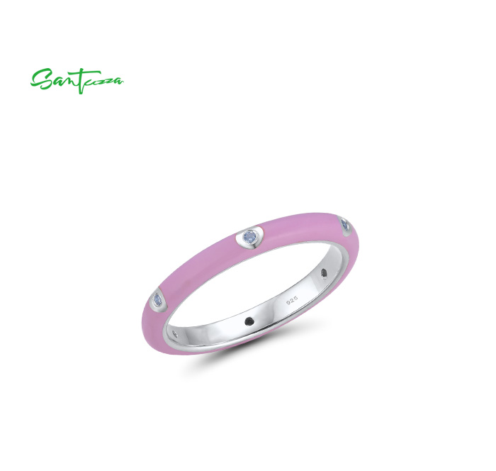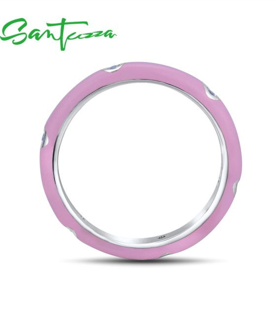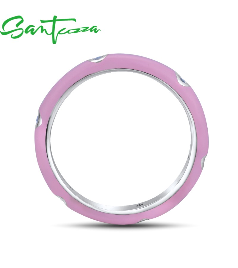SANTUZZA 925 Sterling Silver White Cubic Zirconia Stackable Ring Jewelry Pink Enamel