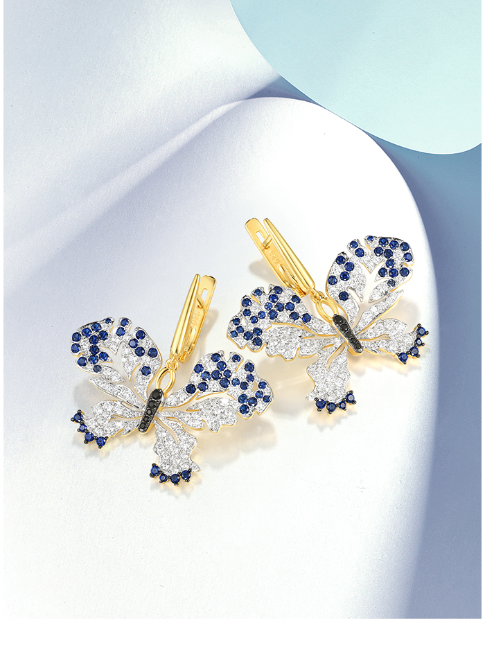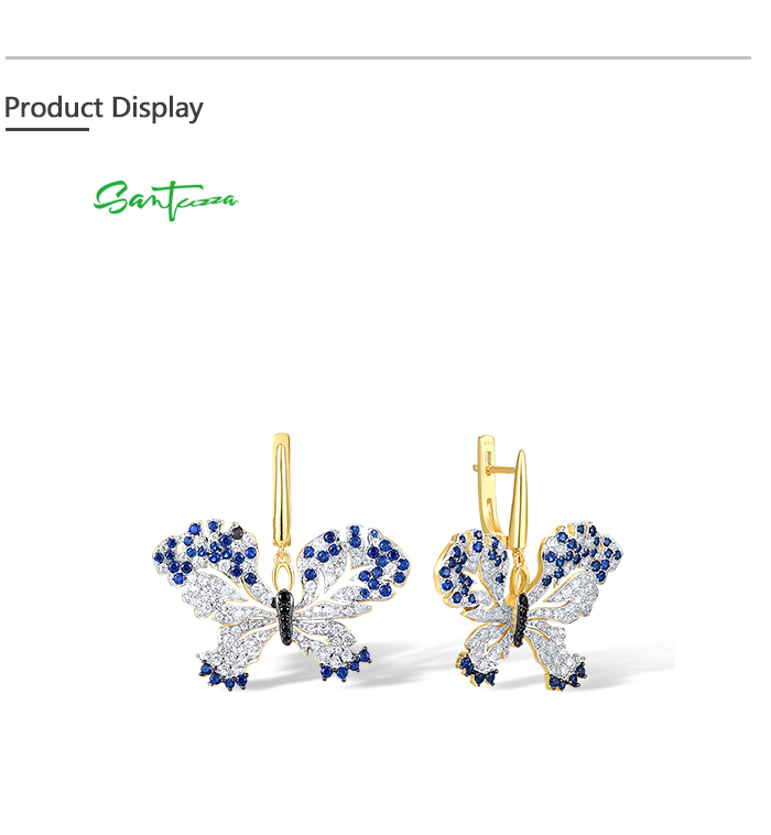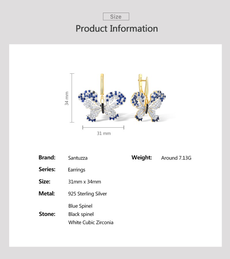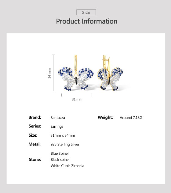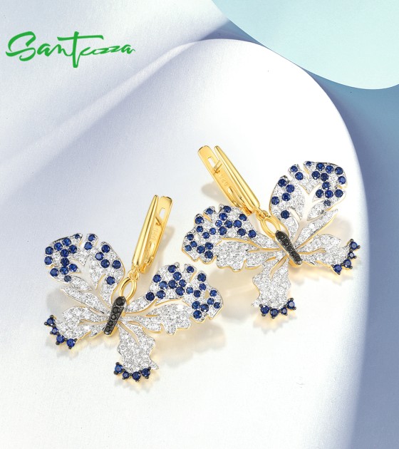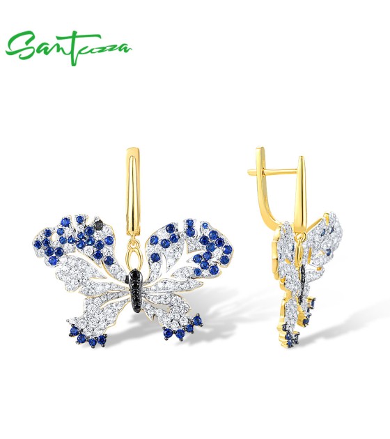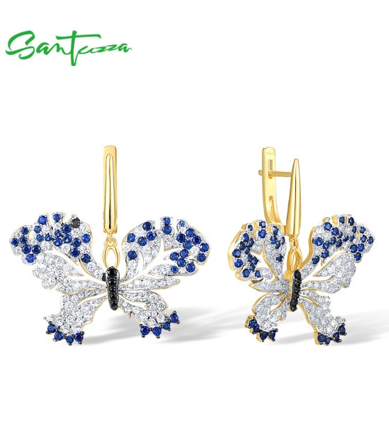 SANTUZZA 925 Sterling Silver Earrings White CZ Blue Spinel Butterfly Jewelry