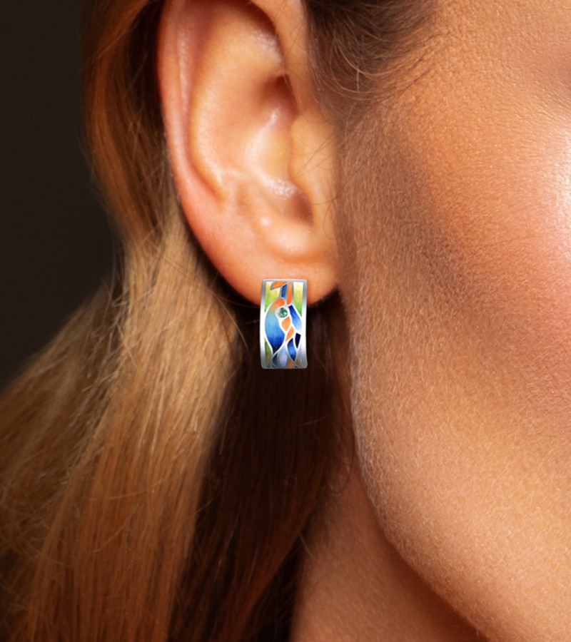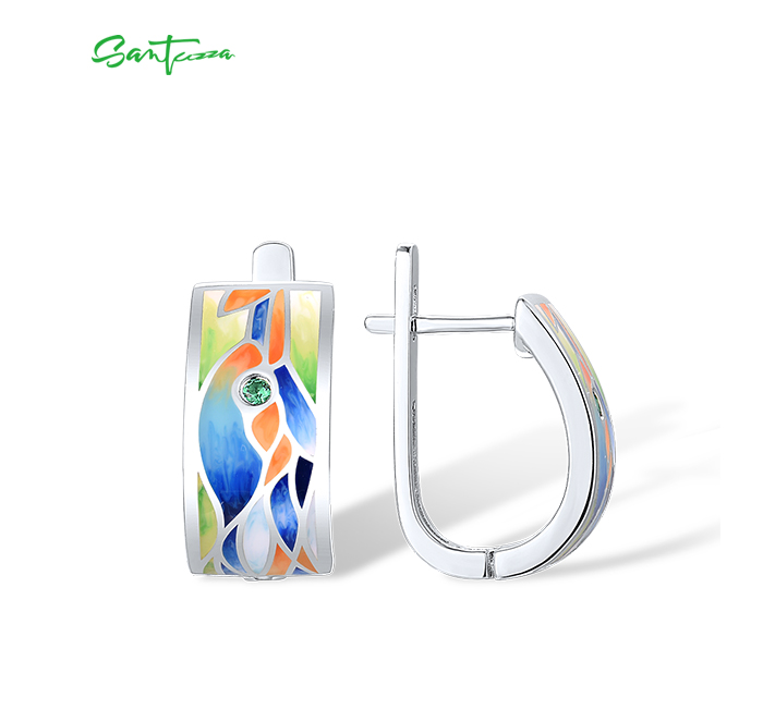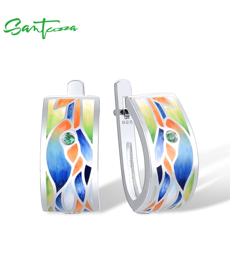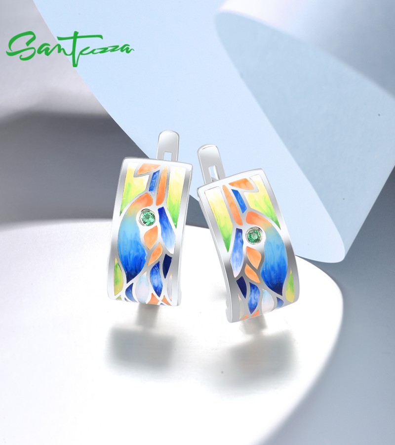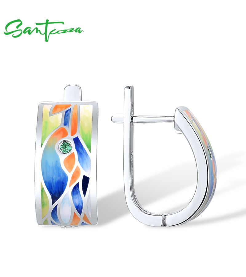 SANTUZZA 925 Sterling Silver Earrings Green Spinel Blue Bird Enamel Earrings Jewelry Handmade