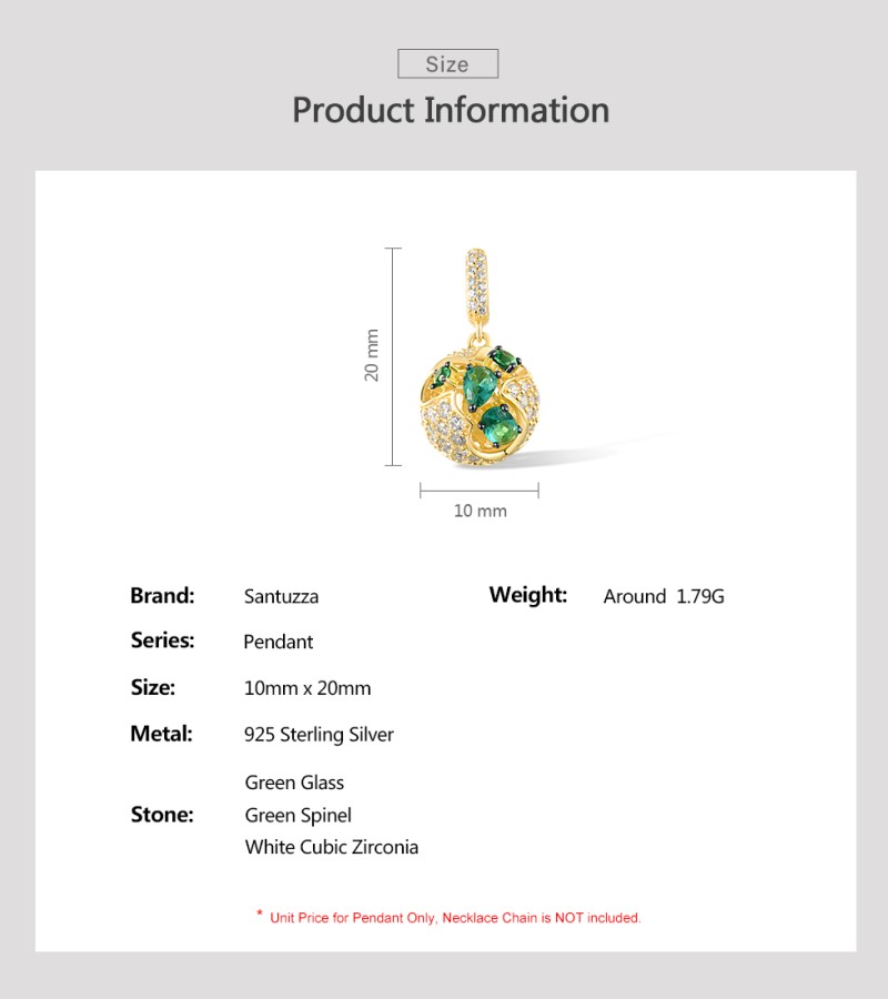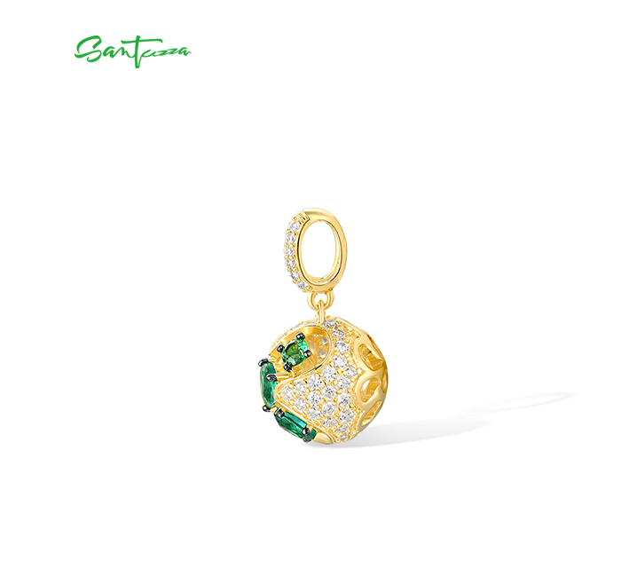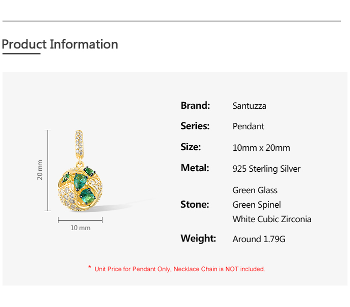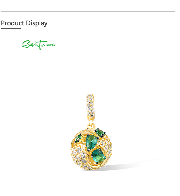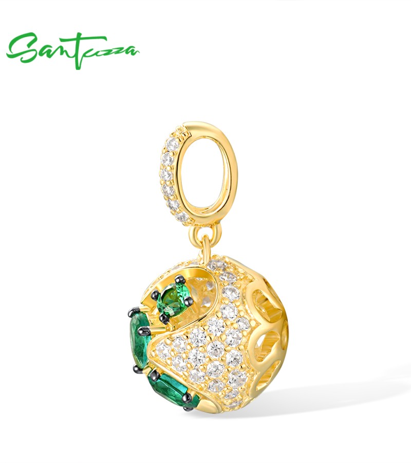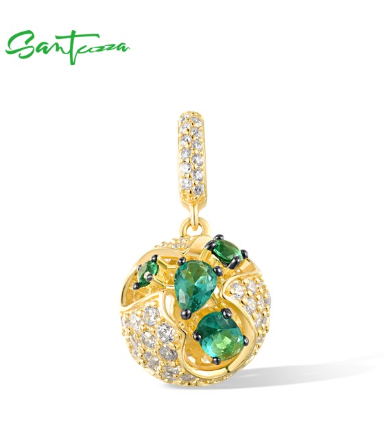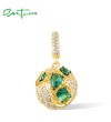 SANTUZZA 925 Sterling Silver Pendant Green Spinel White CZ Jewelry