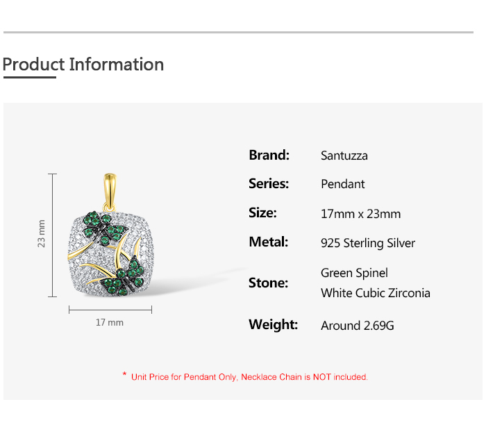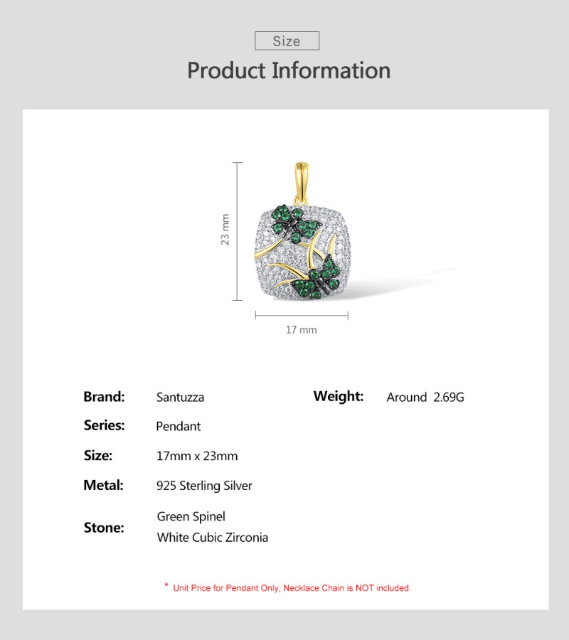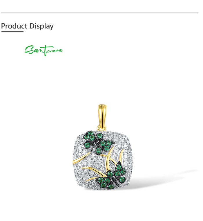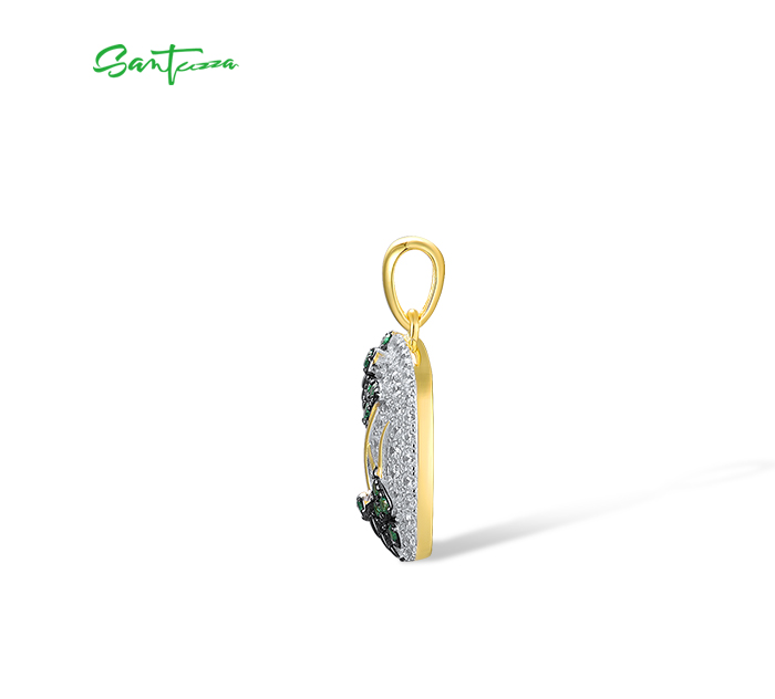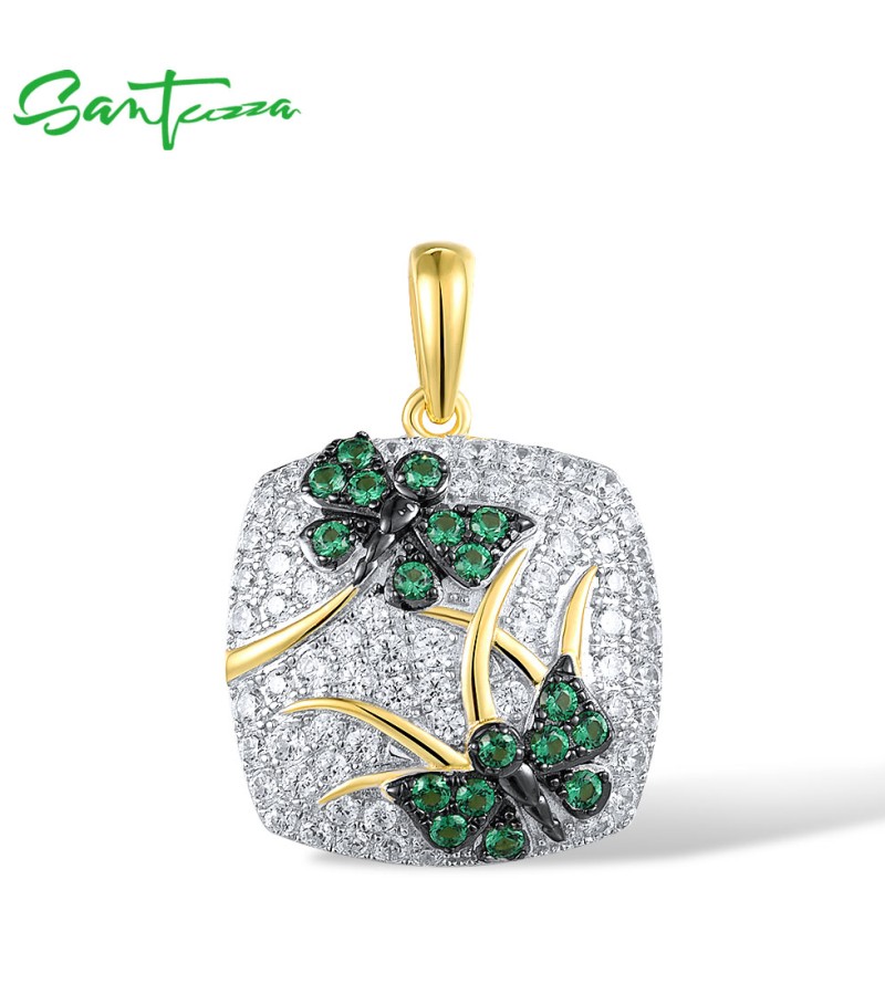 SANTUZZA 925 Sterling Silver Pendant Green Spinel White CZ Gold Color Plated Butterfly Jewelry