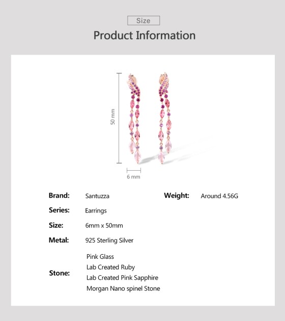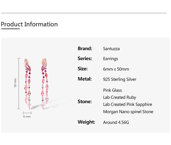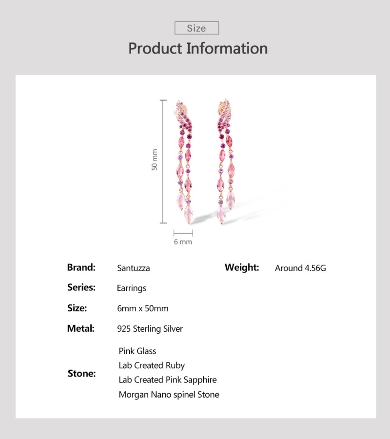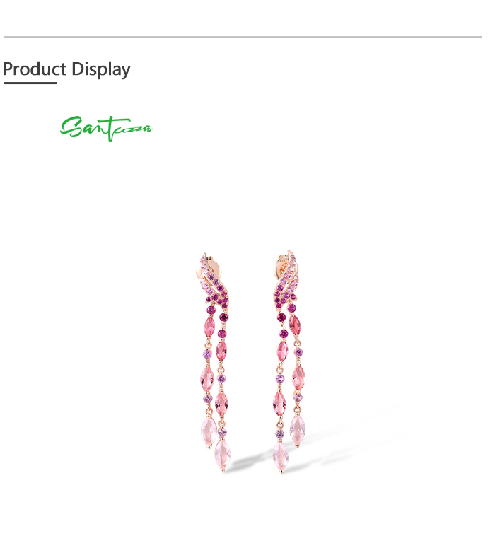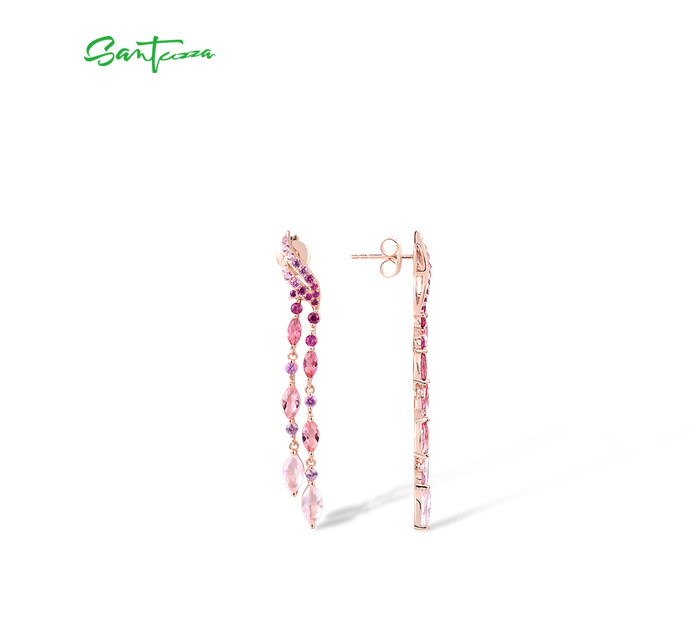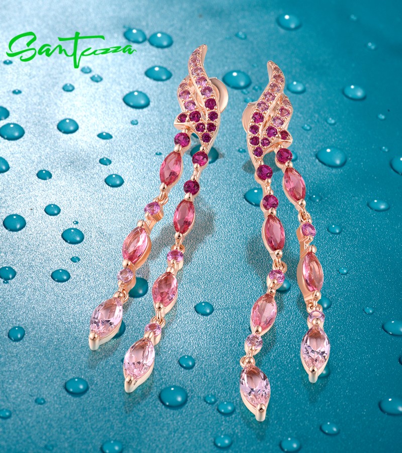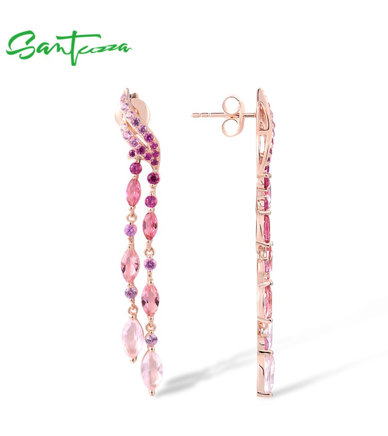 SANTUZZA 925 Sterling Silver Stud Long Earrings Created Pink Sapphire /Ruby Ombre Jewelry