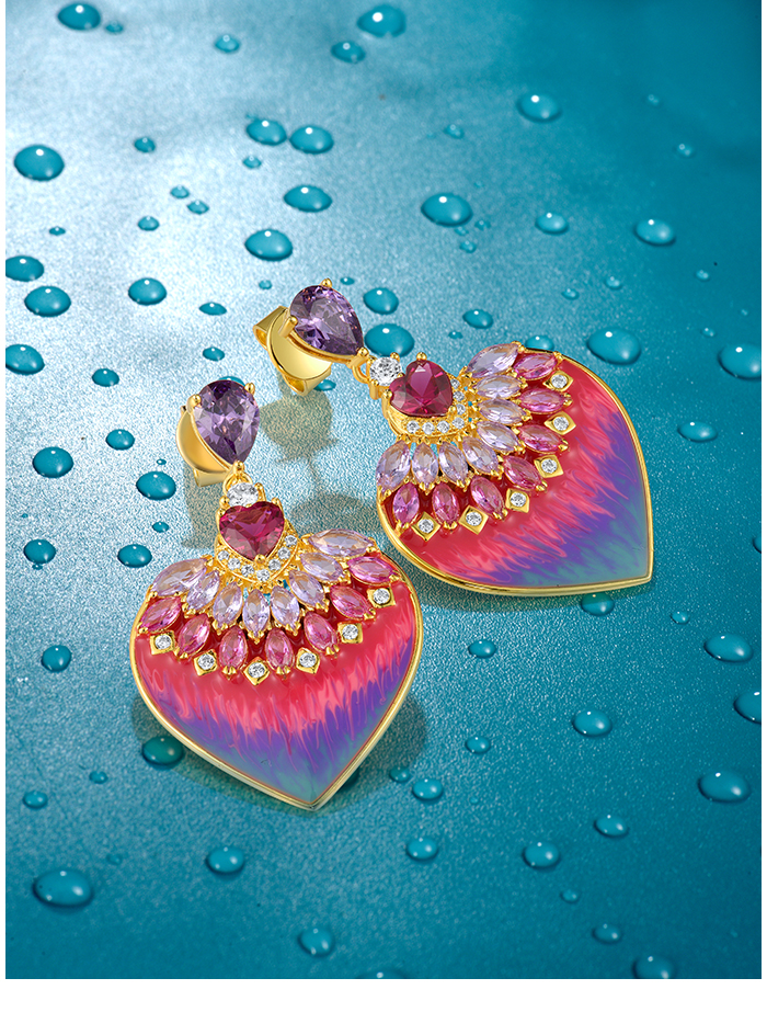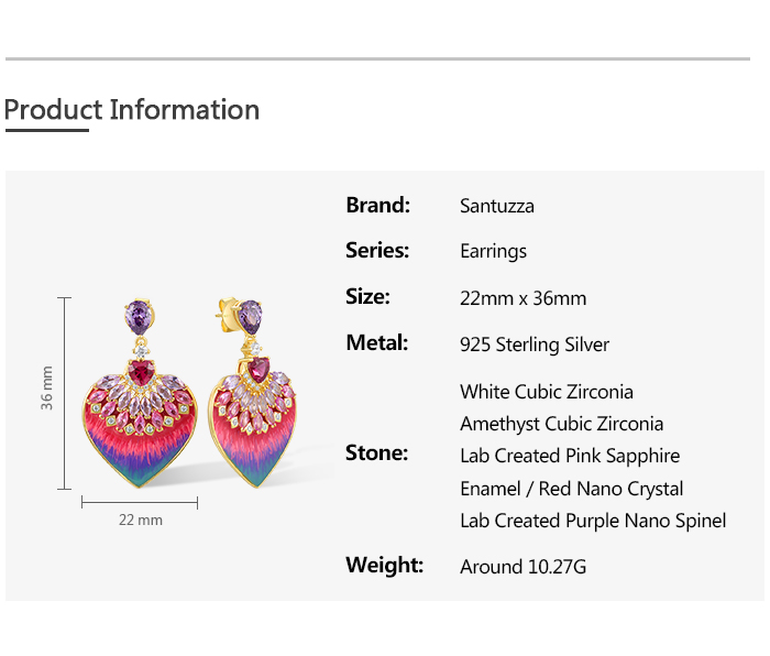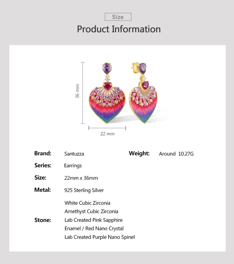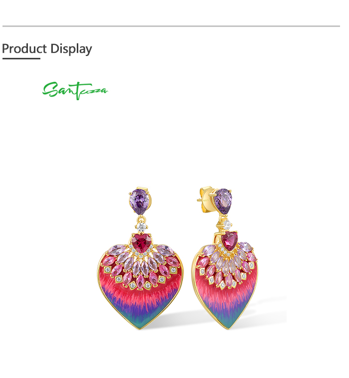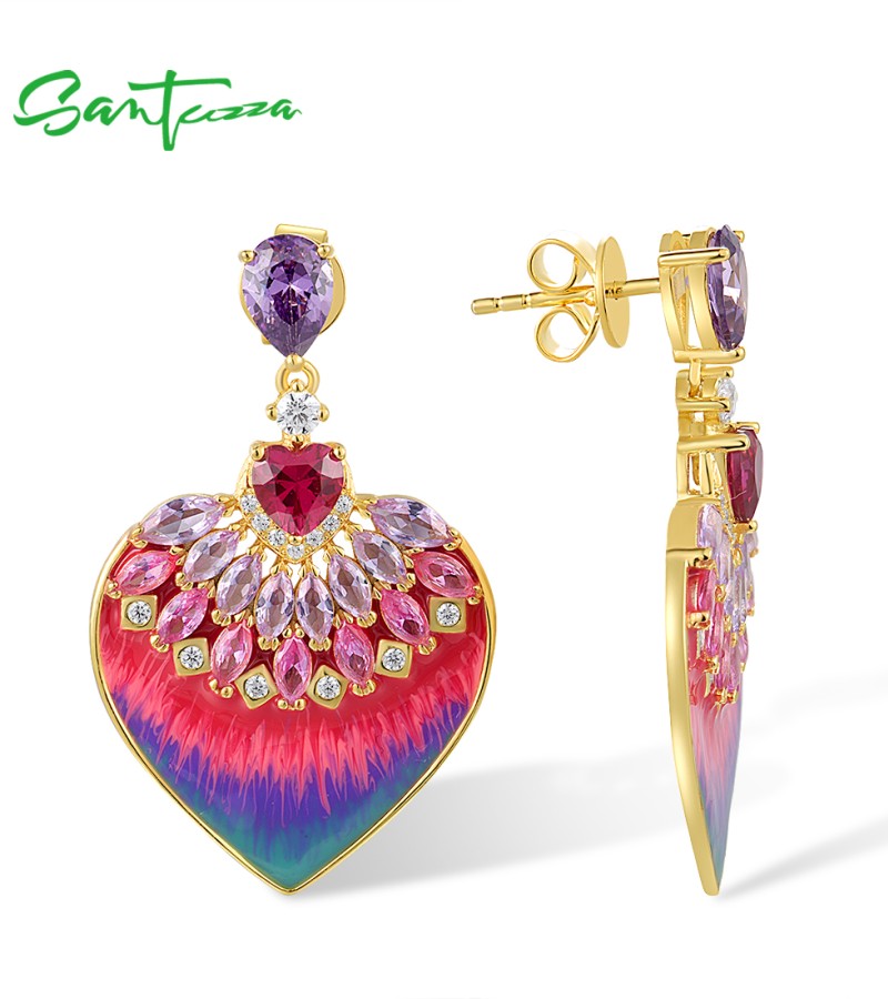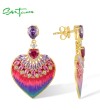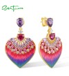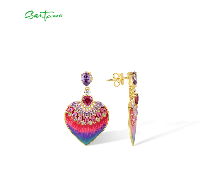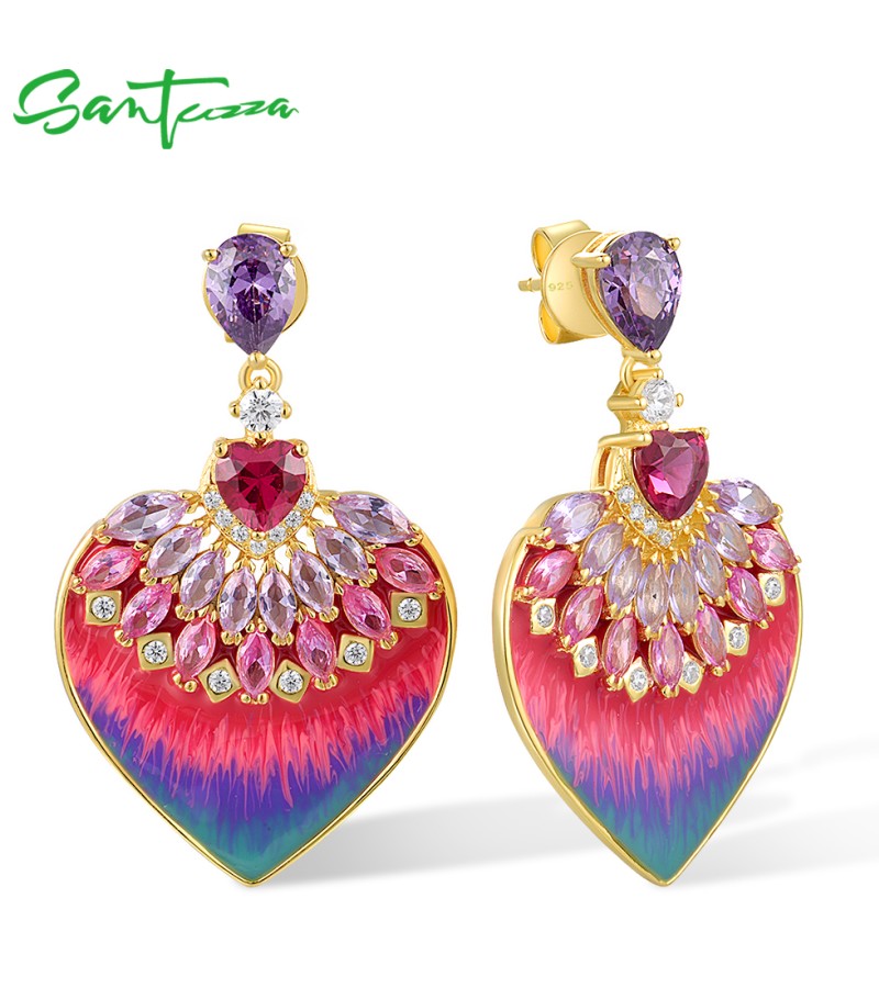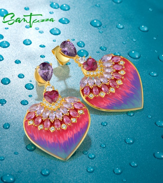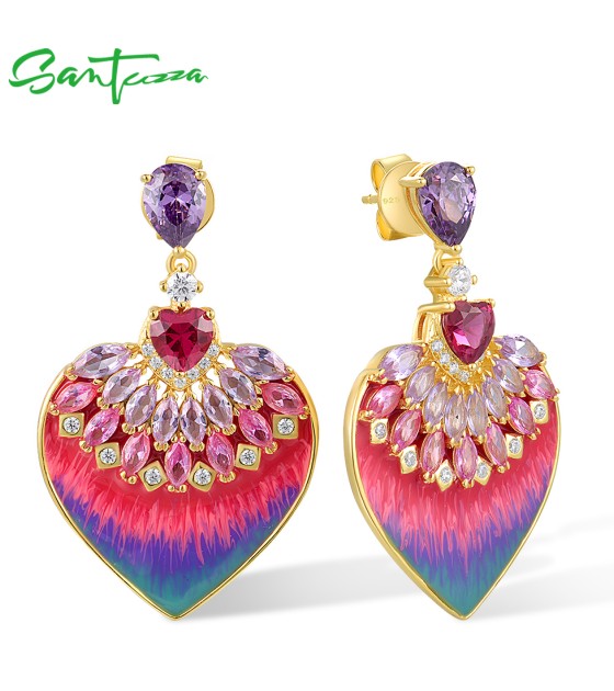SANTUZZA 925 Sterling Silver Ombre Pink & Purple Colorful Earrings Cubic Zirconia Dangling Enamel Jewelry