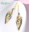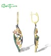 SANTUZZA 925 Sterling Silver Earrings Colorful Stones Bird Flower Dangling Earrings Jewelry