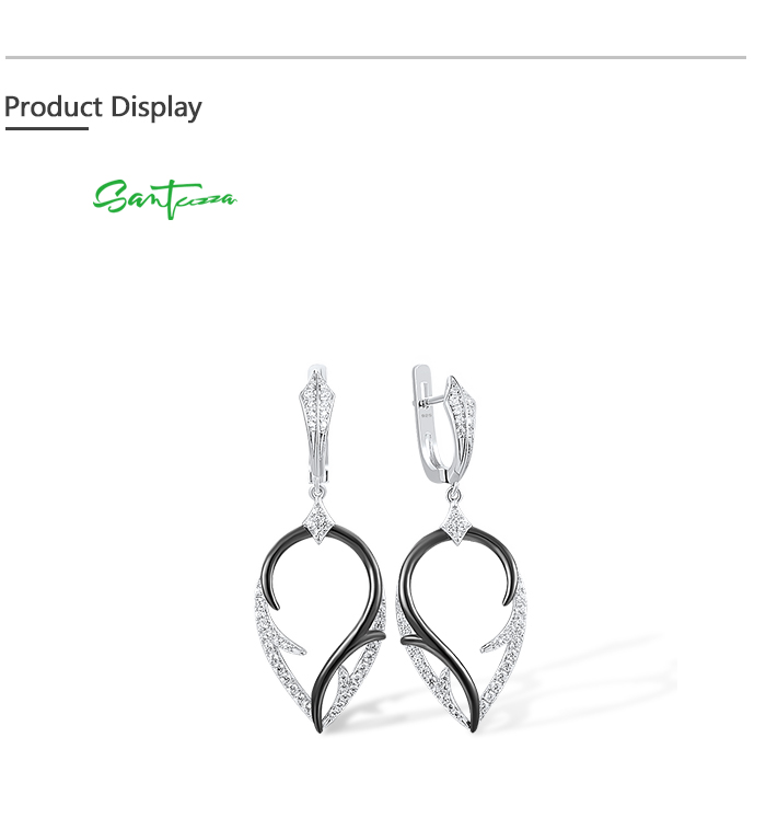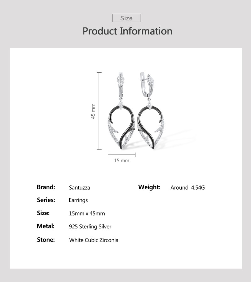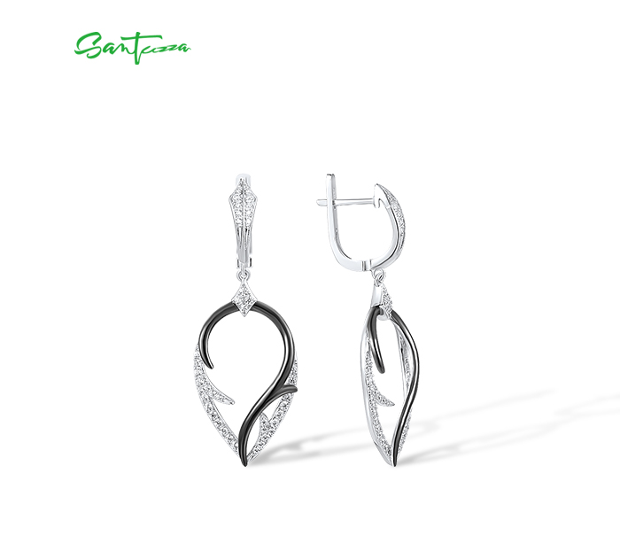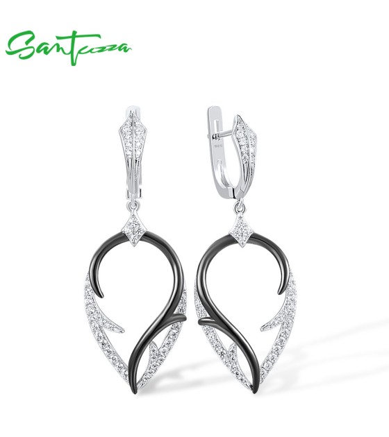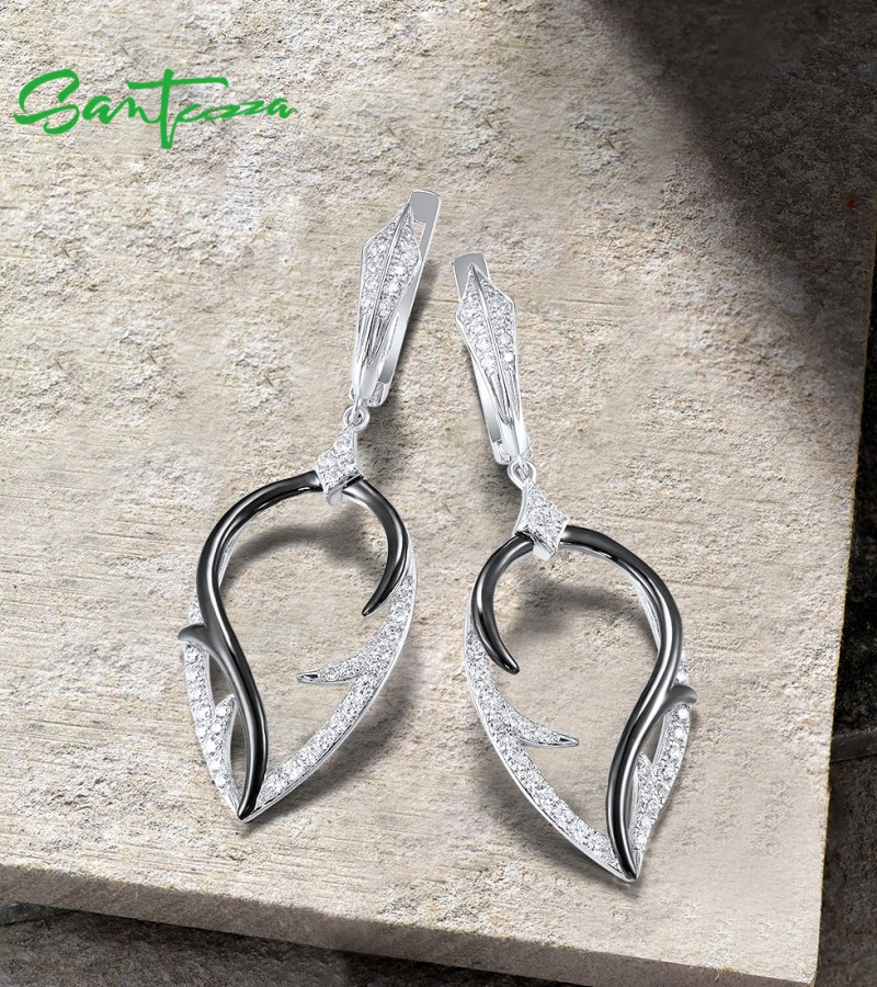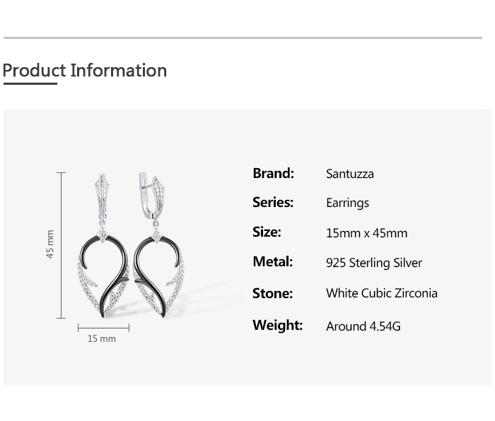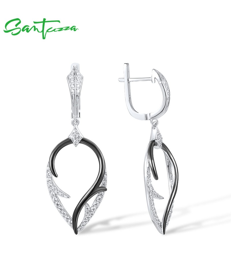 SANTUZZA 925 Sterling Silver Earrings White Cubic Zirconia Dangling Earrings Jewelry