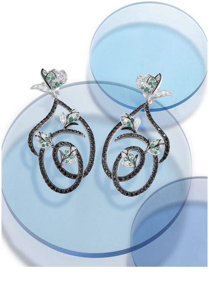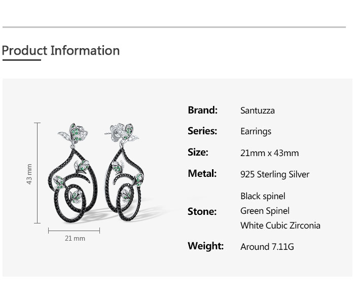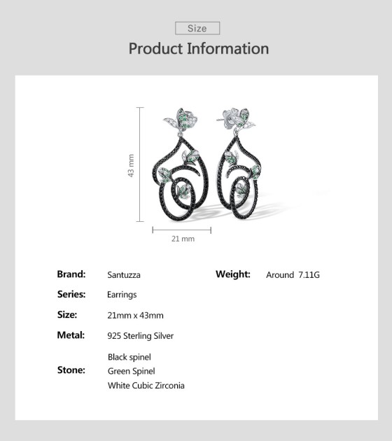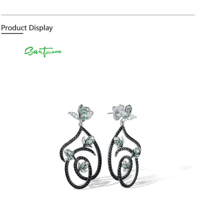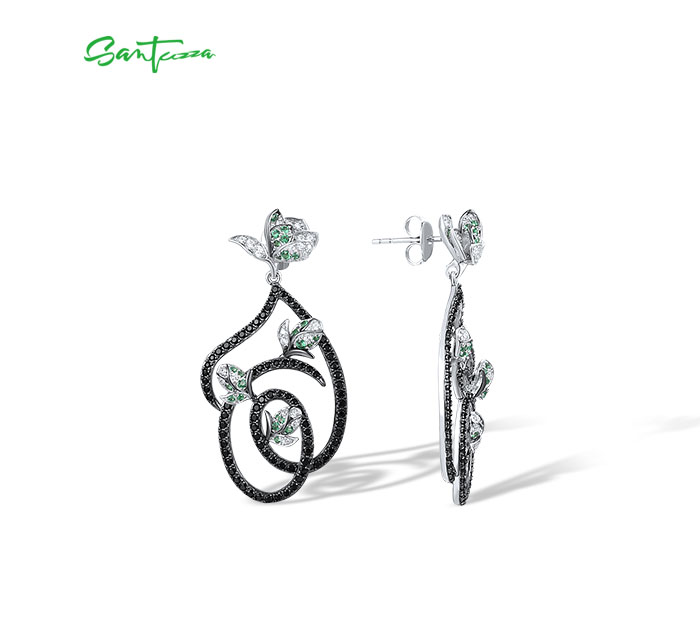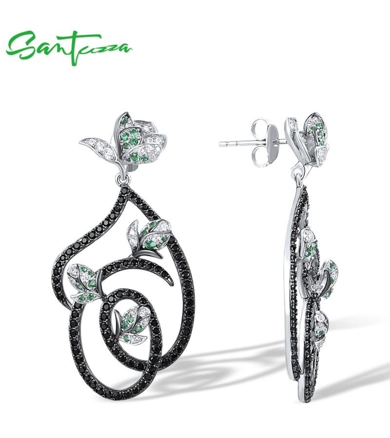 SANTUZZA 925 Sterling Silver Dangling Earrings Black Green Spinel White Lotus Flower Jewelry