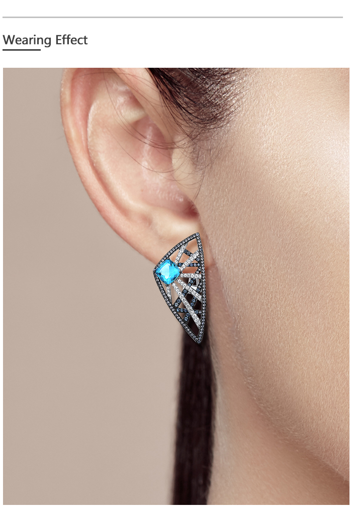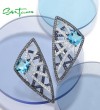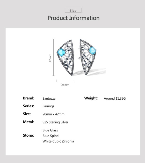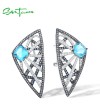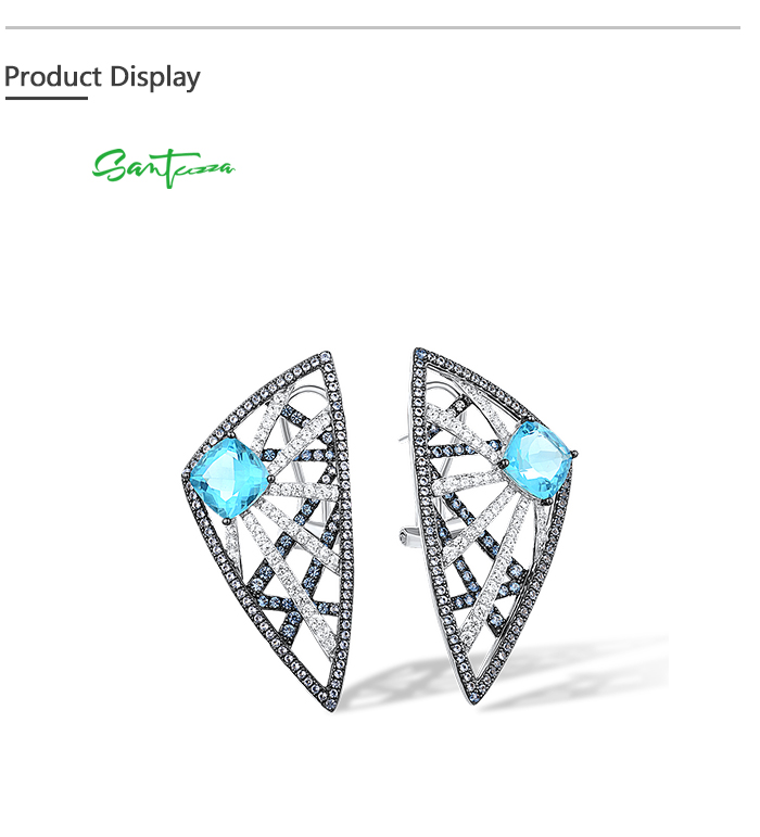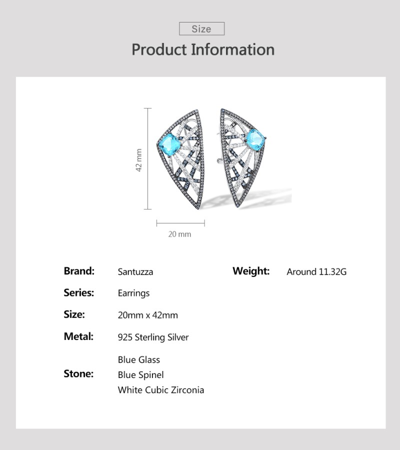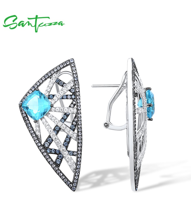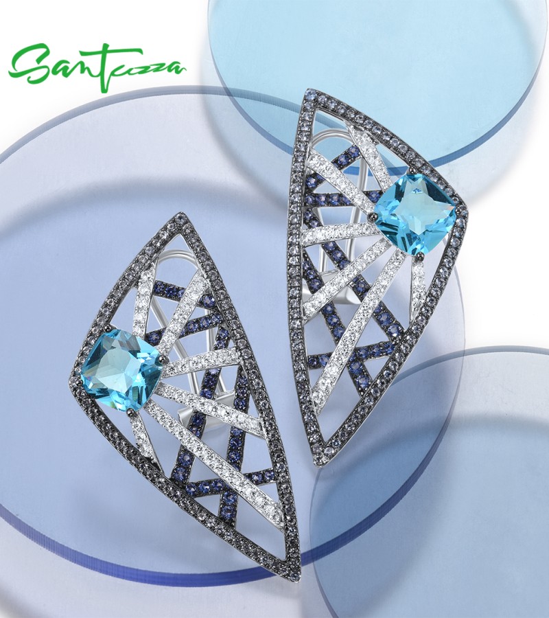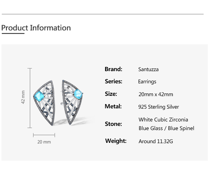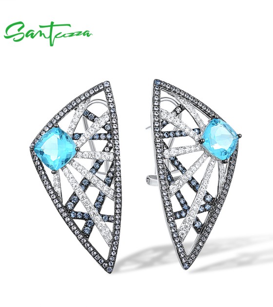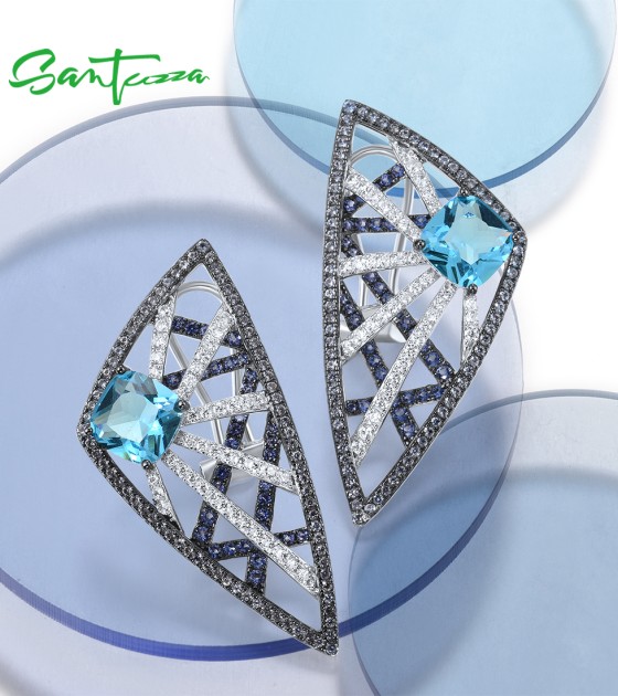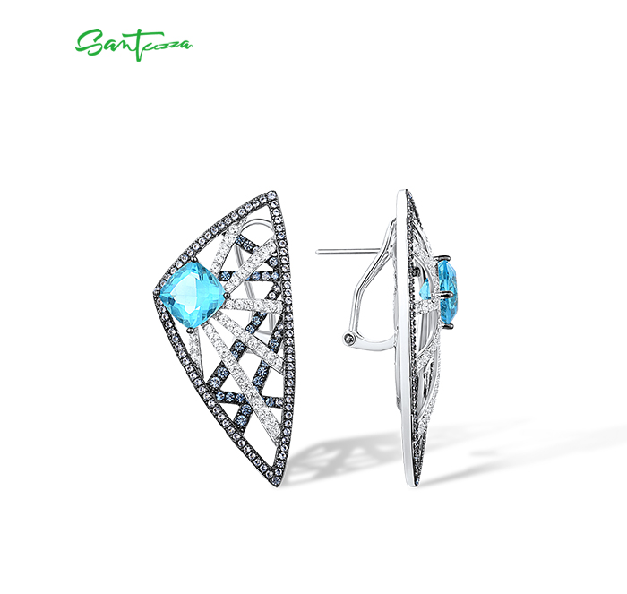 SANTUZZA Silver Earrings 925 Sterling Silver Blue Stones White CZ Geometric Dangling Earrings Jewelry