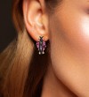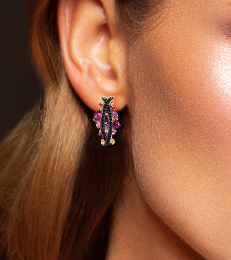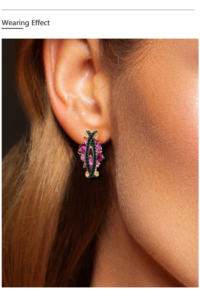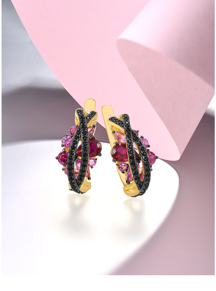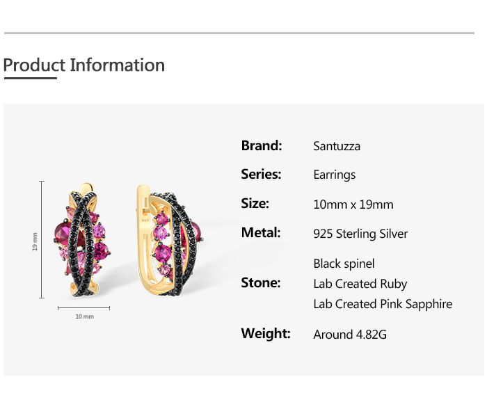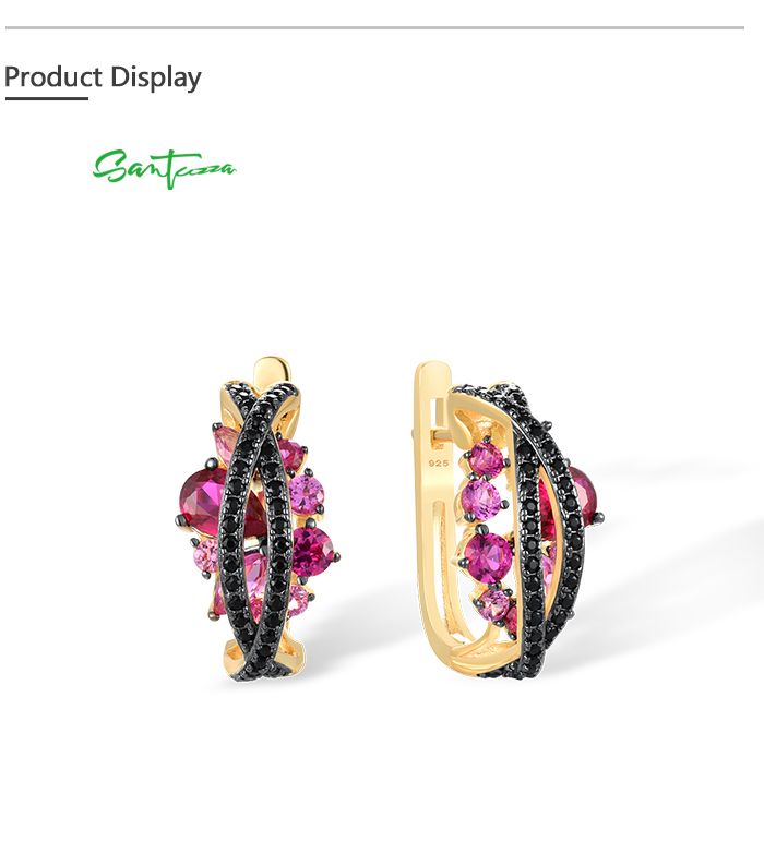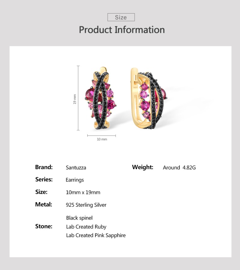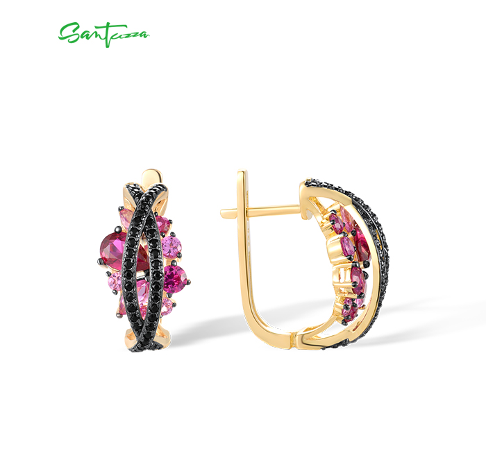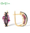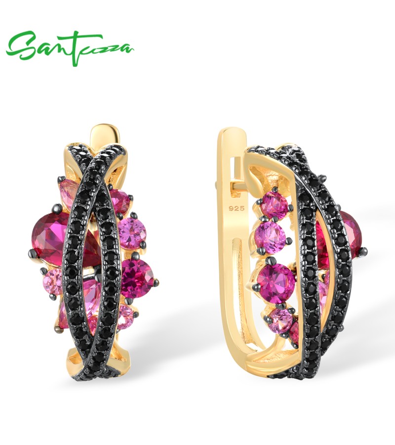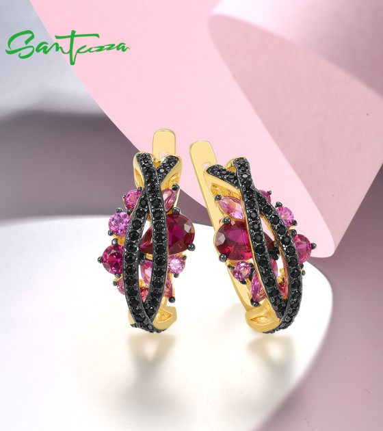 SANTUZZA 925 Sterling Silver Earrings Black Spinel Red Pink Stones Jewelry