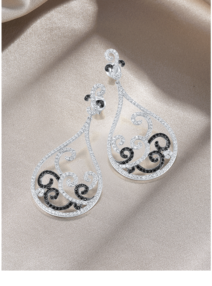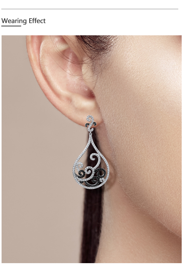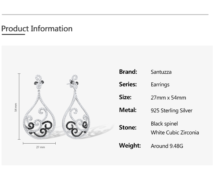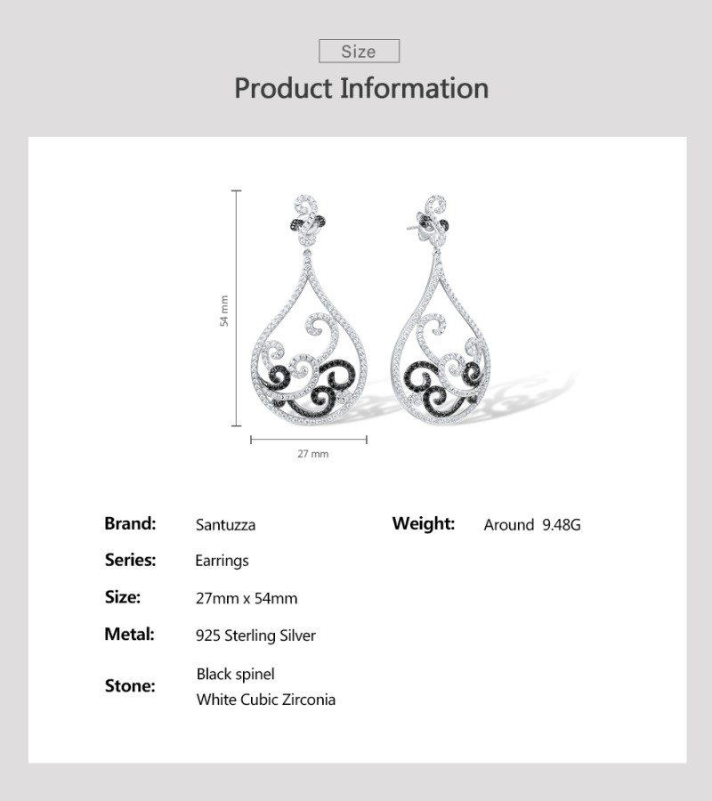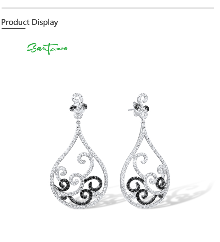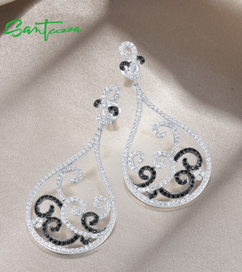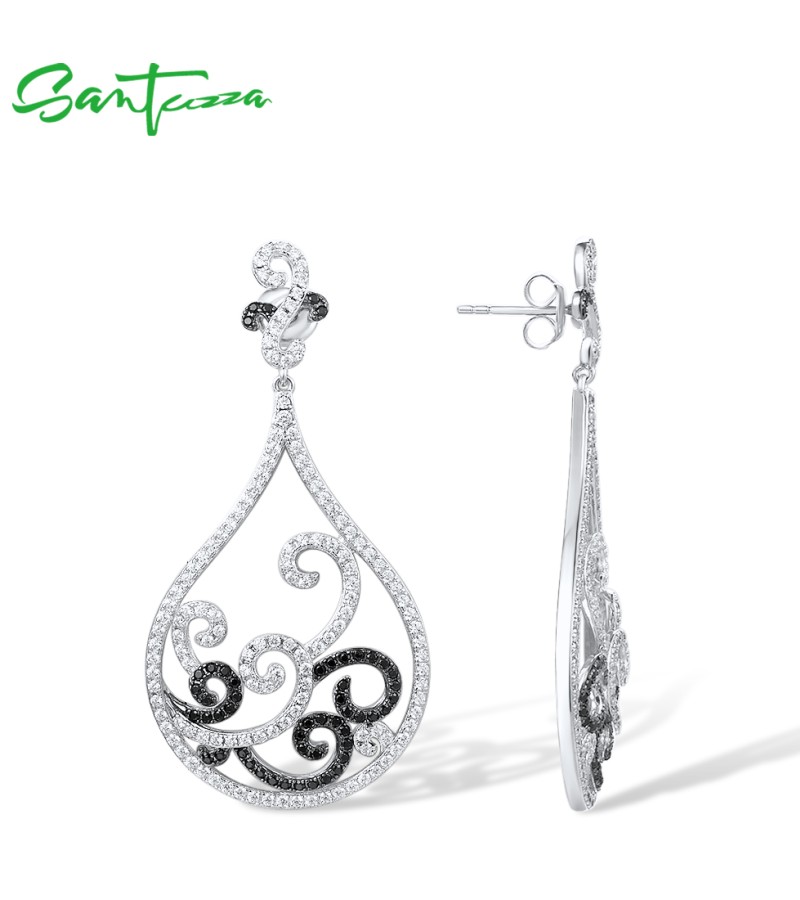 SANTUZZA 925 Sterling Silver Earrings Black Spinel White CZ Charming Drop Earrings Jewelry
