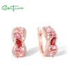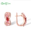 SANTUZZA 925 Sterling Silver Earrings Red Pink Stones White CZ Earrings Jewelry
