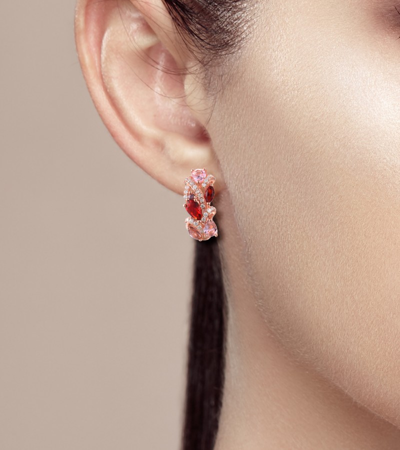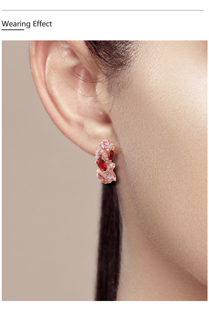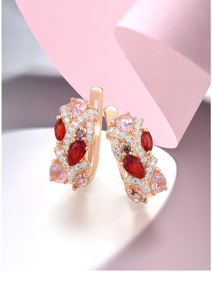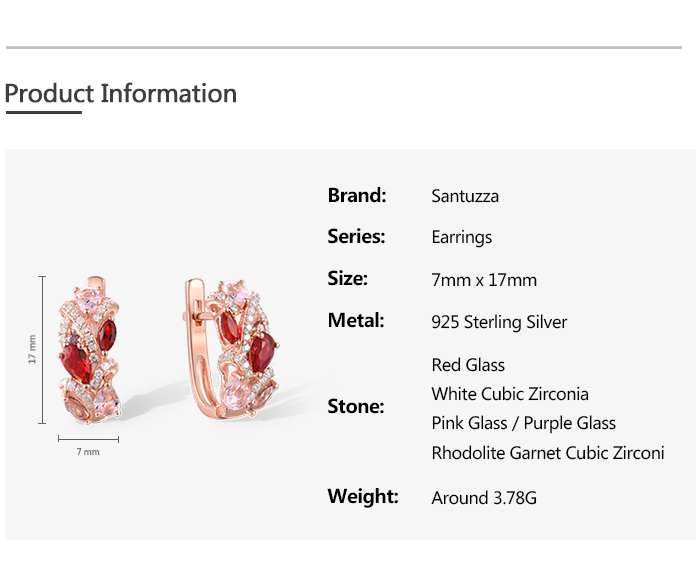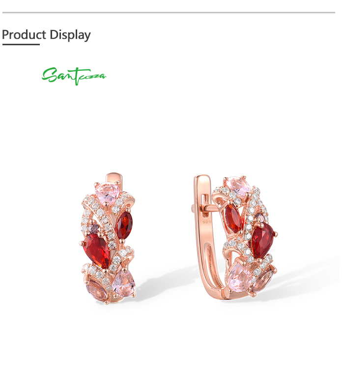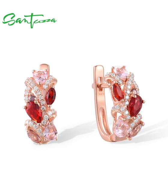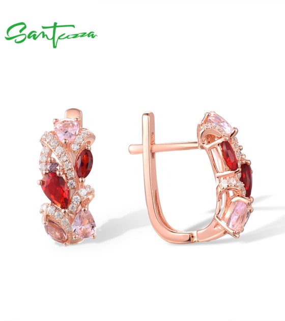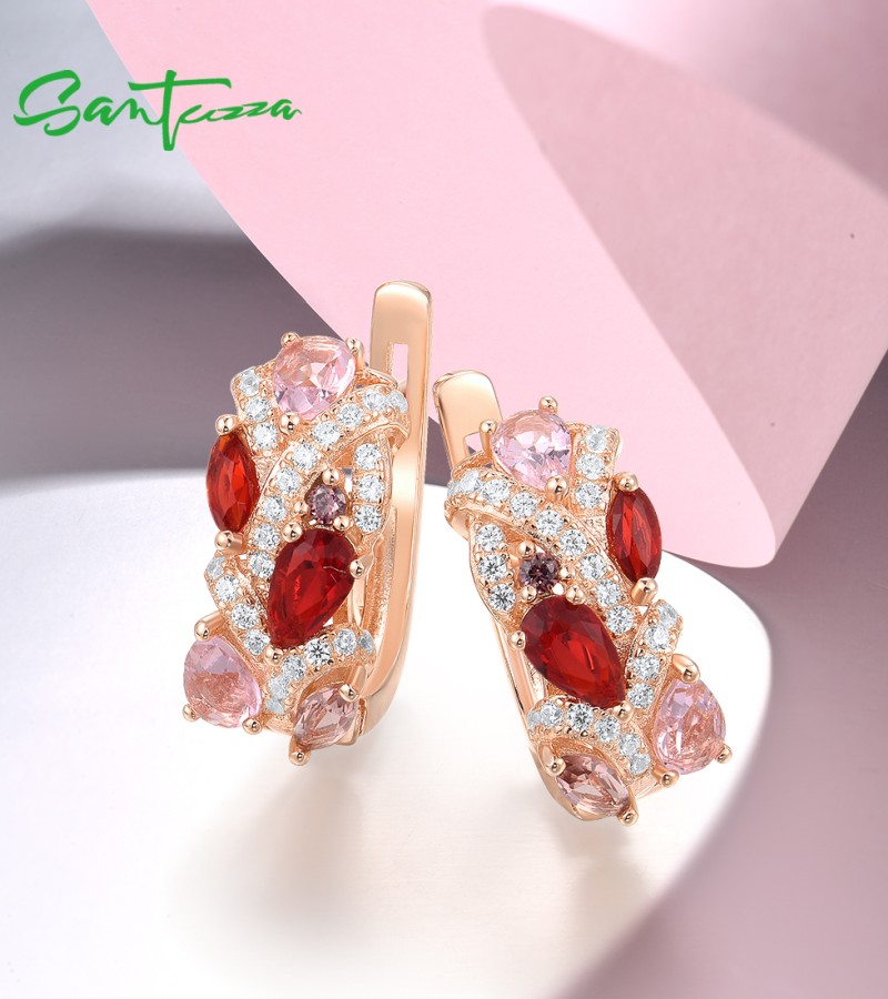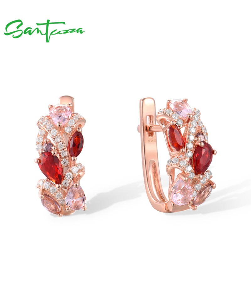 SANTUZZA 925 Sterling Silver Earrings Red Pink Stones White CZ Earrings Jewelry