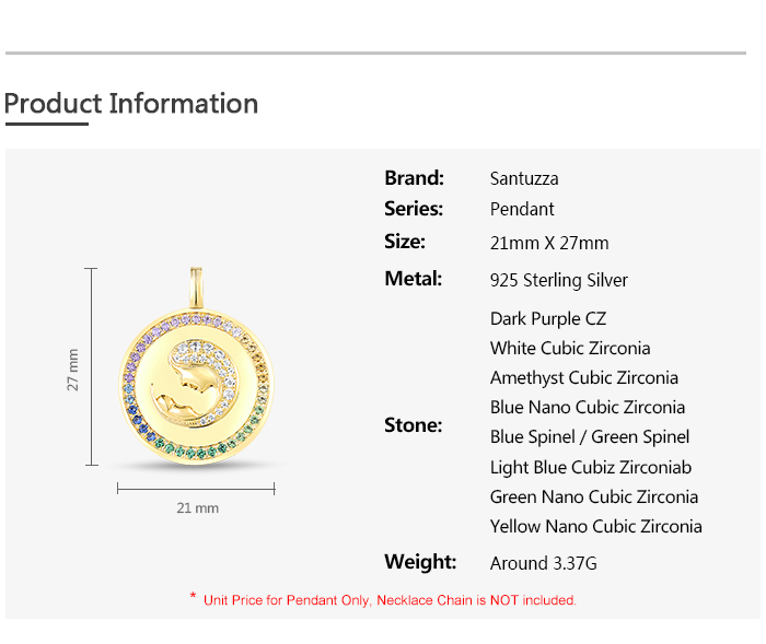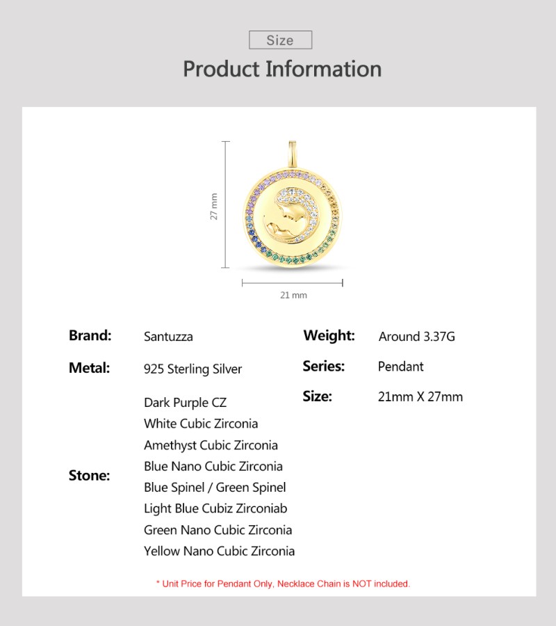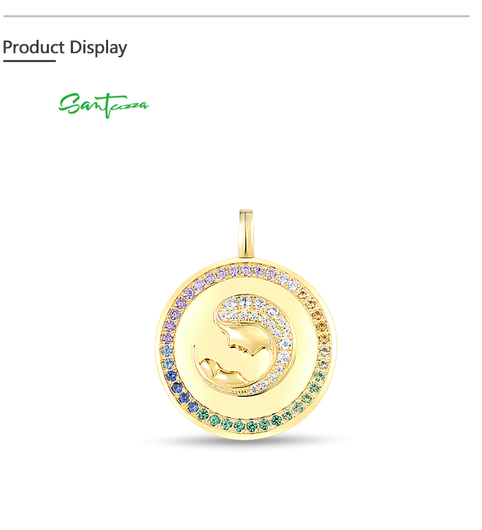 SANTUZZA Silver Pendant 925 Sterling Silver Gradien Colorful Stones Mother Baby Pendant Jewelry
