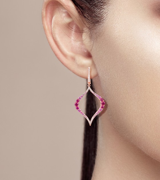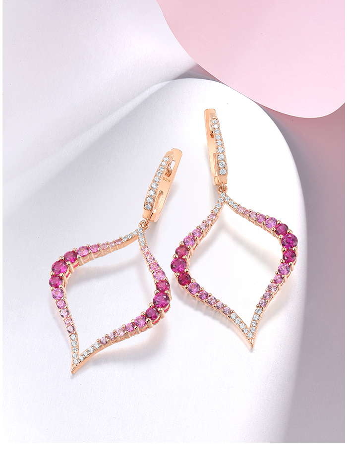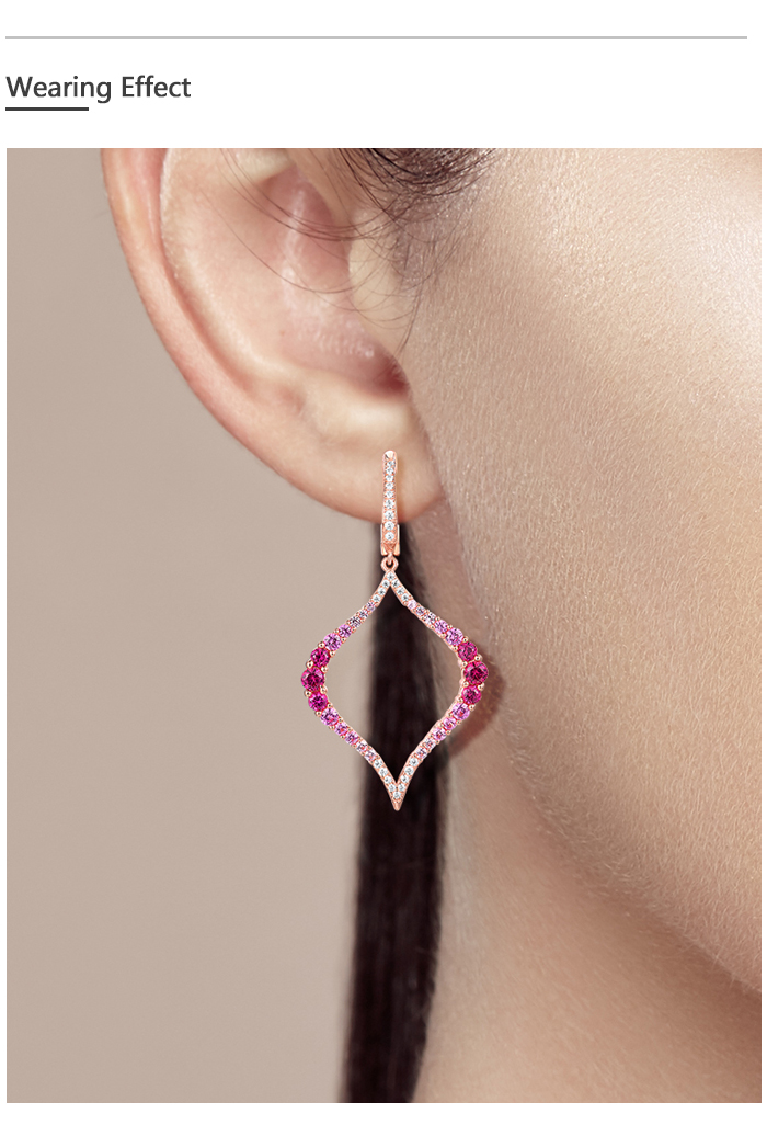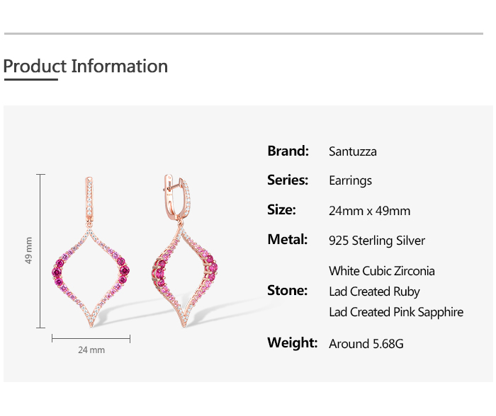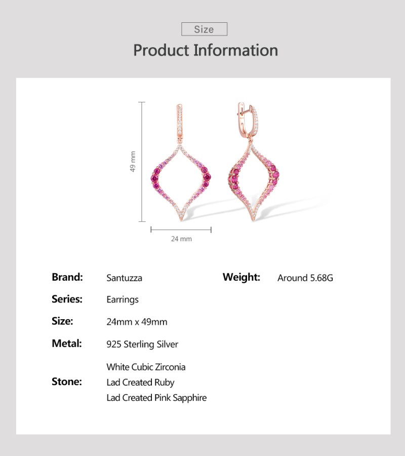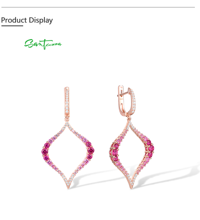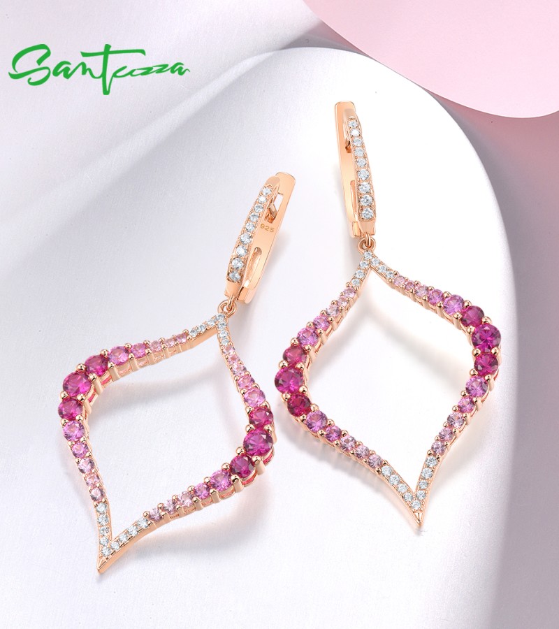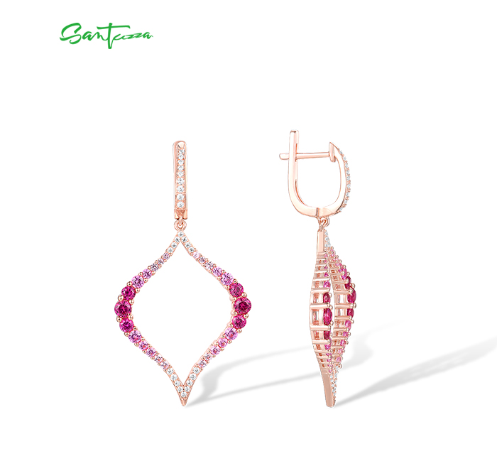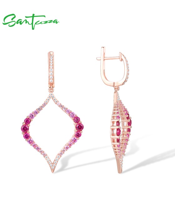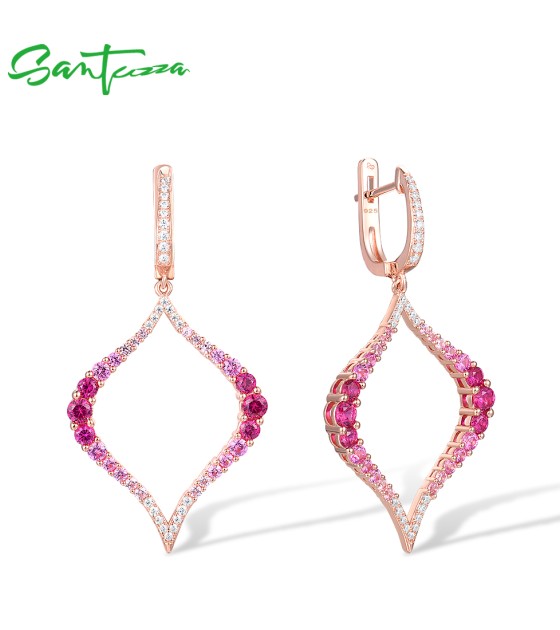 SANTUZZA 925 Sterling Silver Earrings Gradual Pink Red Stones White CZ Dangling Earrings Jewelry
