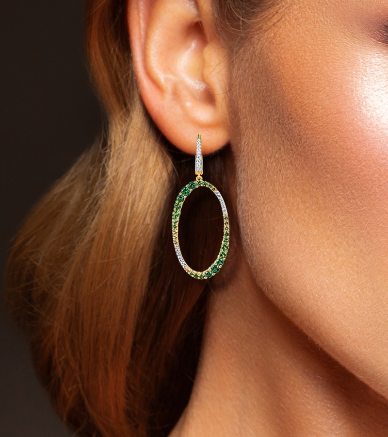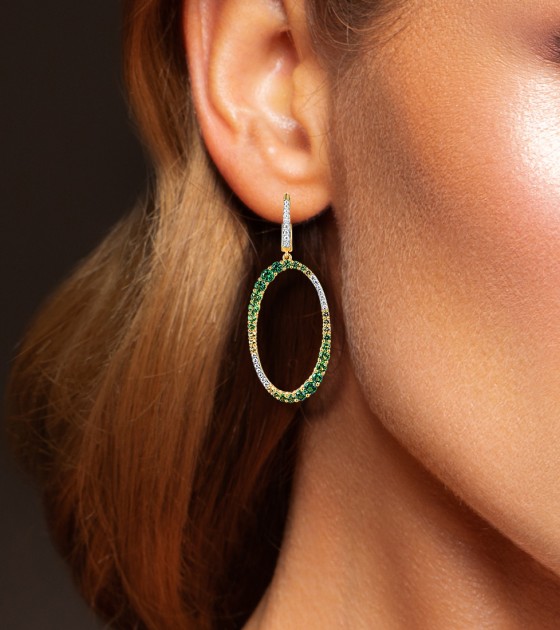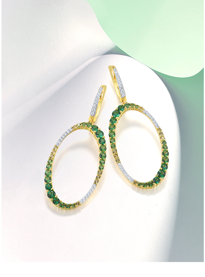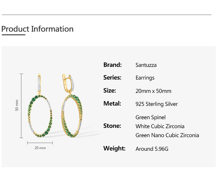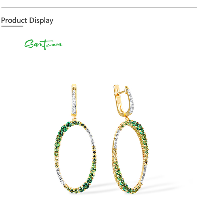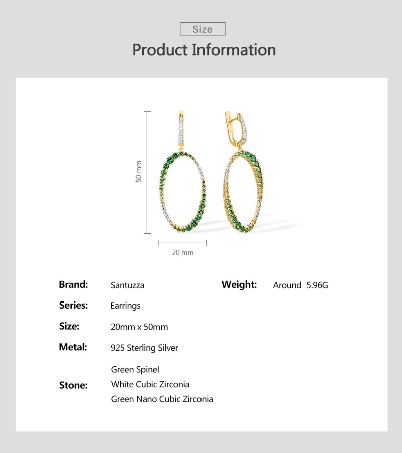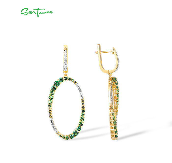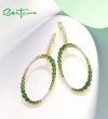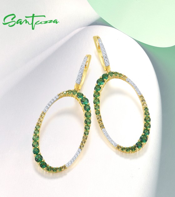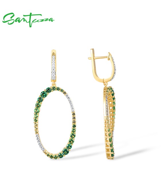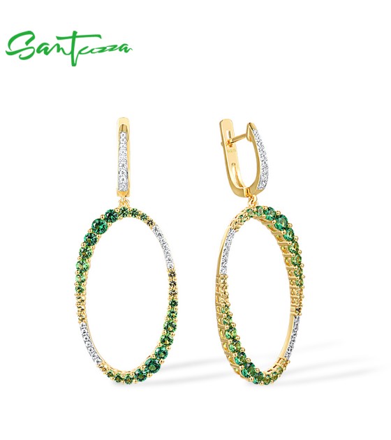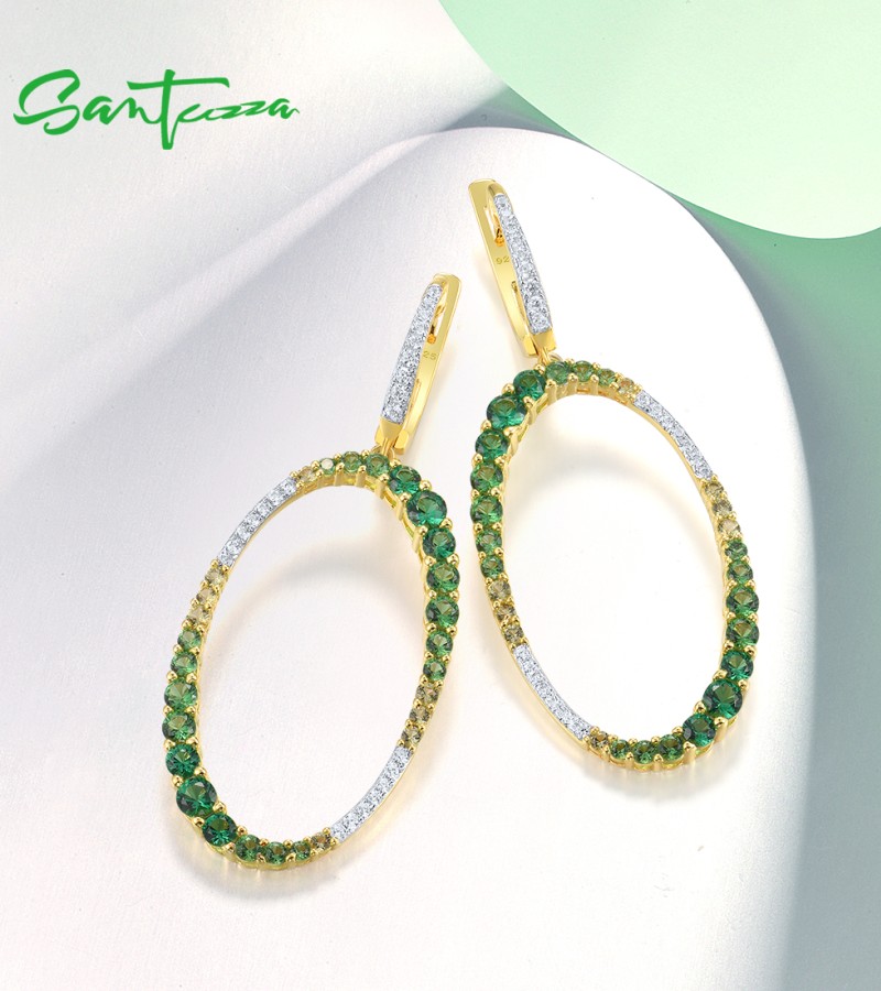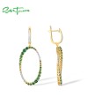 SANTUZZA 925 Sterling Silver Earrings Gradual Green Stones White CZ Circle Dangling Earrings Jewelry