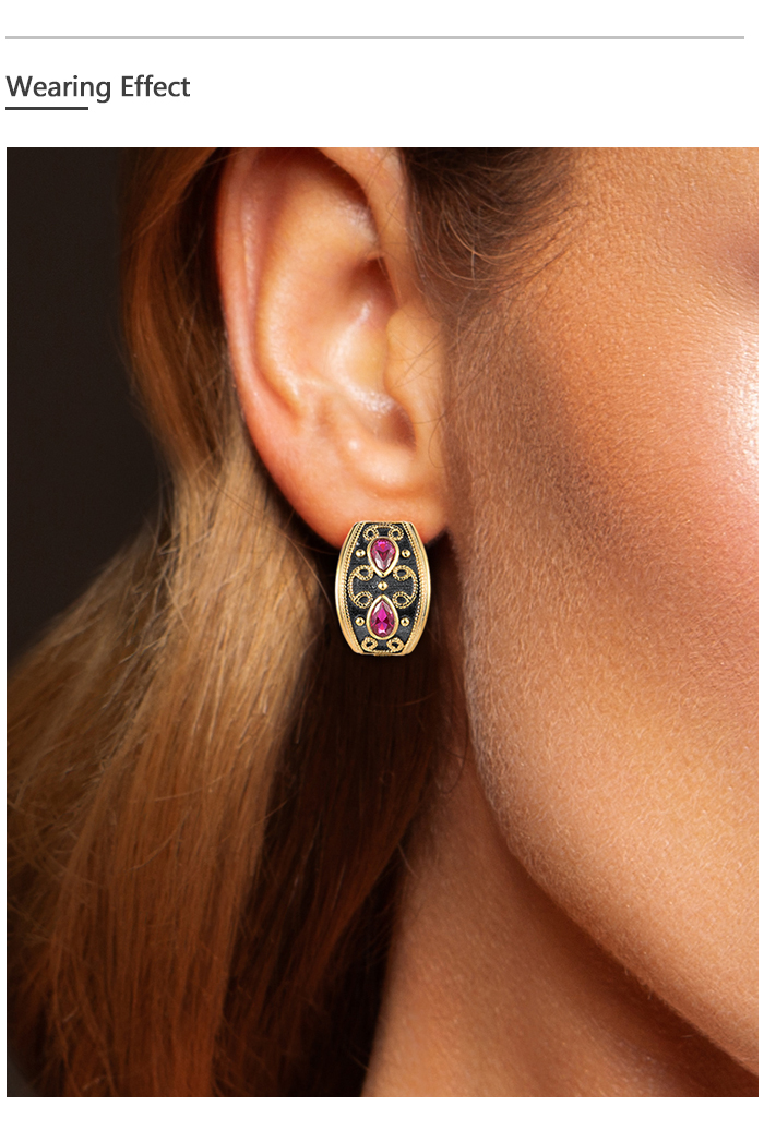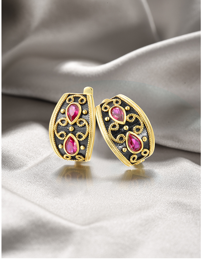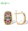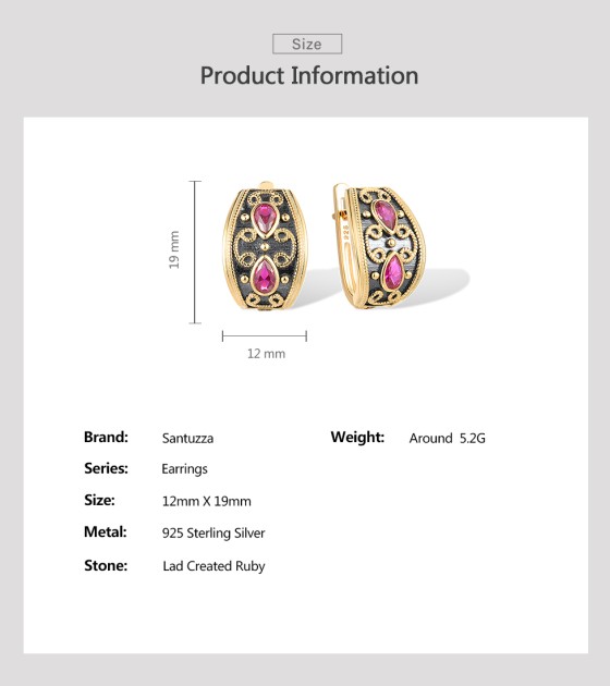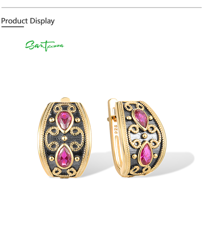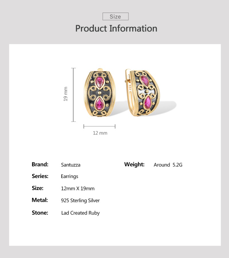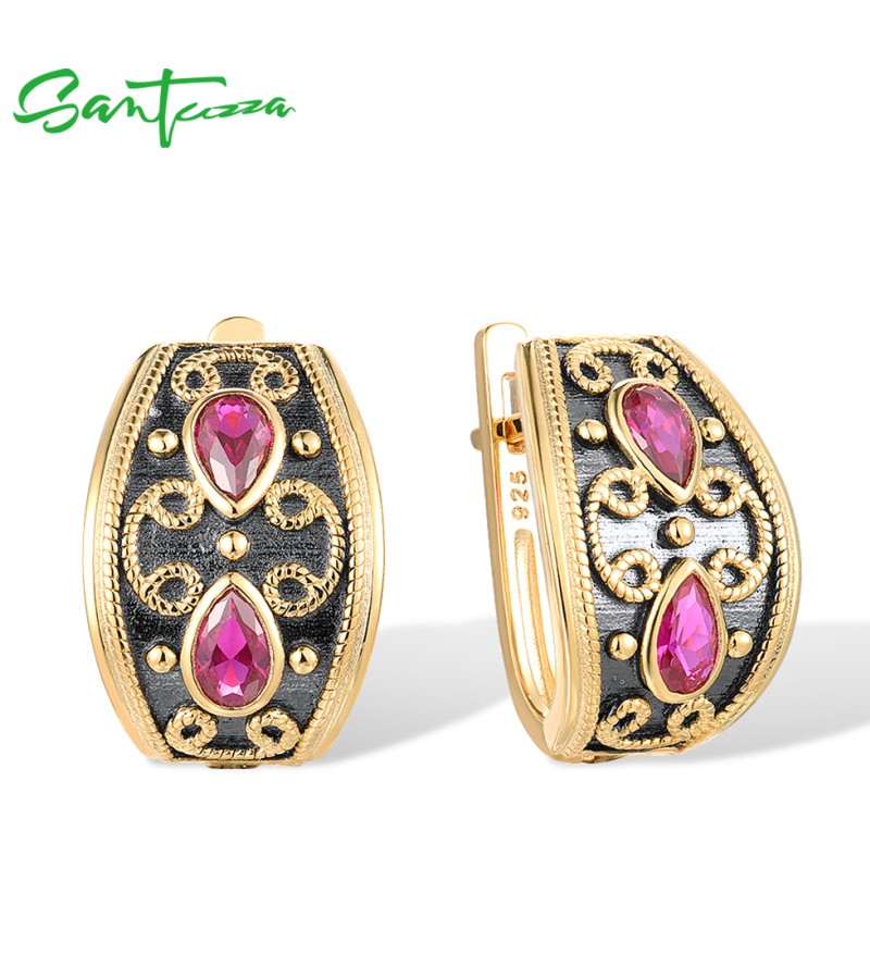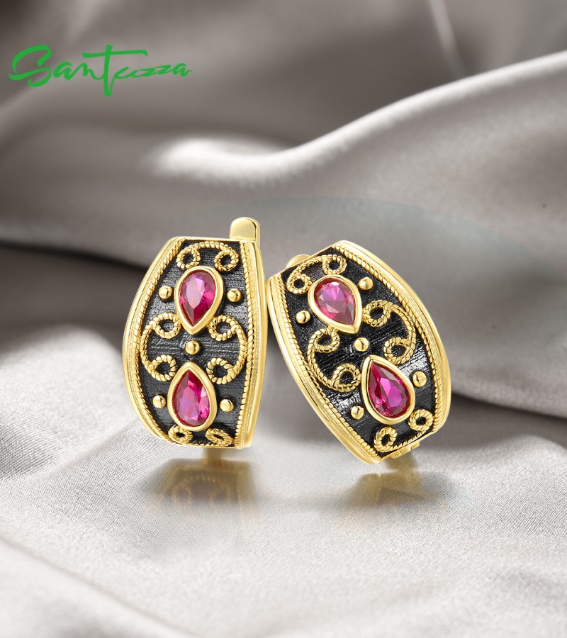 SANTUZZA 925 Sterling Silver Earrings Pear Lab Created Ruby Yellow Black Plating Symmetry Jewelry