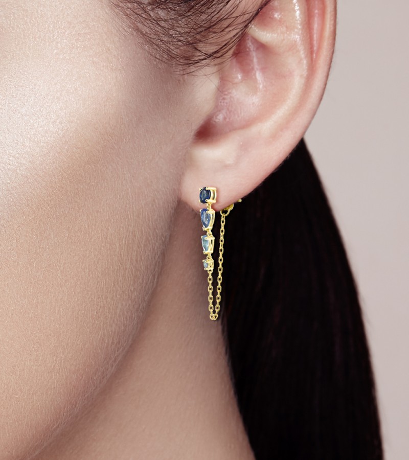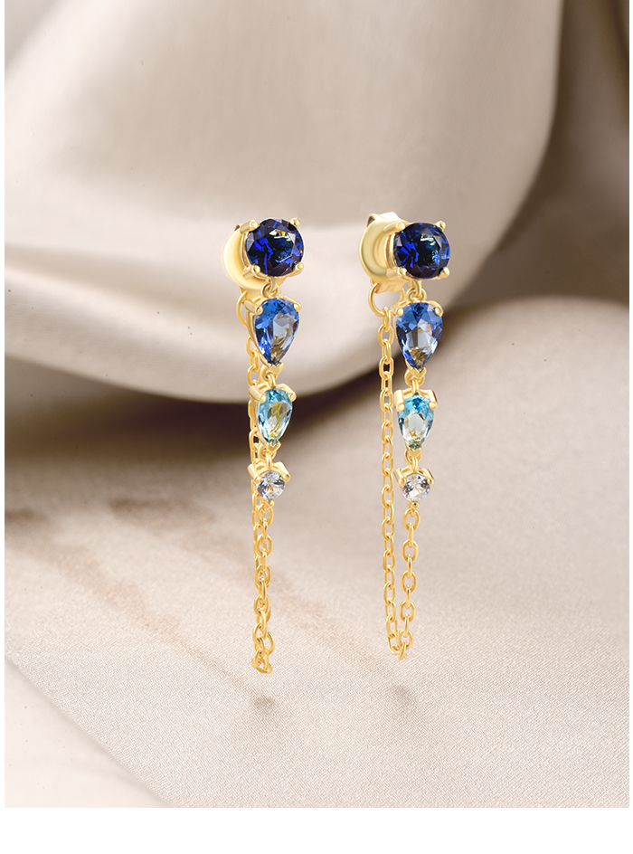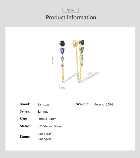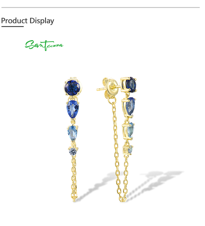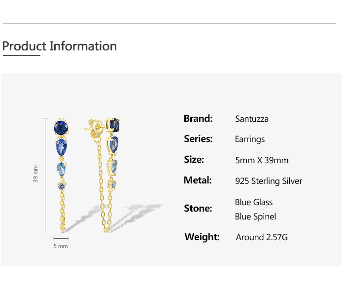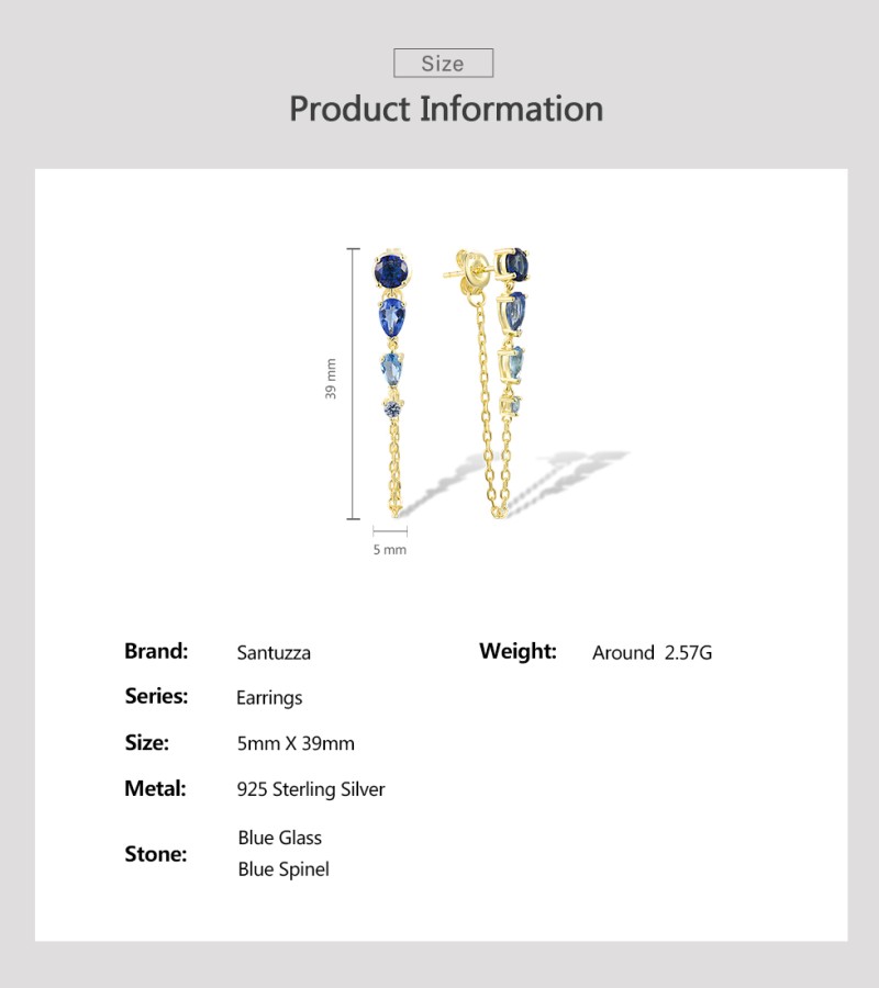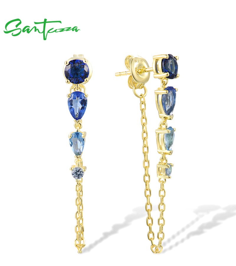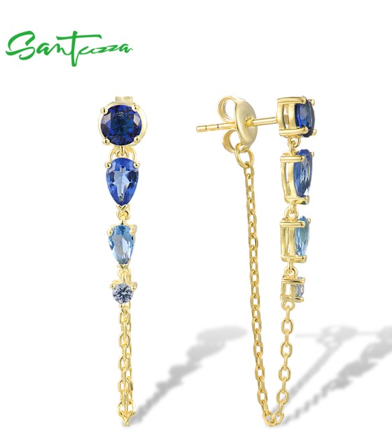 SANTUZZA 925 Sterling Silver Earrings Blue Spinel Long Thread Earrings Dangling Jewelry
