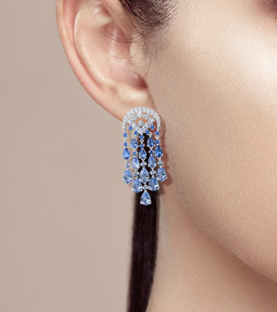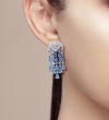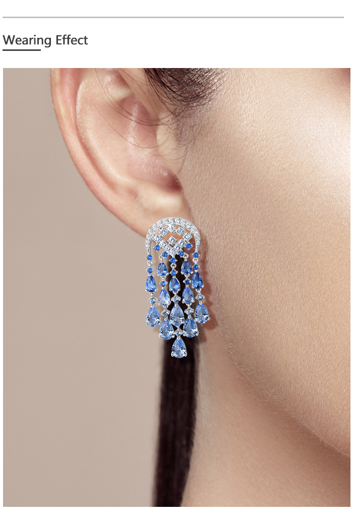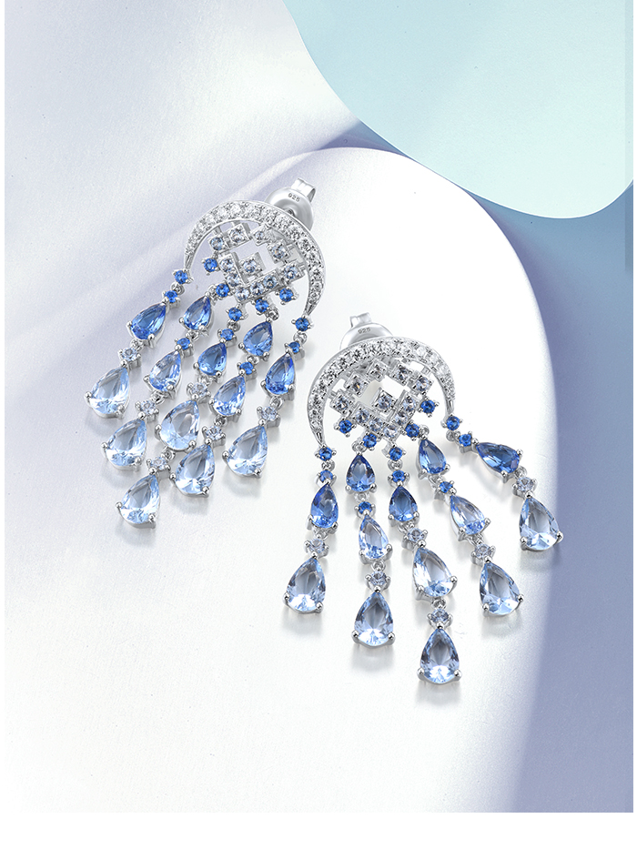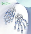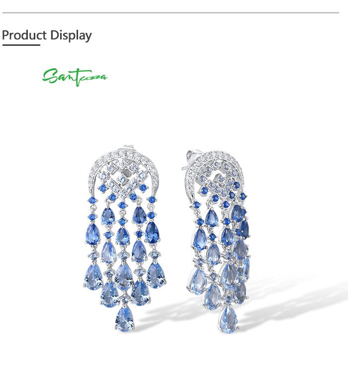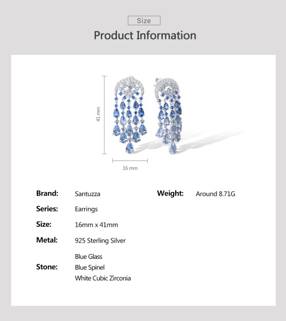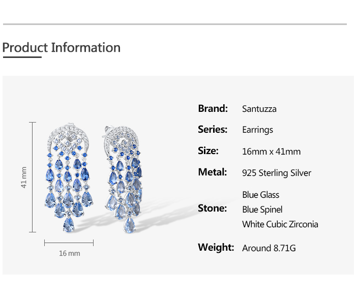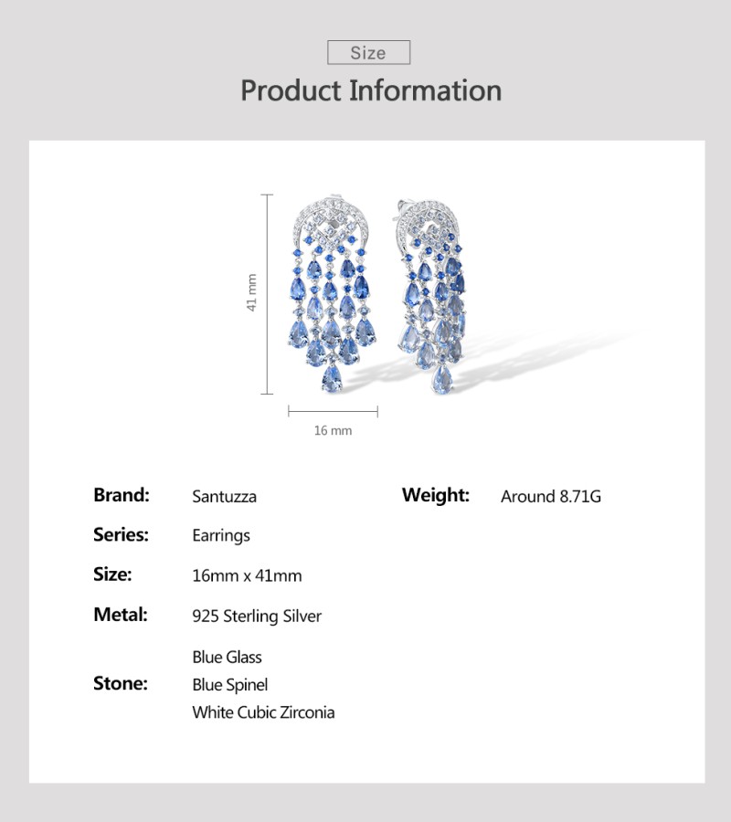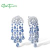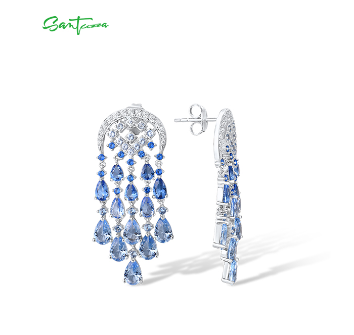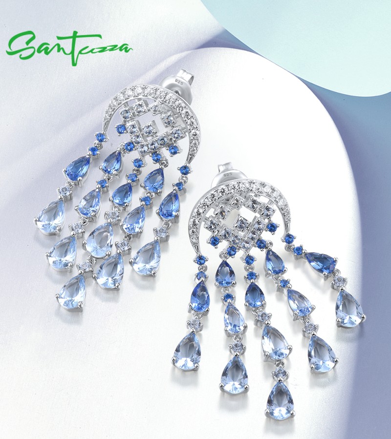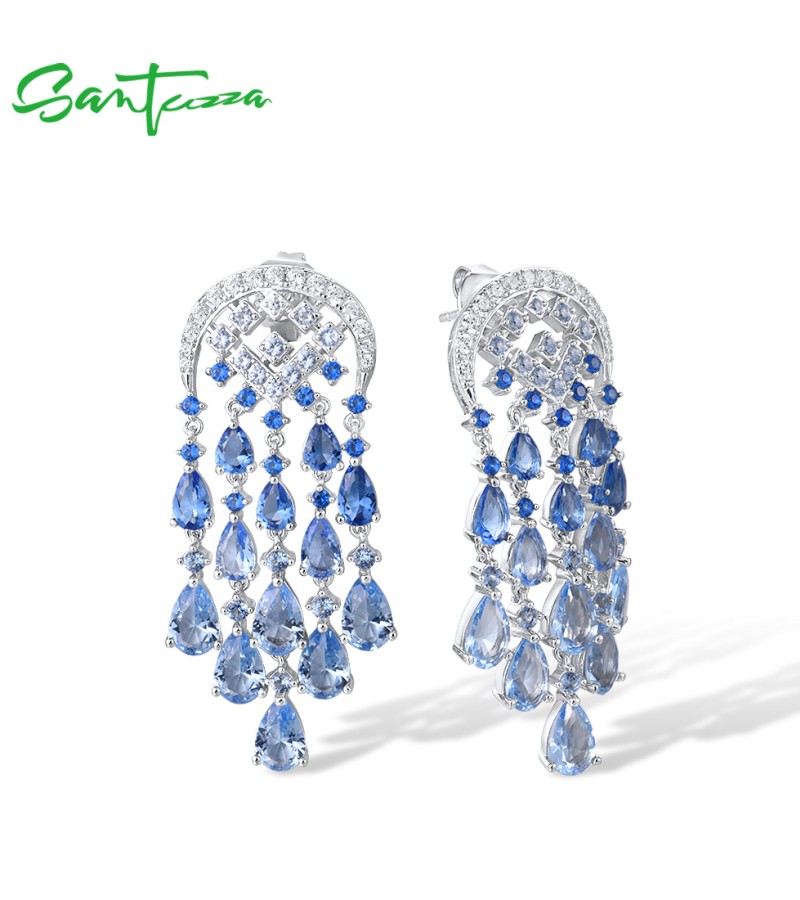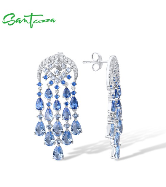 SANTUZZA Silver Dangling Earrings 925 Sterling Silver Blue Glass / Spinel White CZ Raindrops Jewelry