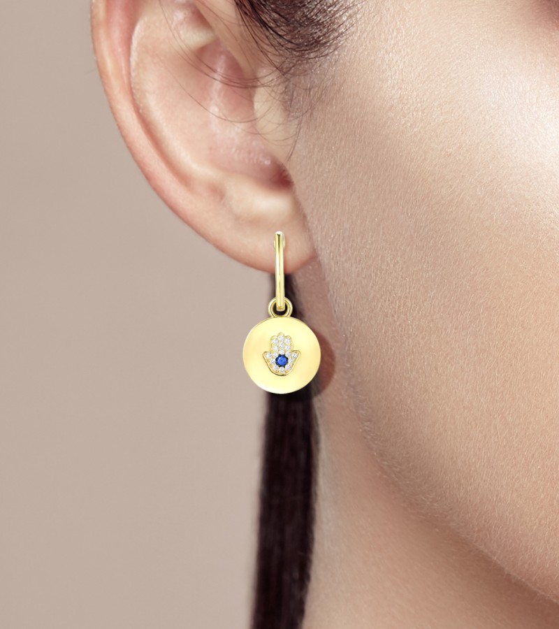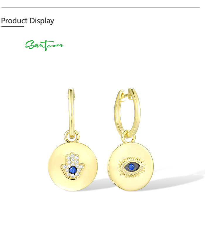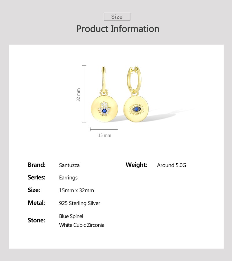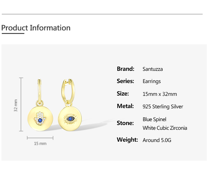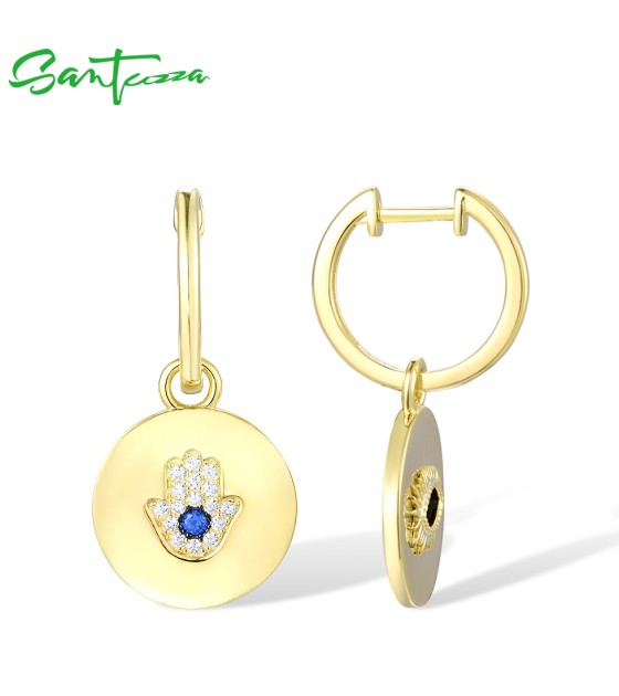 SANTUZZA 925 Sterling Silver Earrings Blue Spinel White CZ Hamsa Hand Evil Eye Drop Earrings Jewelry