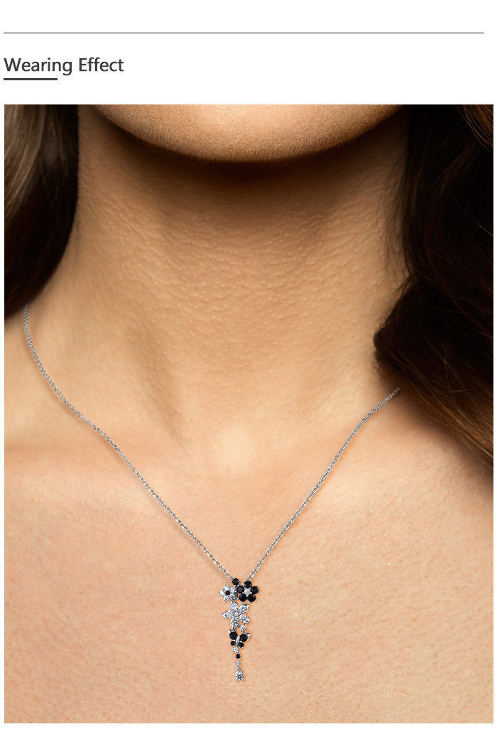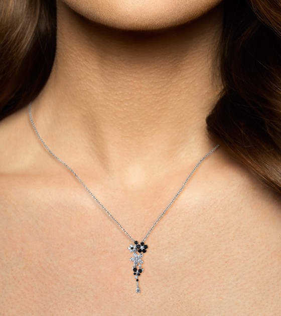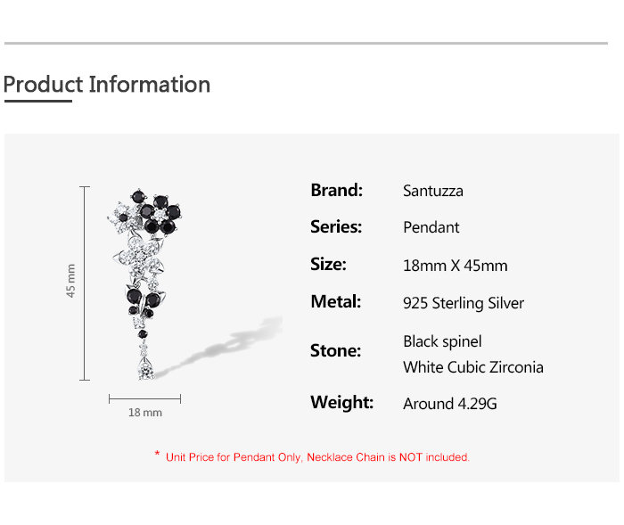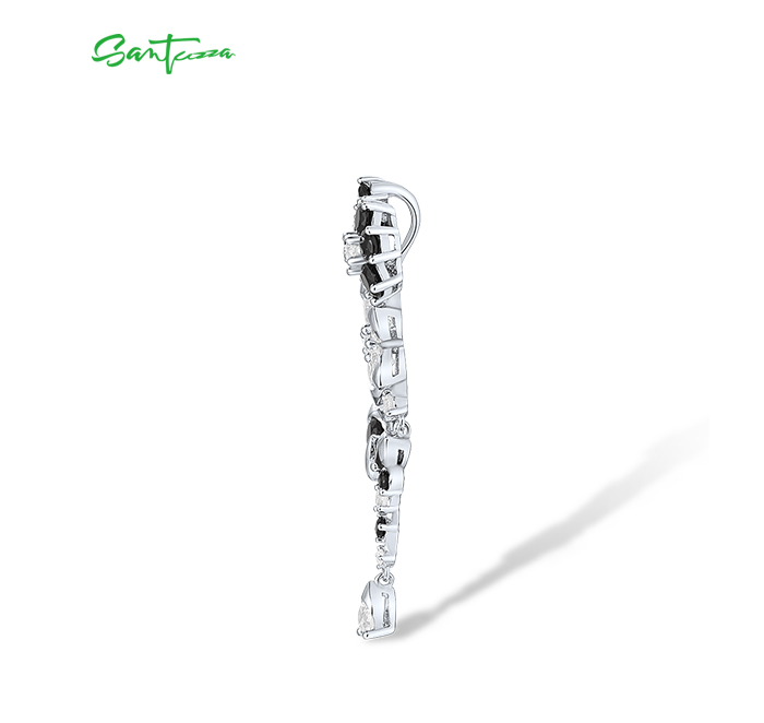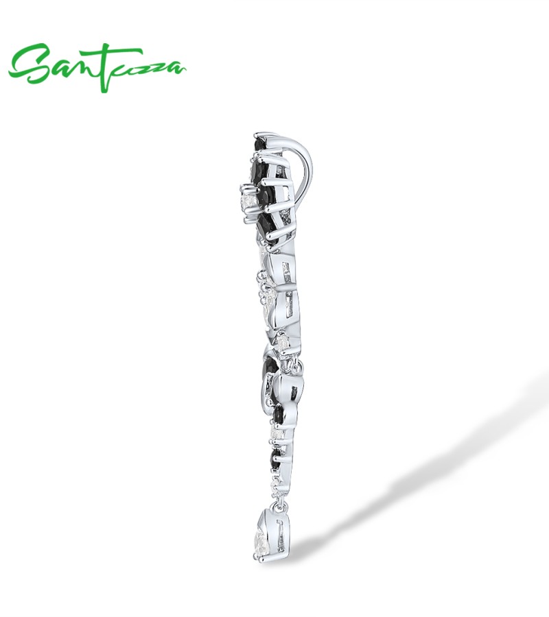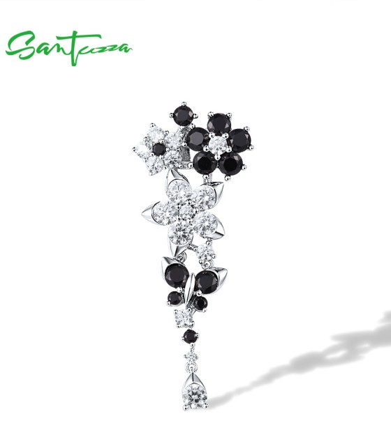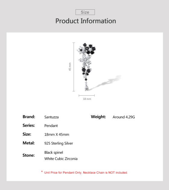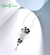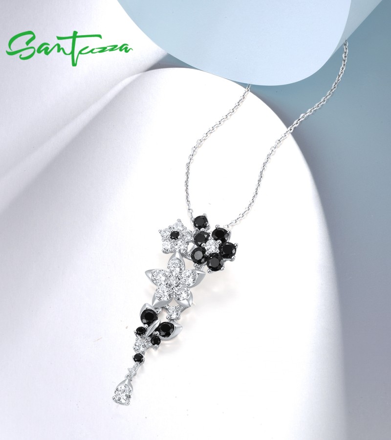 SANTUZZA Silver Pendant 925 Sterling Silver Black Spinel White CZ Exquisite Flower Jewelry