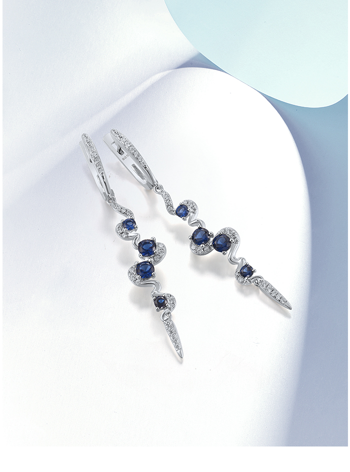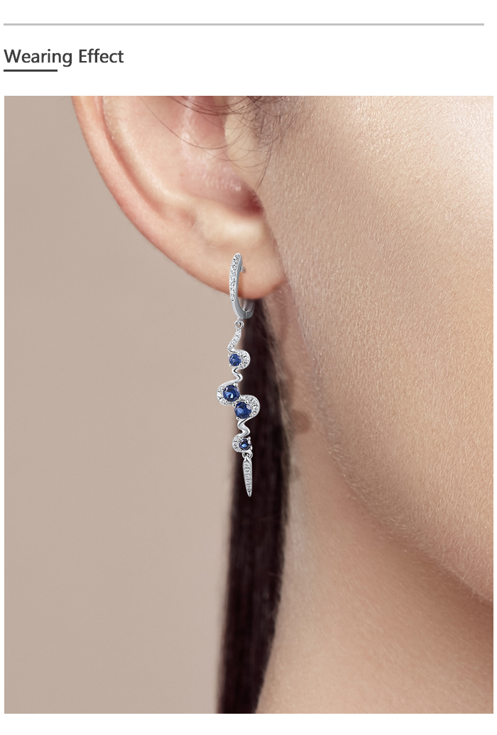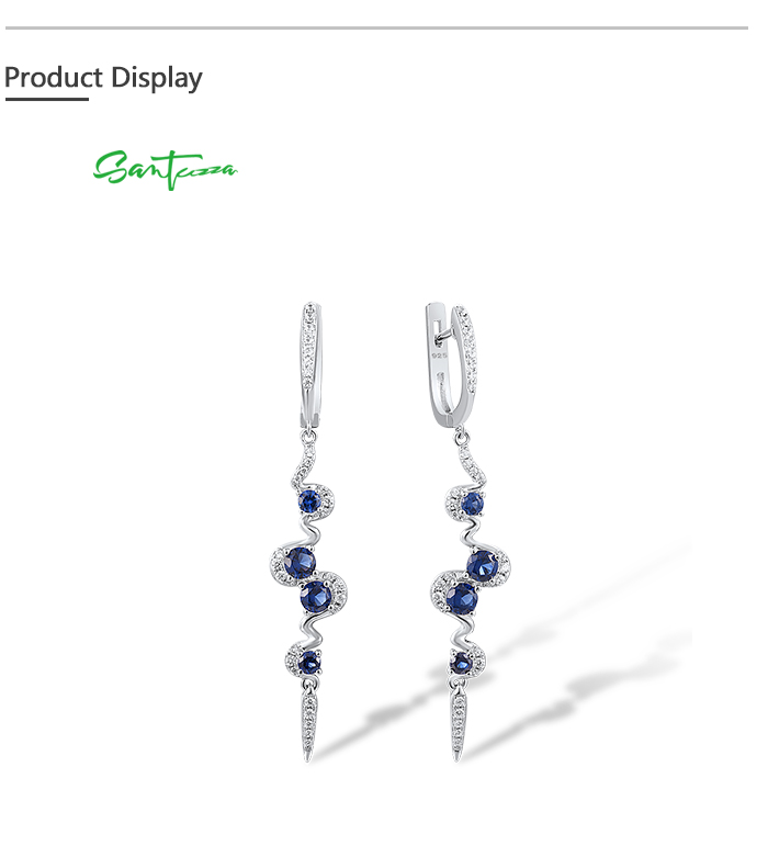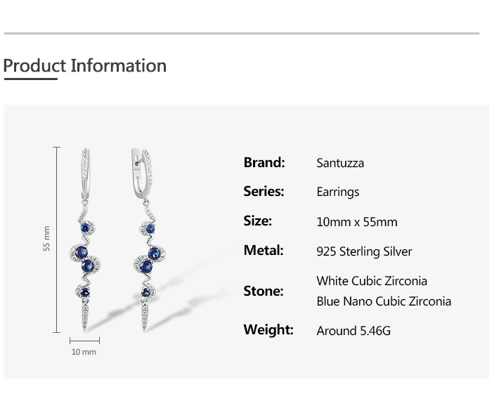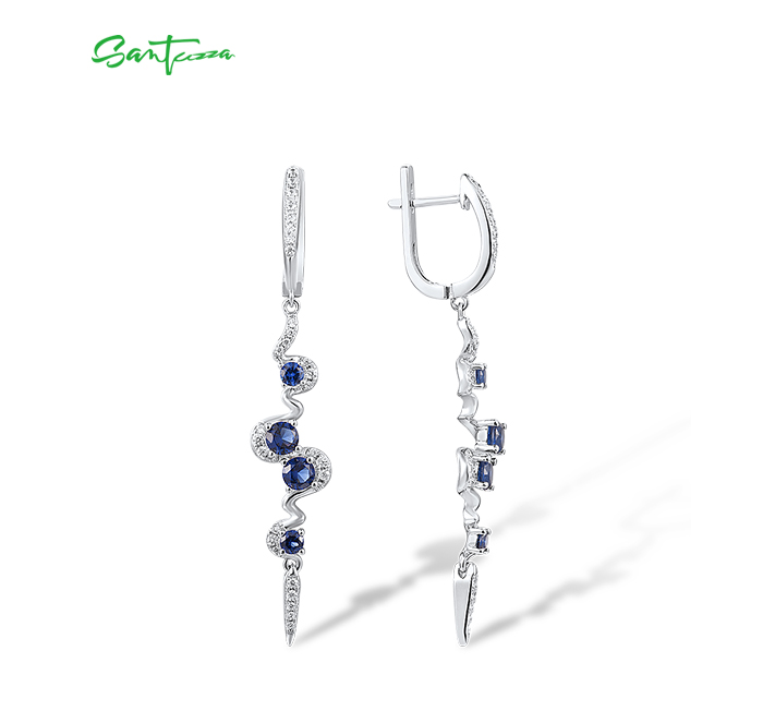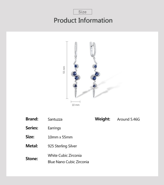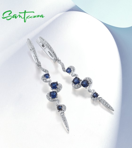 SANTUZZA Silver Earrings 925 Sterling Silver Blue White Cubic Zirconia Long Dangling Earrings Jewelry