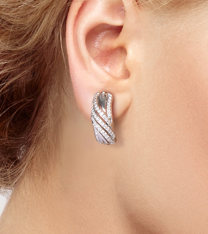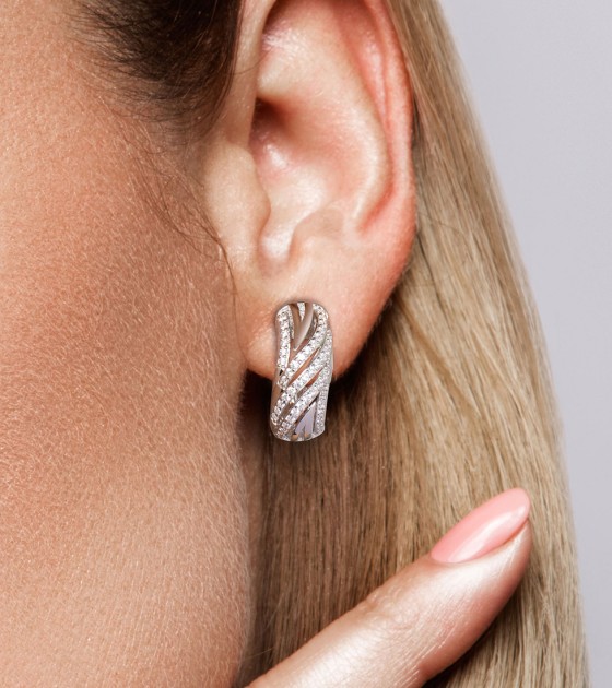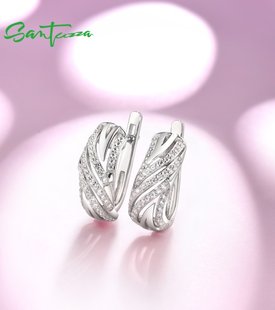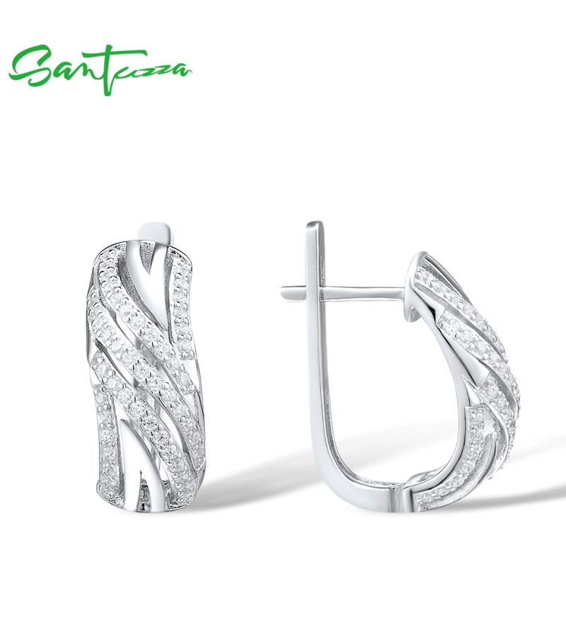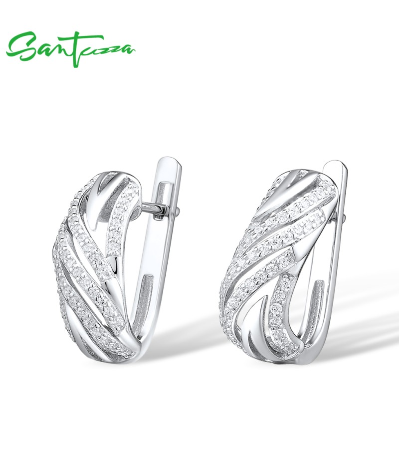SANTUZZA 925 Sterling Silver Earrings Cubic Zirconia Fine Jewelry