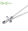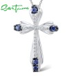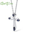 SANTUZZA 925 Sterling Silver Pendant Blue Cross Fit For Necklace Fine Jewerly