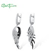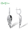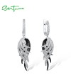 SANTUZZA 925 Sterling Silver Drop Earrings Black White Feather Fine Jewelry