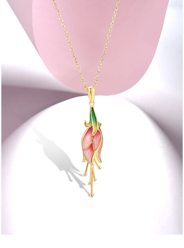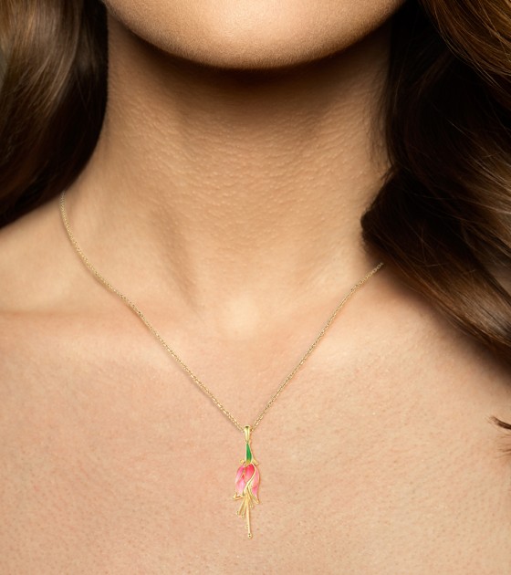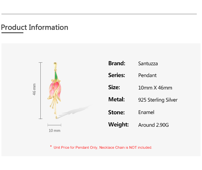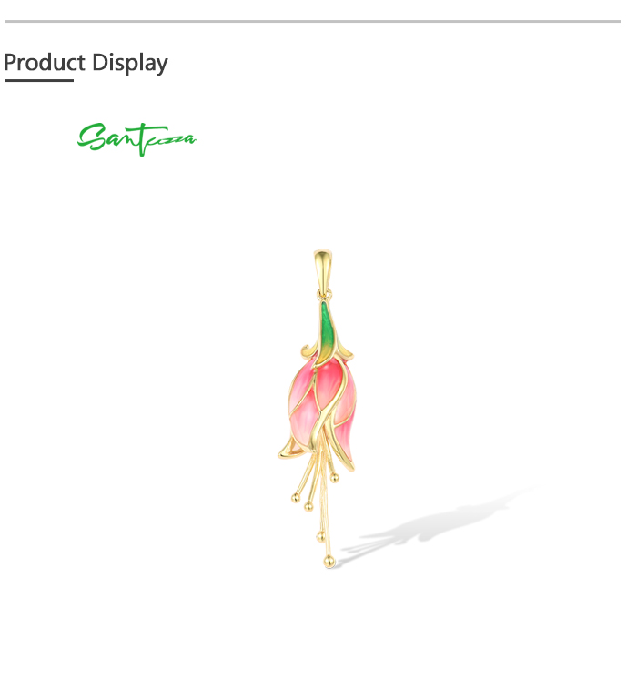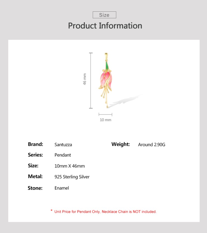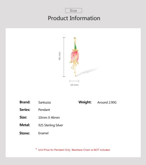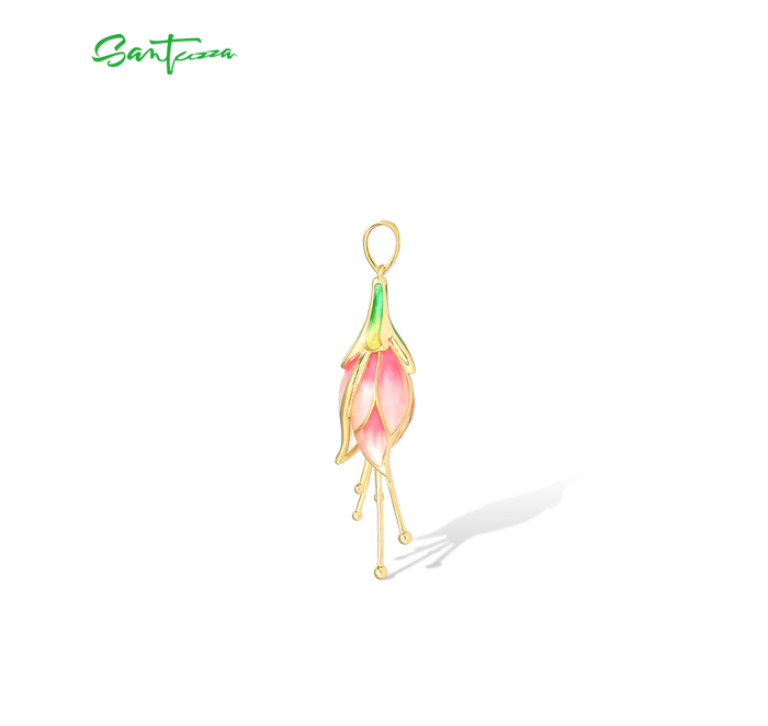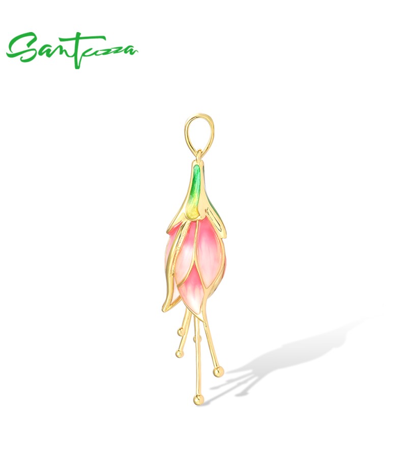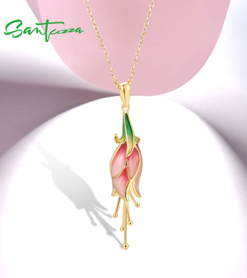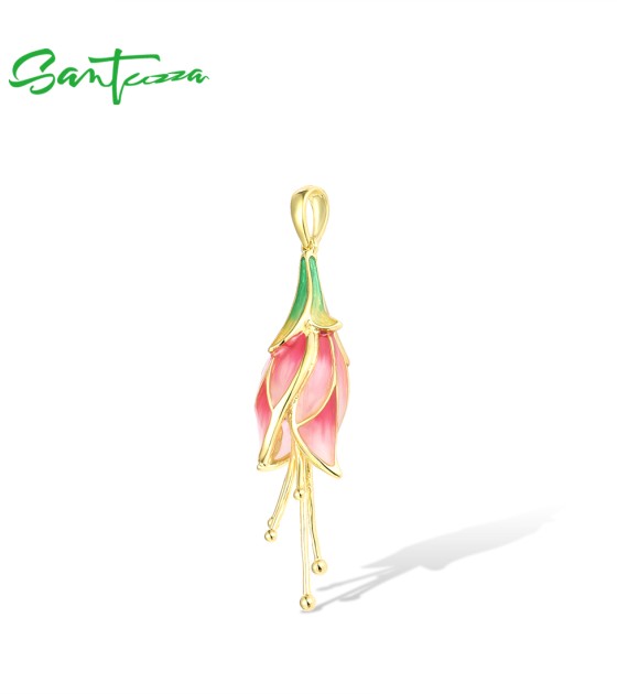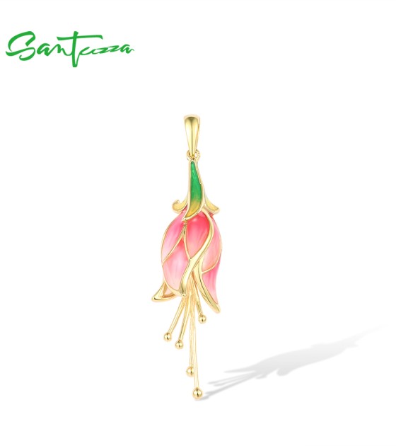 SANTUZZA 925 Sterling Silver Pendant Elegant Gold Color Tulip Flower Jewelry Enamel