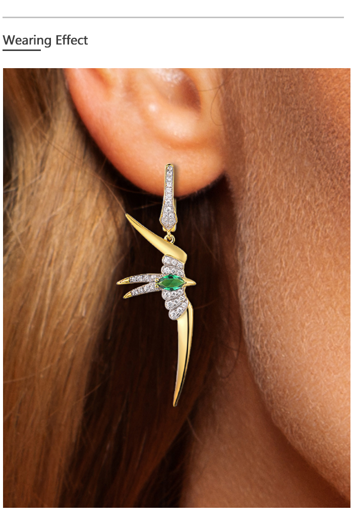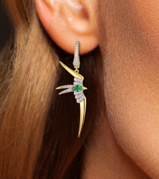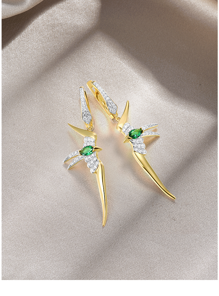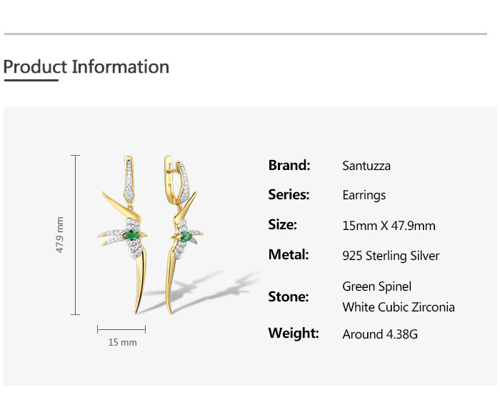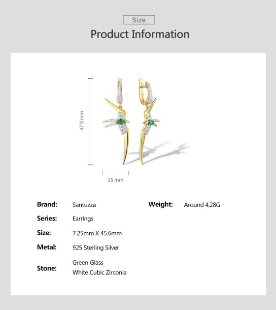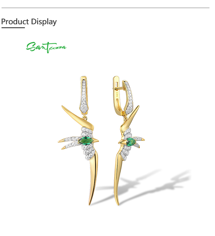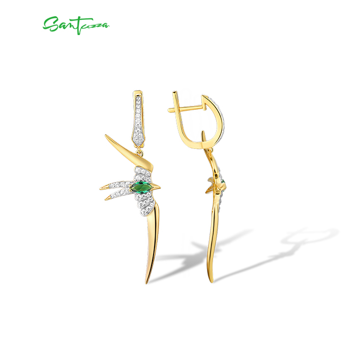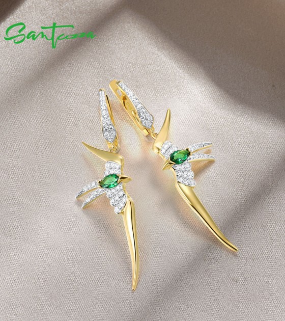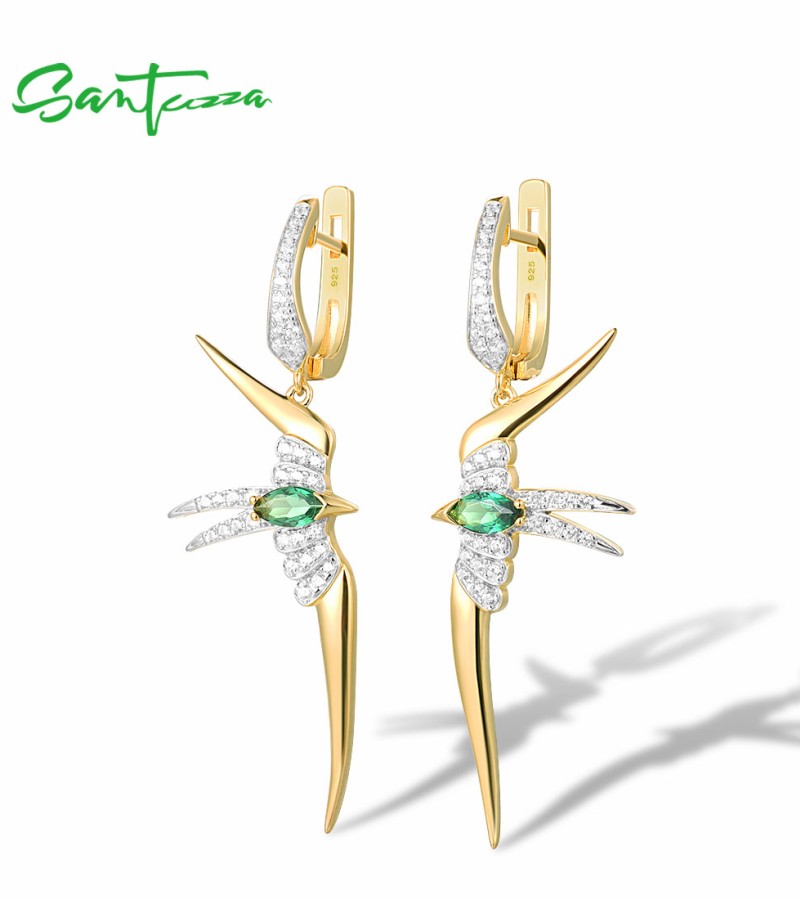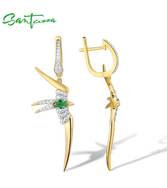SANTUZZA Silver Earrings 925 Sterling Silver Green Spinel White CZ Gold Color Earrings Swallow Jewelry