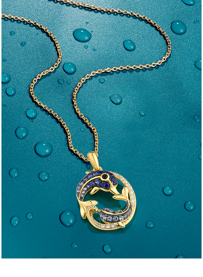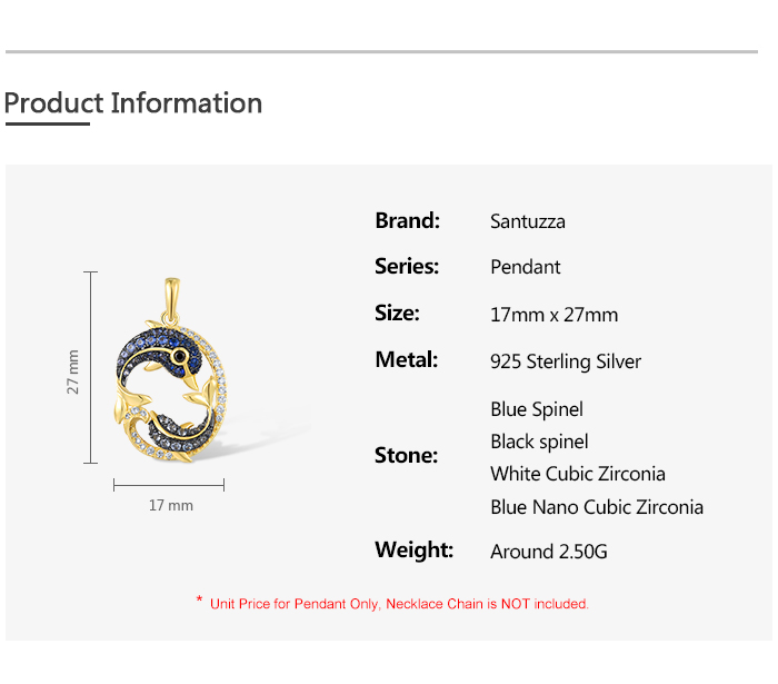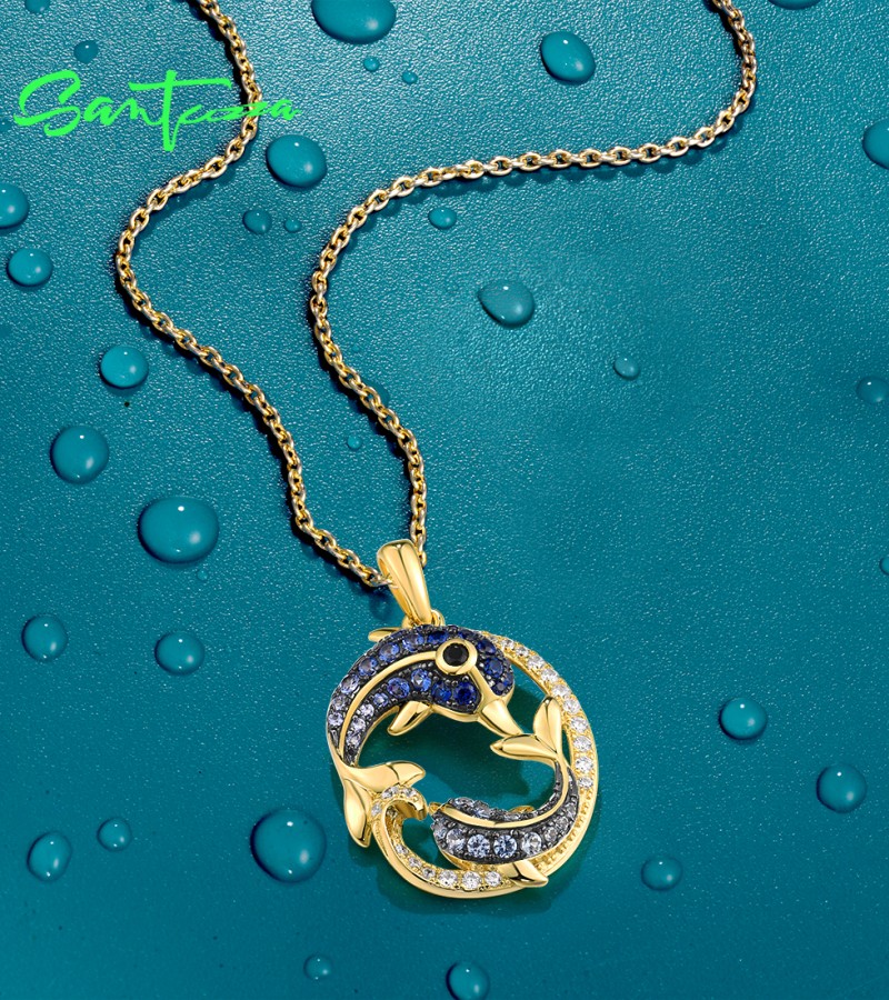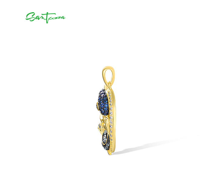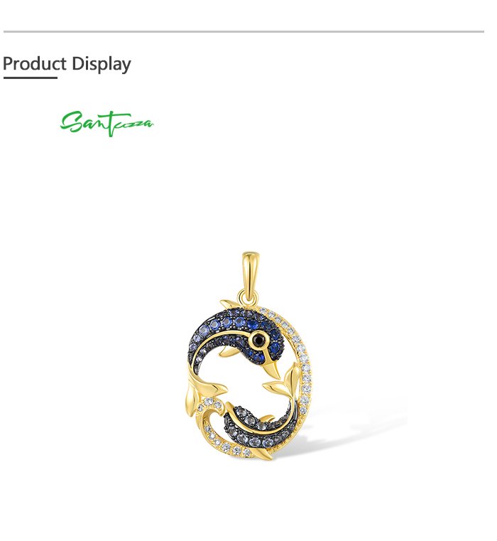 SANTUZZA 925 Sterling Silver Pendant Black Blue Stones White CZ Dolphin Ocean Fine Jewelry