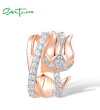 SANTUZZA 925 Sterling Silver Pendant White Cubic Zirconia Rose Gold Color Flower Fine Jewelry