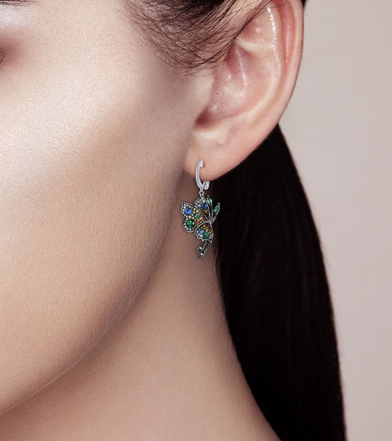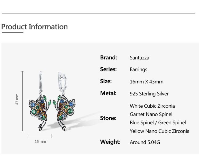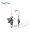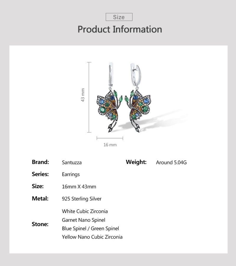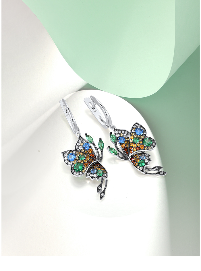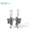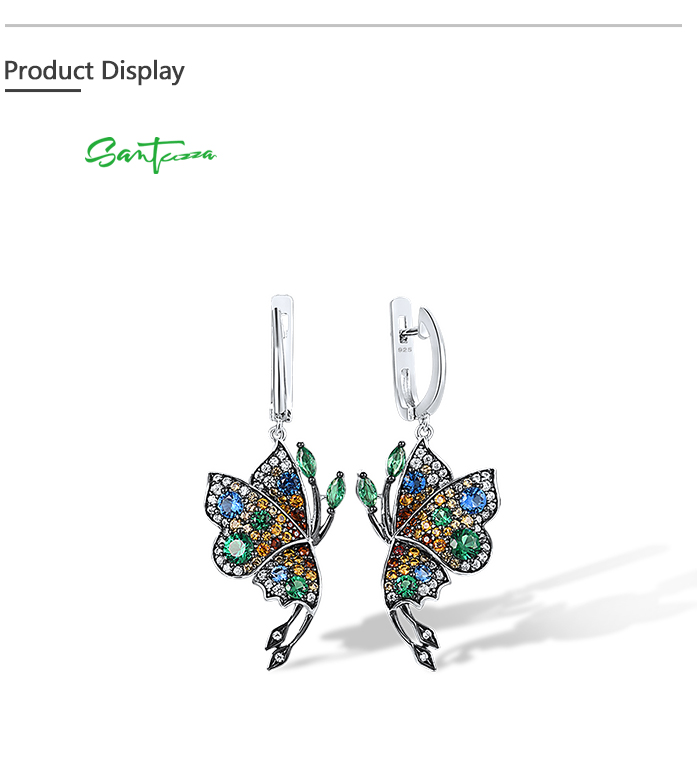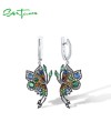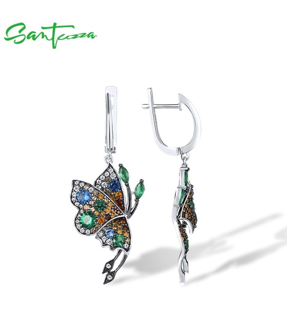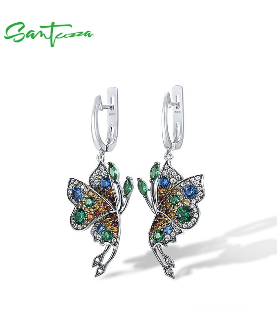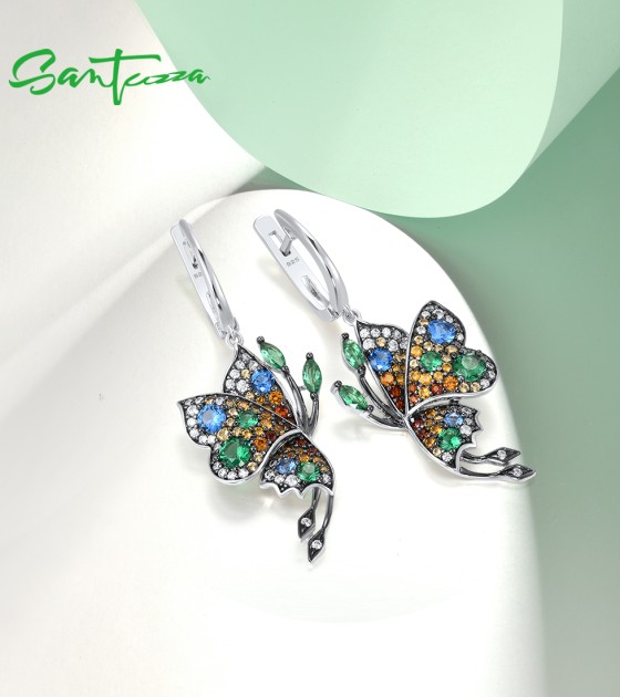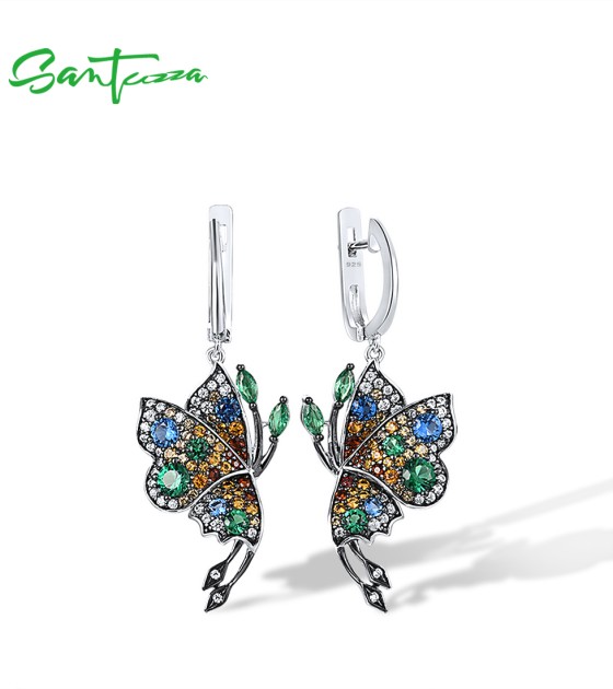 SANTUZZA 925 Sterling Silver Dangling Earrings Colorful Stones Butterfly Fine Jewelry