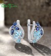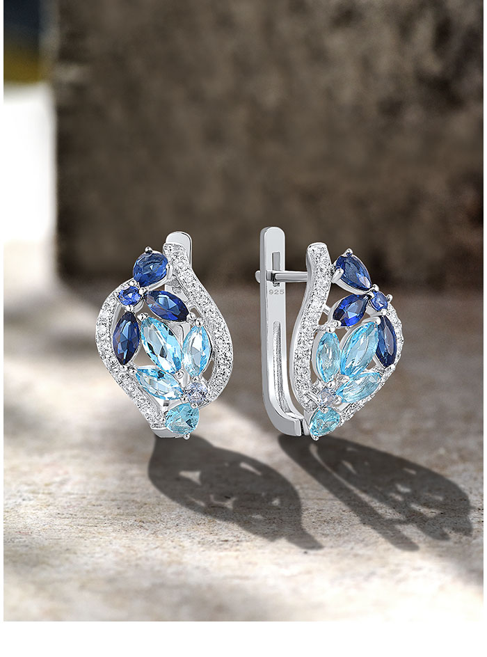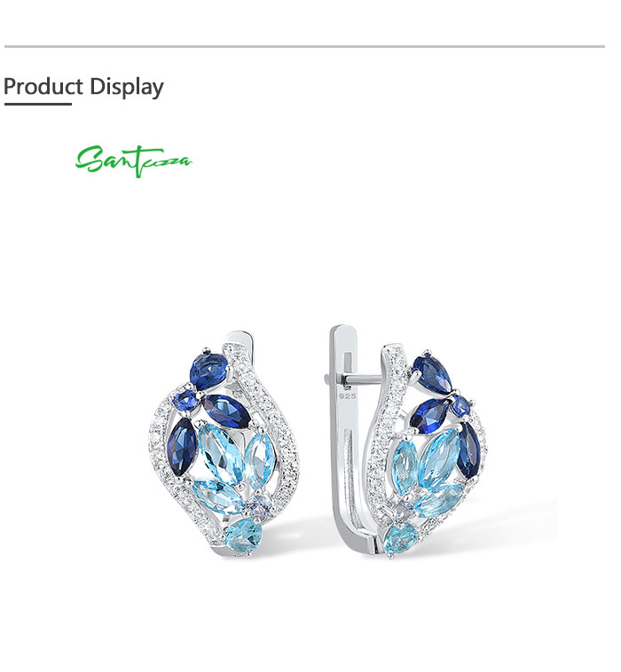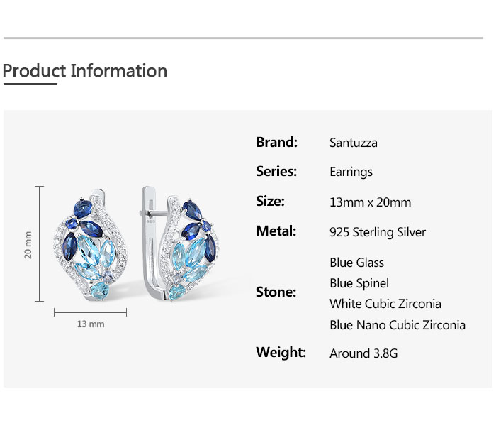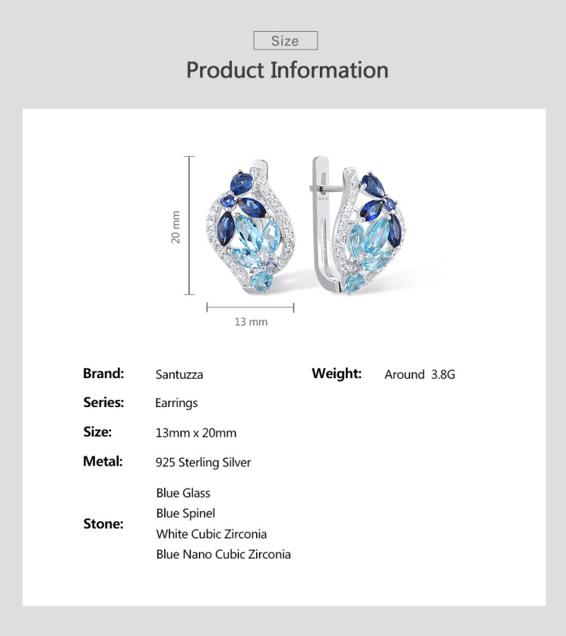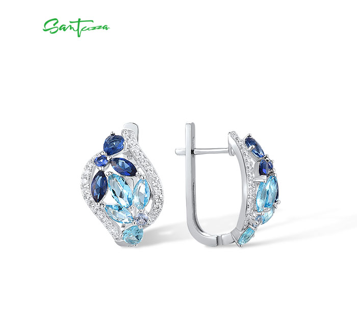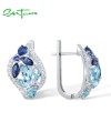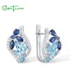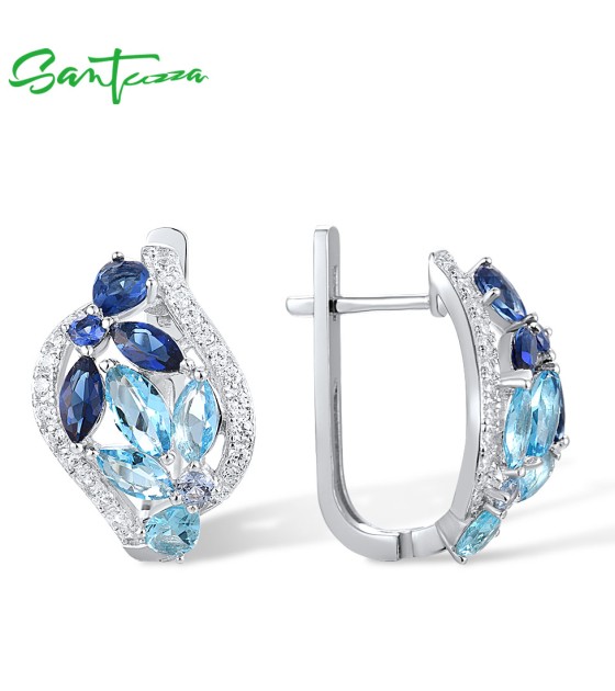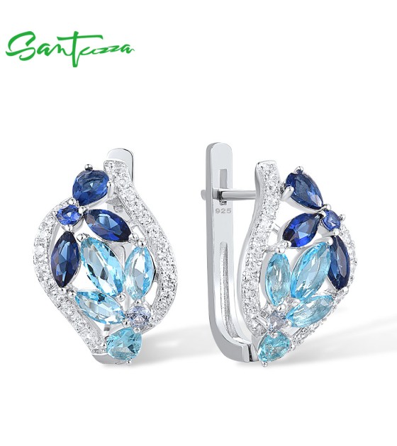 SANTUZZA 925 Sterling Silver Clip Latch Back Earrings Colorful Blue Stone White CZ Fine Jewelry