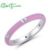 SANTUZZA 925 Sterling Silver White Cubic Zirconia Stackable Ring Jewelry Pink Enamel