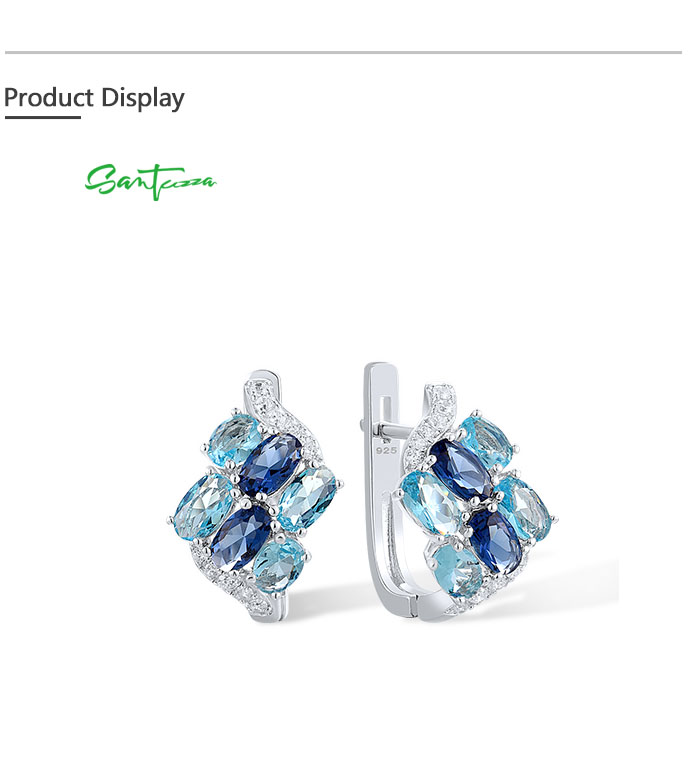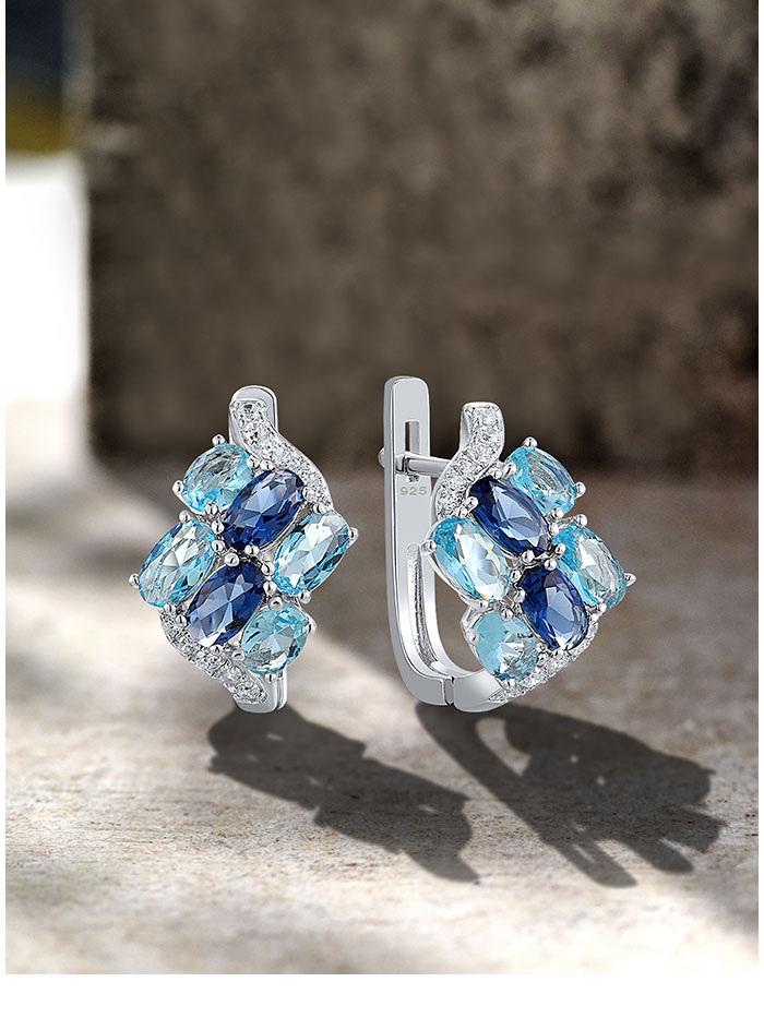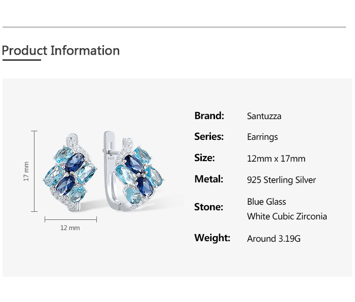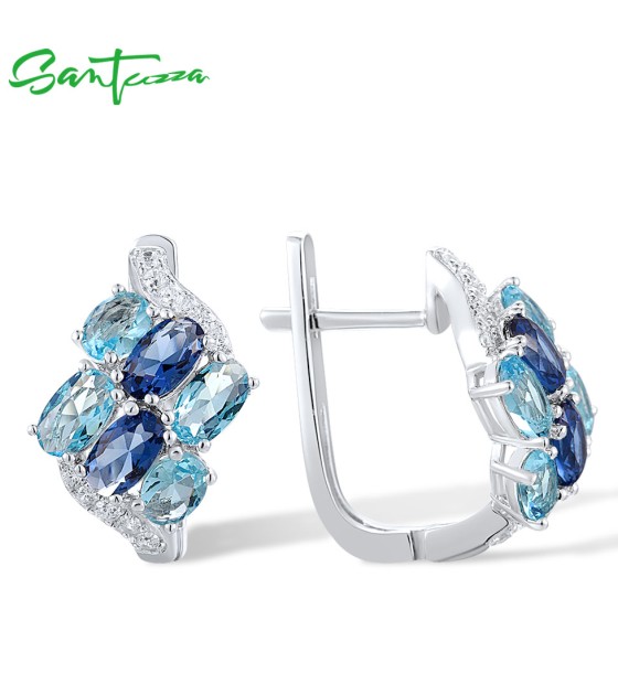 SANTUZZA 925 Sterling Silver Clip Earrings Blue Stone White CZ Cluster Fine Jewelry