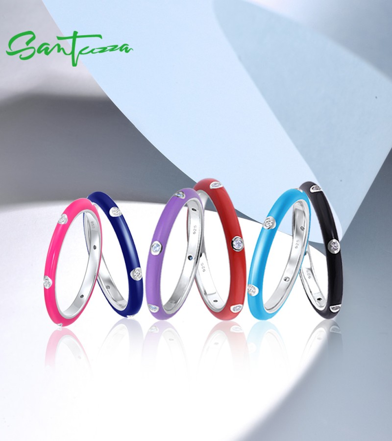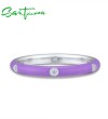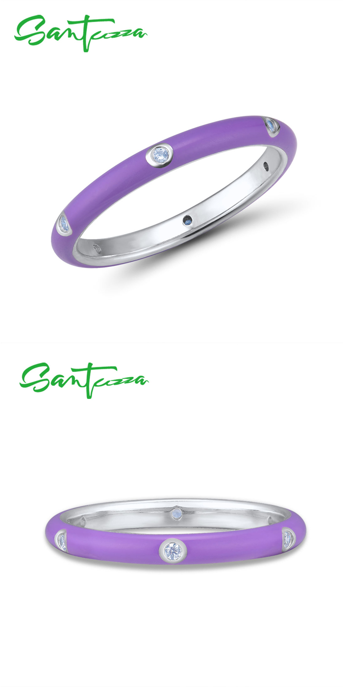 SANTUZZA 925 Sterling Silver White Cubic Zirconia Stackable Ring Jewelry Purple Enamel