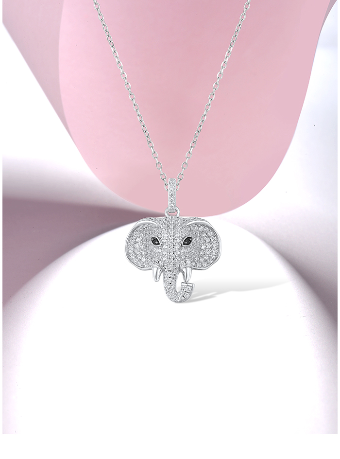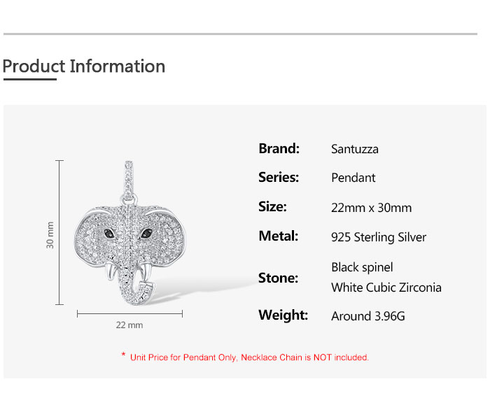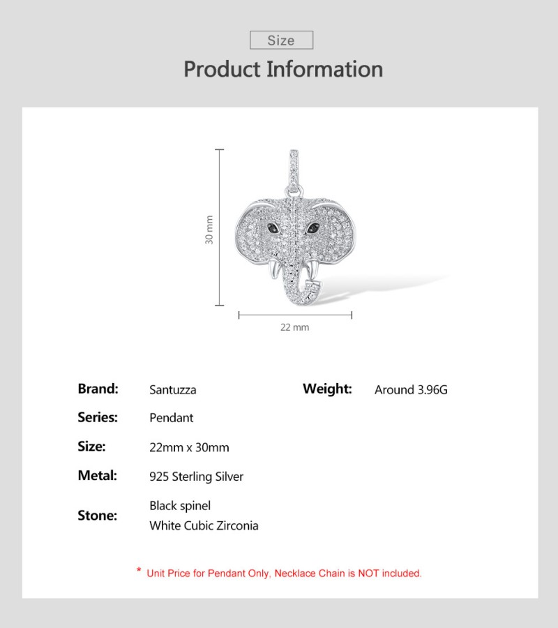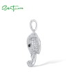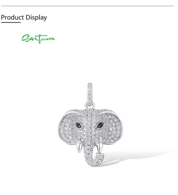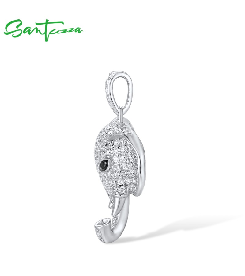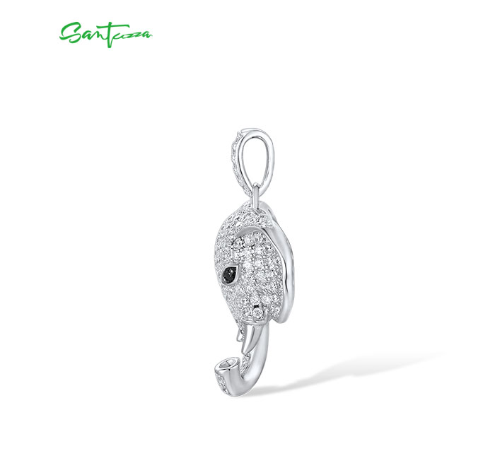SANTUZZA 925 Sterling Silver Elephant Pendant Black Spinel White CZ Animal Fine Jewelry