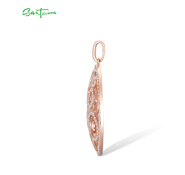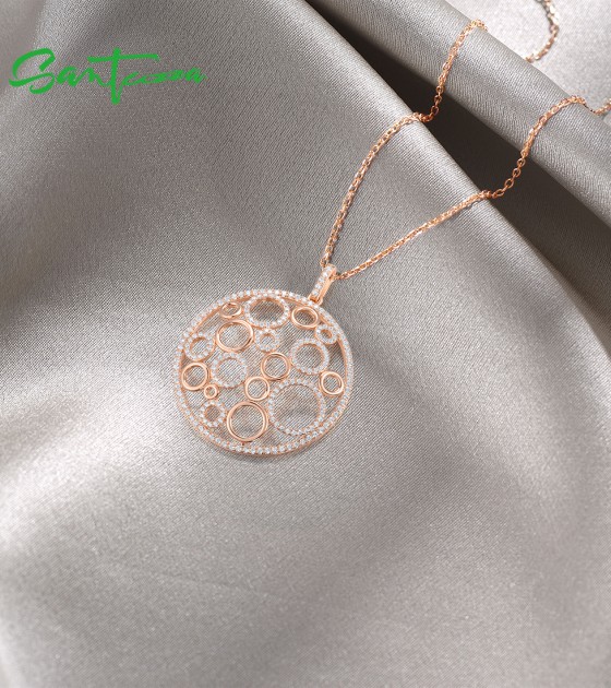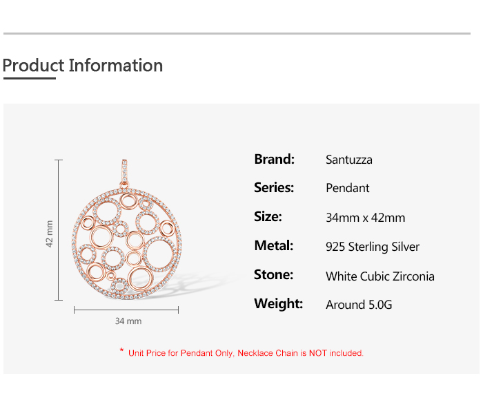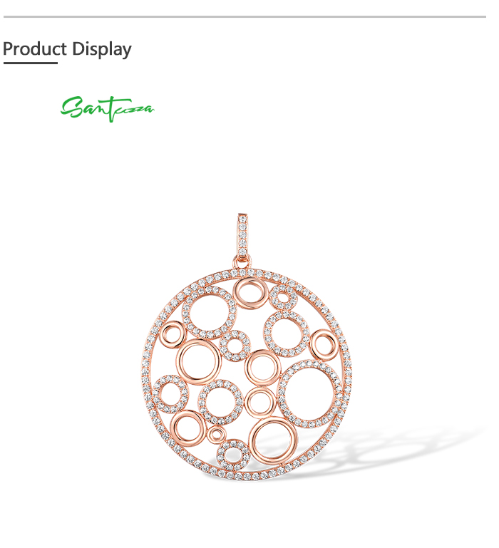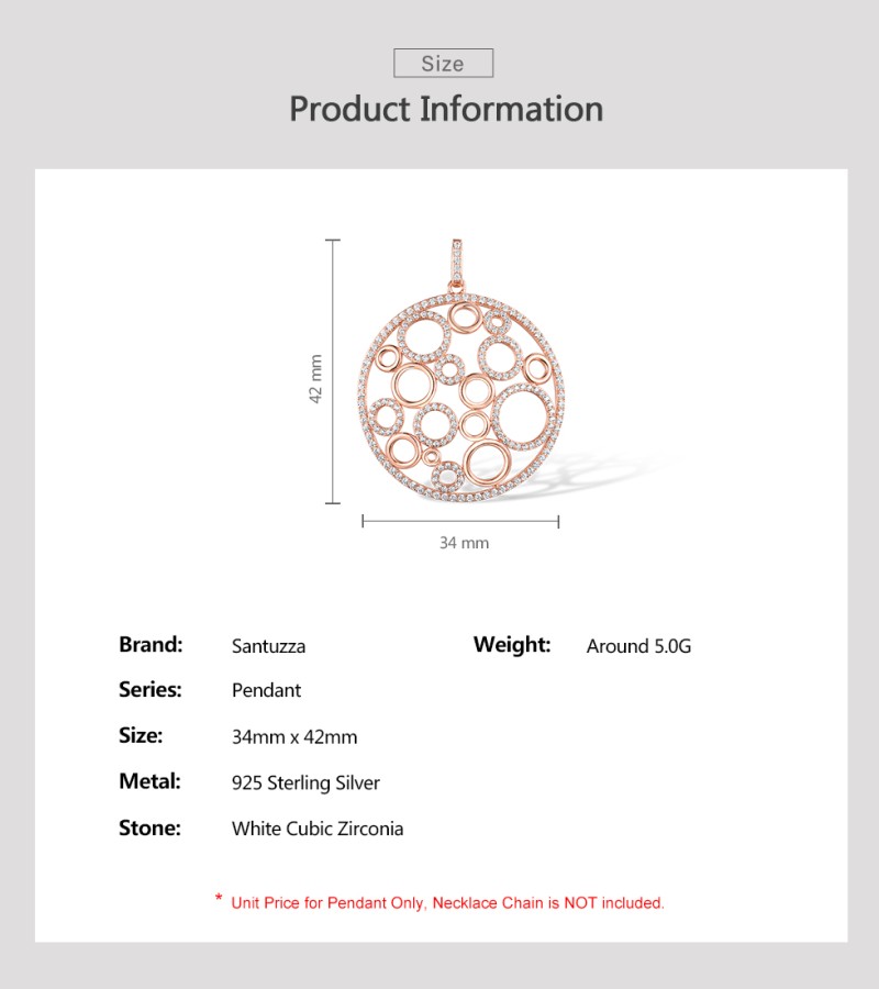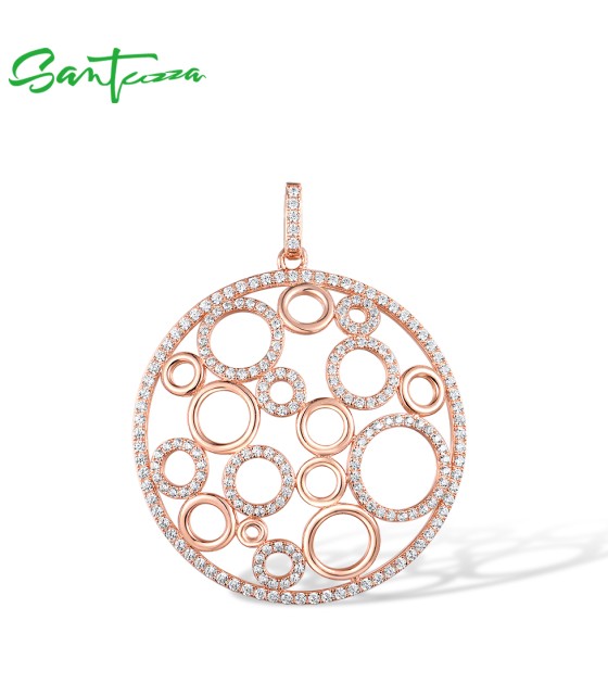 SANTUZZA 925 Sterling Silver Pendant White Cubic Zirconia Circle Geometric Fine Jewelry