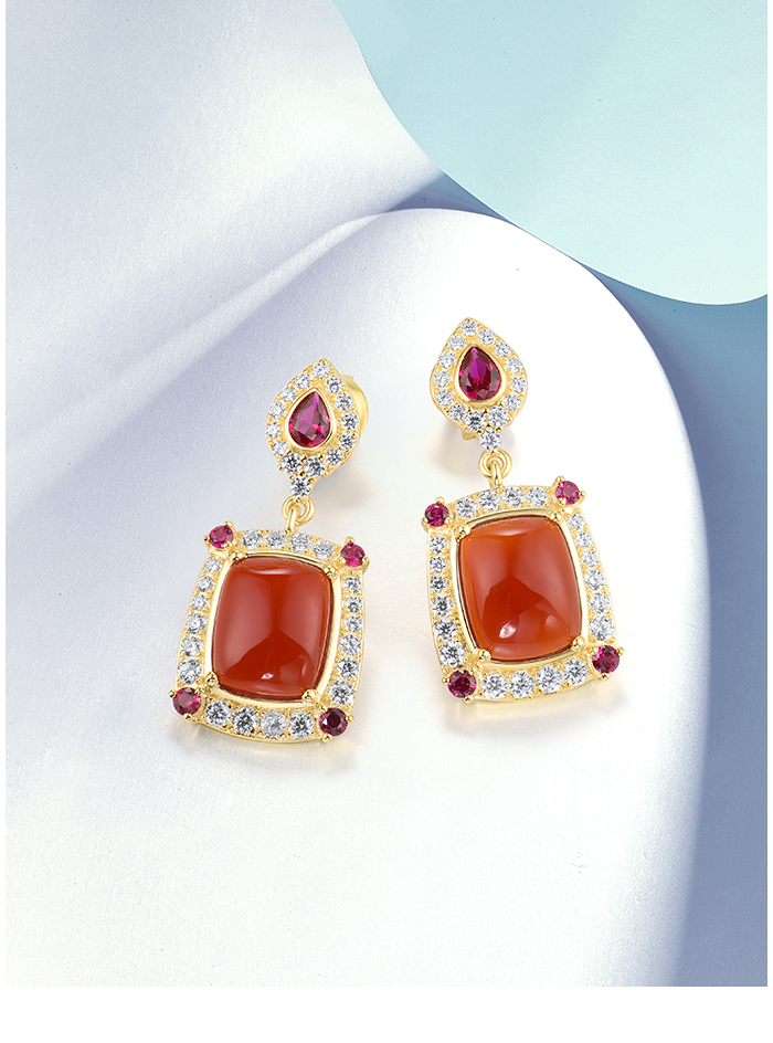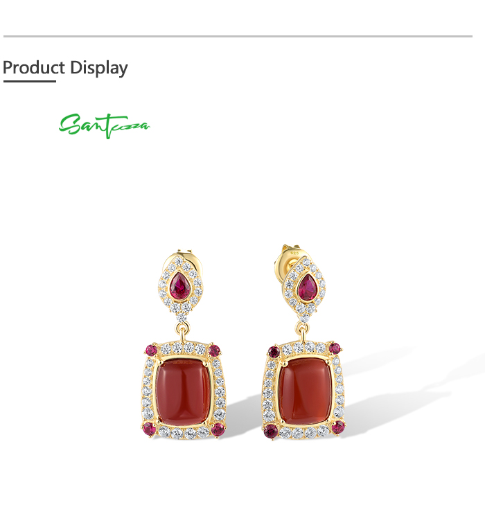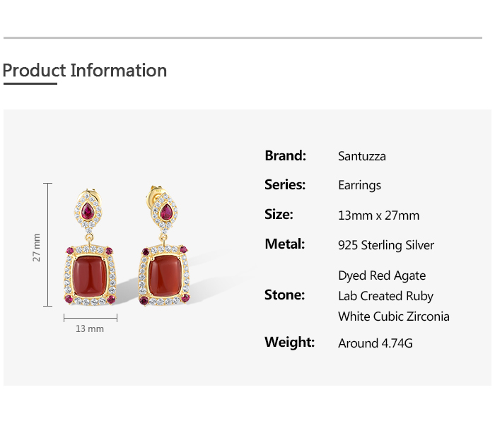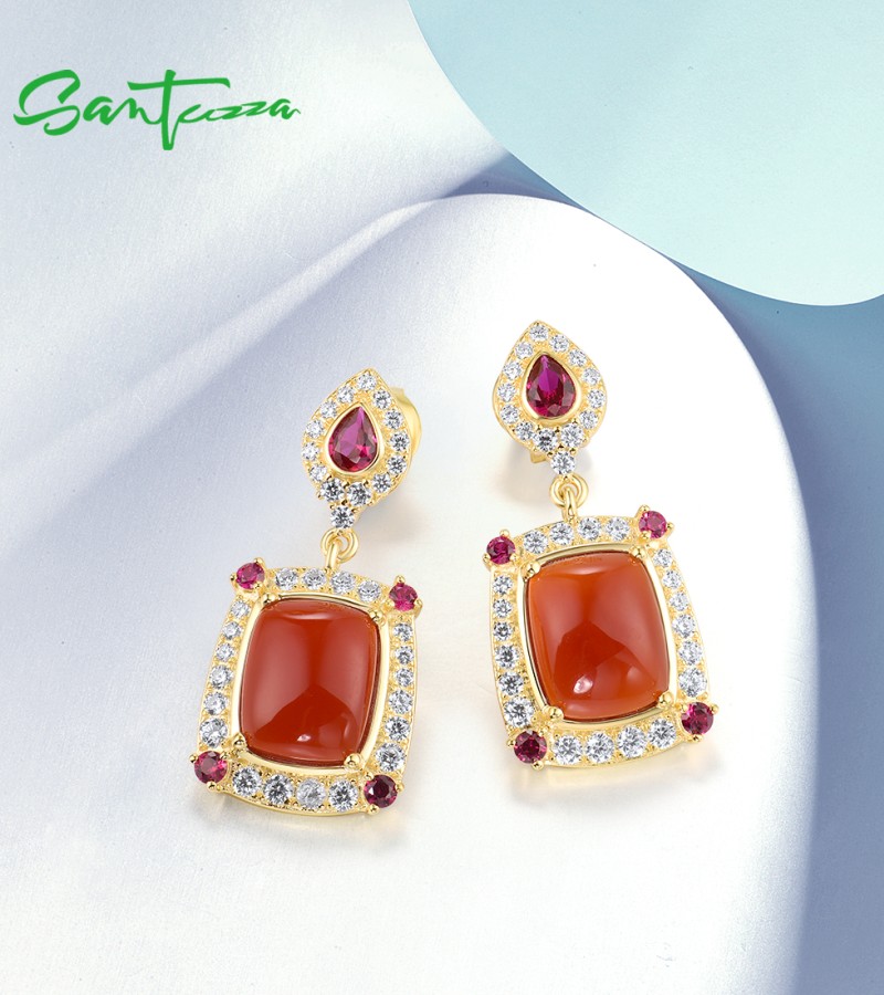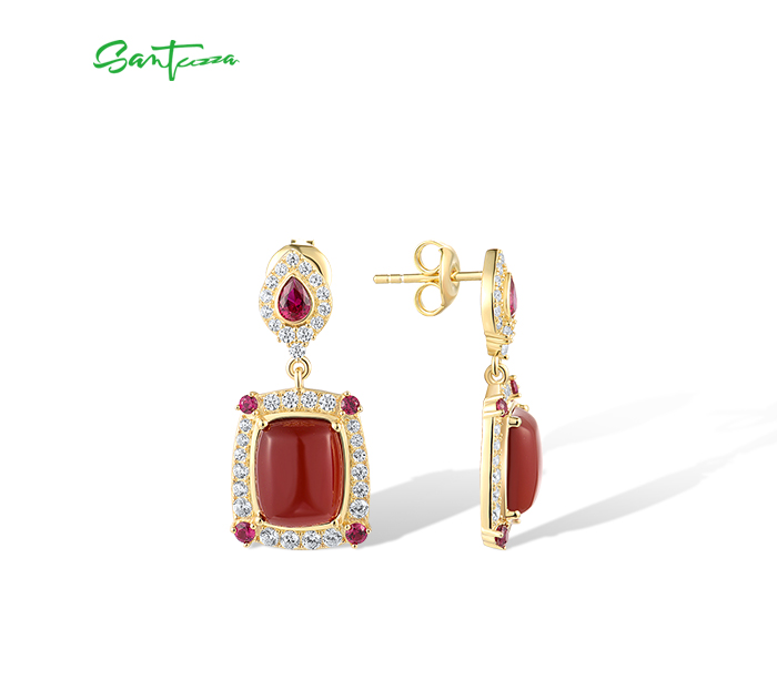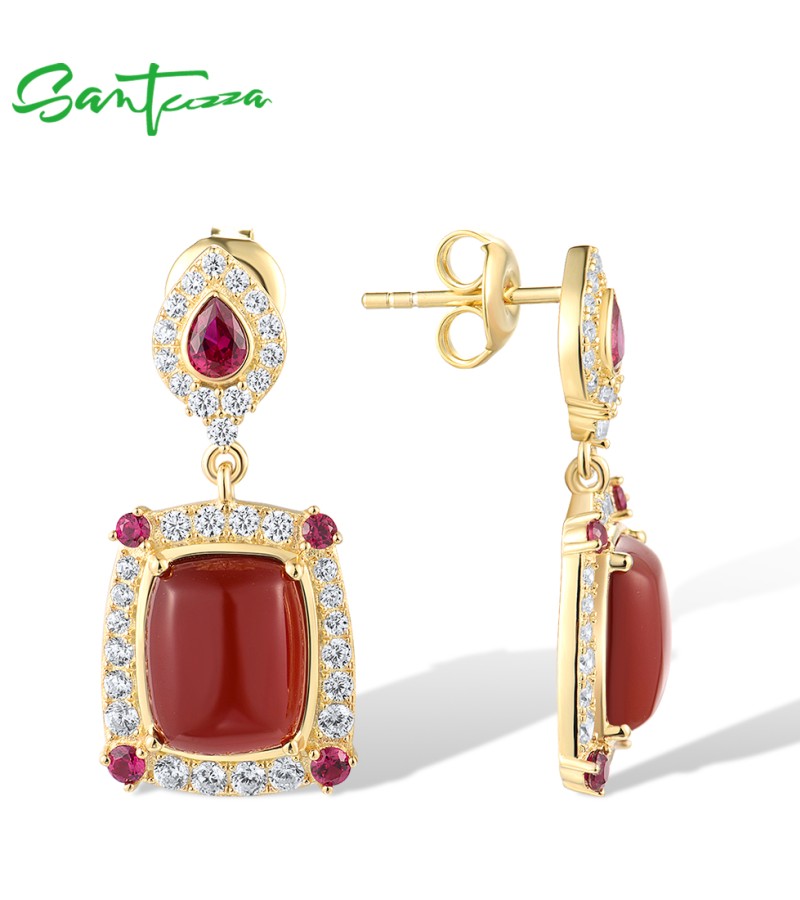 SANTUZZA 925 Sterling Silver Drop Earrings White CZ Dyed Red Agate Jewelry
