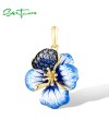 SANTUZZA 925 Sterling Silver Pendant Blue Spinel Enamel Flower Jewelry