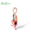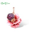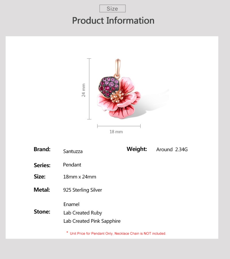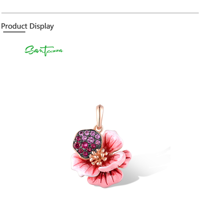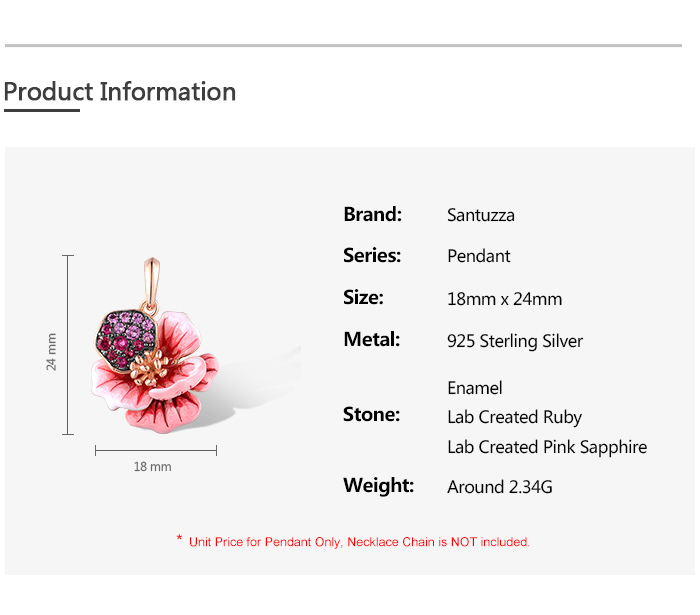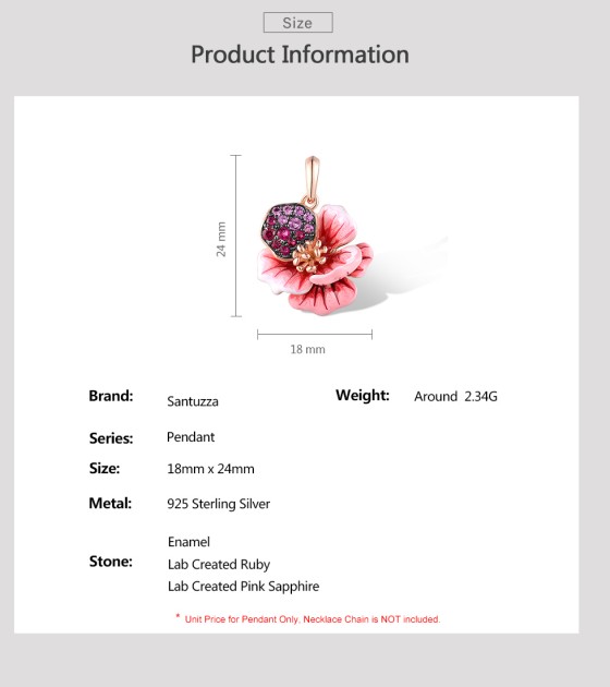 SANTUZZA 925 Sterling Silver Pendant Created Pink Red Sapphire Enamel Flower Jewelry