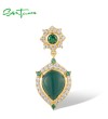 SANTUZZA 925 Sterling Silver Pendant White CZ Dyed Green Agate Jewelry