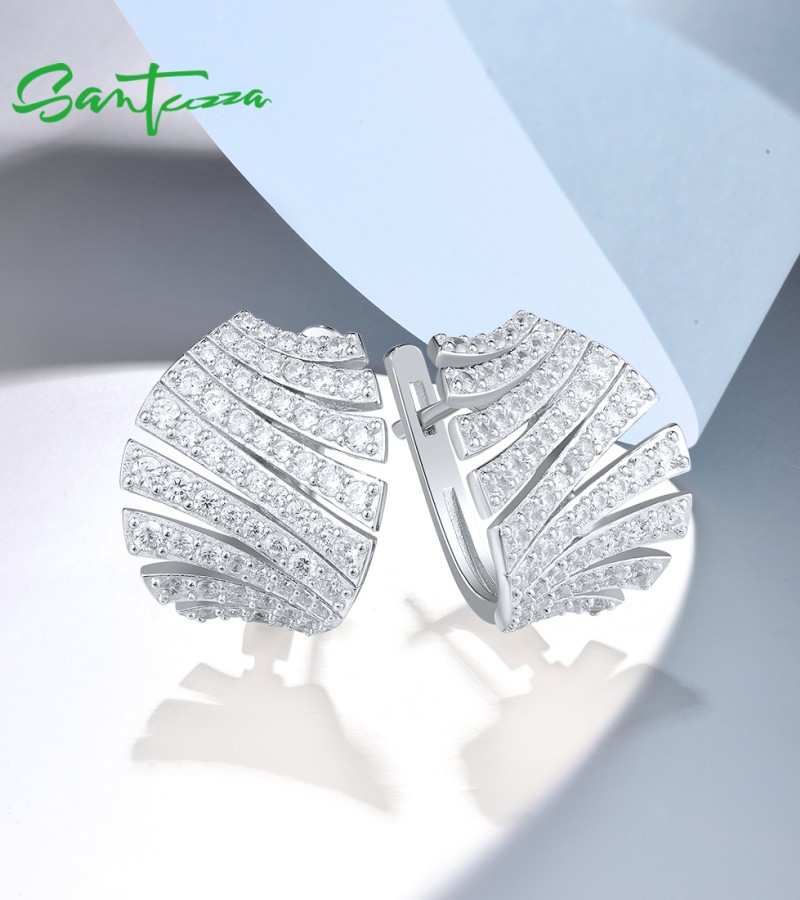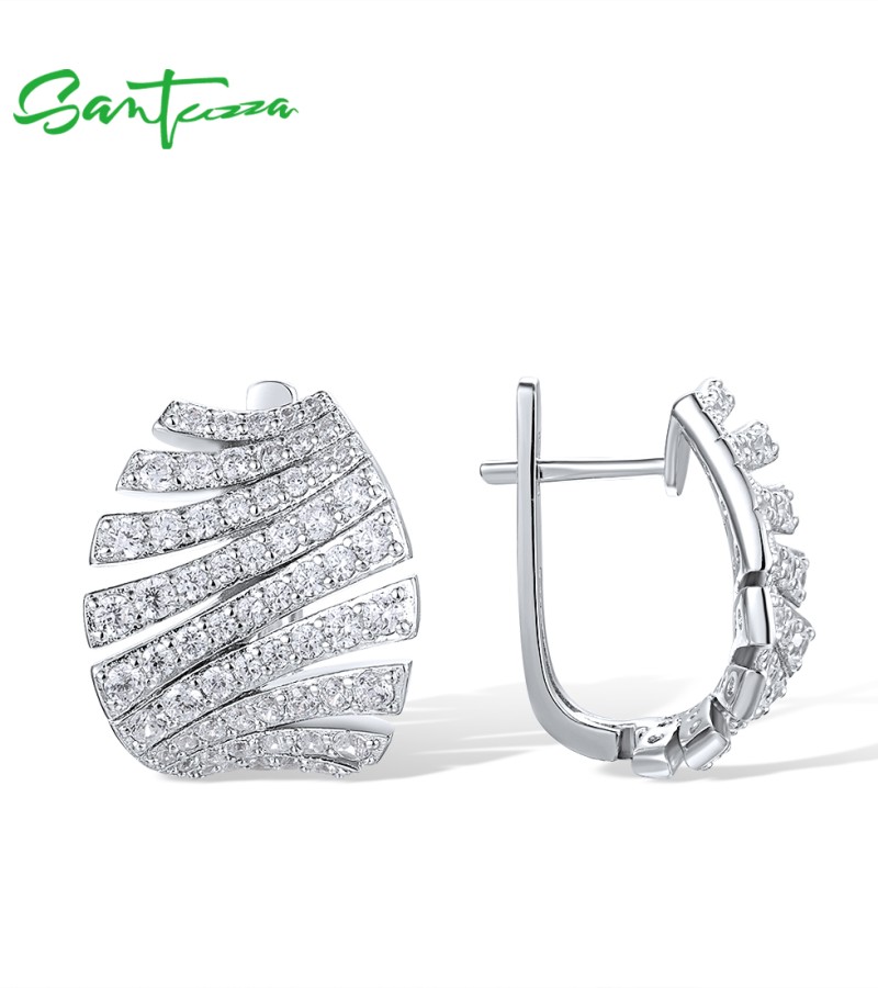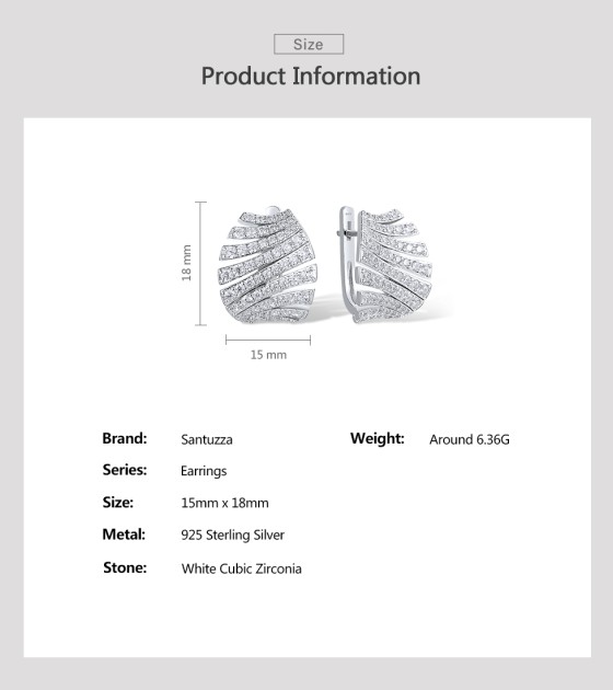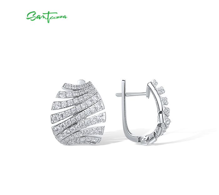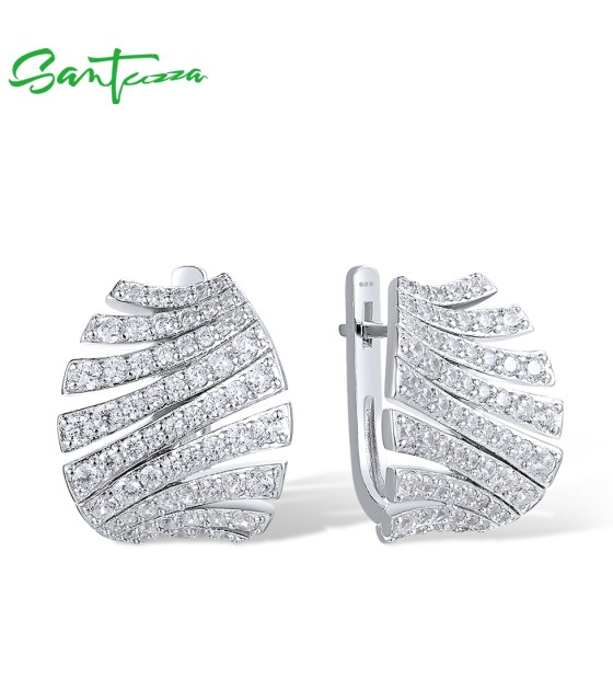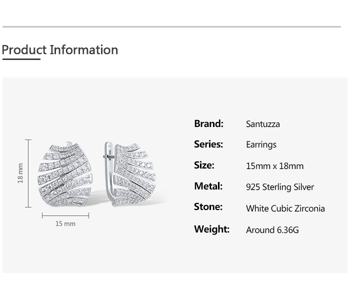 SANTUZZA 925 Sterling Silver Earrings White Cubic Zirconia Jewelry