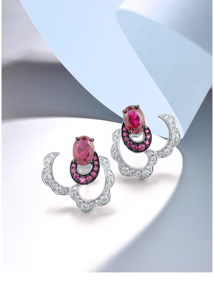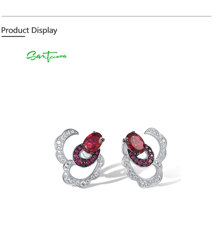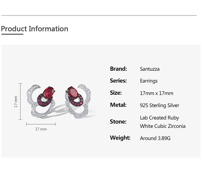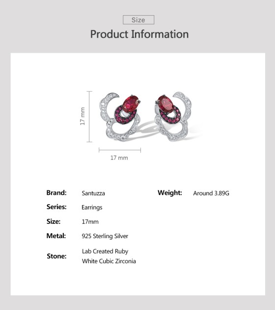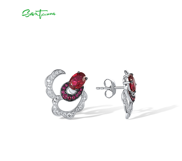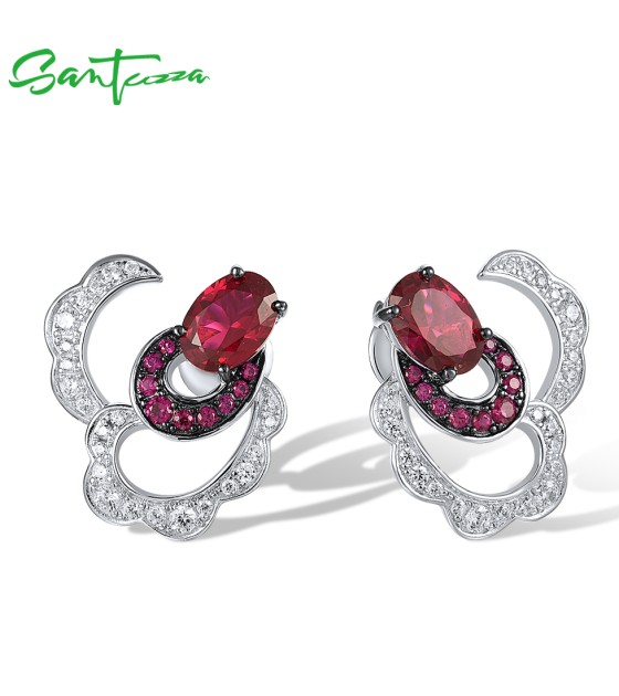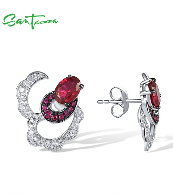 SANTUZZA 925 Sterling Silver Earrings Created Ruby White CZ Jewelry