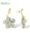 SANTUZZA 925 Sterling Silver Dangling Earrings Green Spinel Flower Jewelry