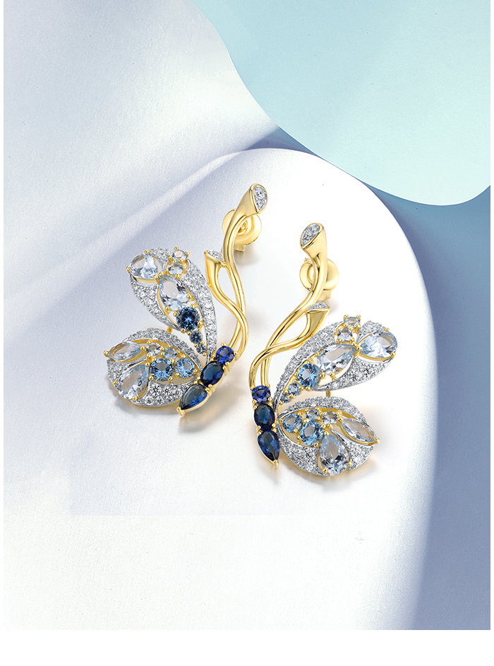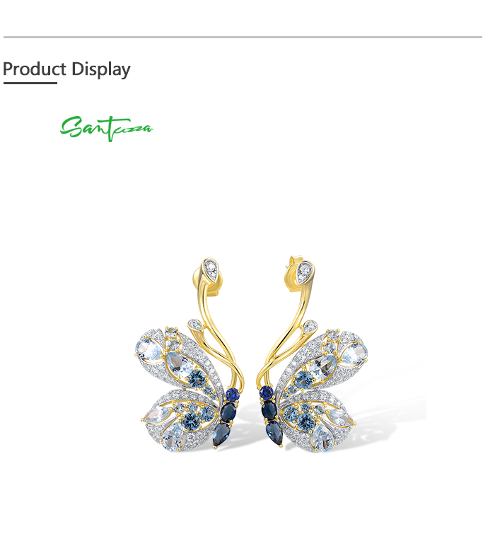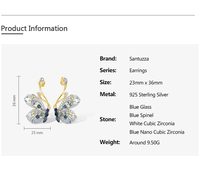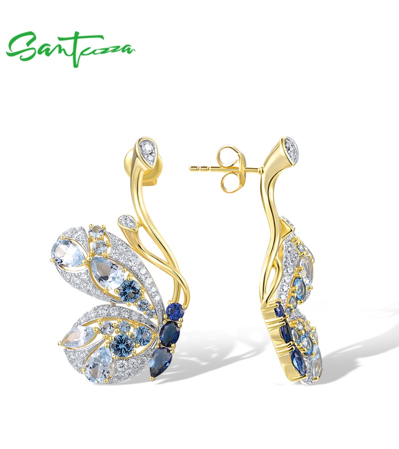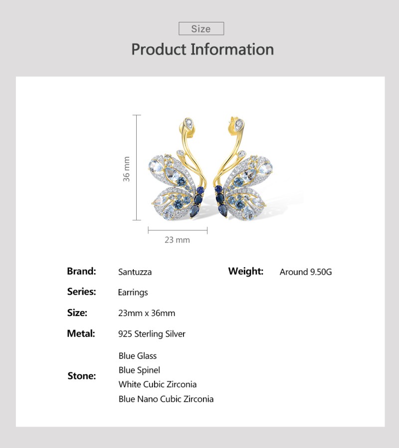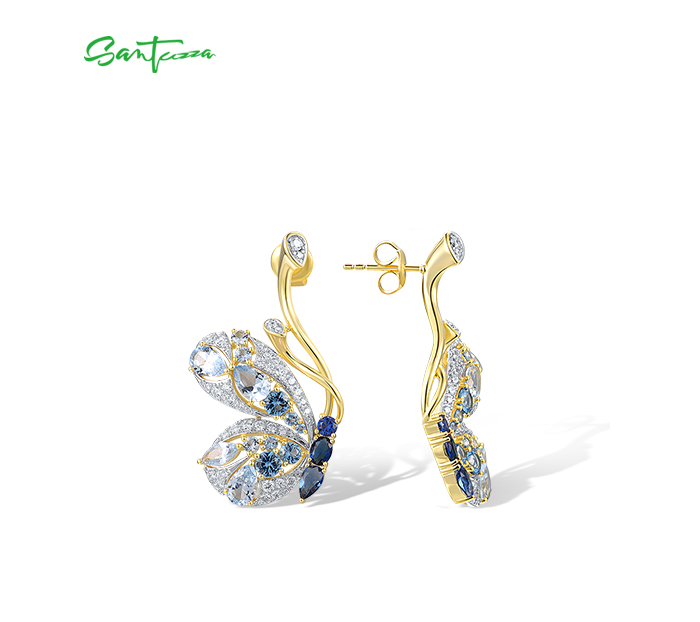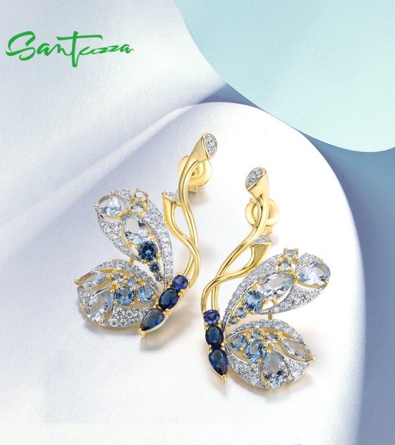 SANTUZZA 925 Sterling Silver Stud Earrings Blue Spinel White CZ Gorgeous Drop Butterfly Jewelry