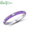 SANTUZZA 925 Sterling Silver White Cubic Zirconia Stackable Ring Jewelry Purple Enamel