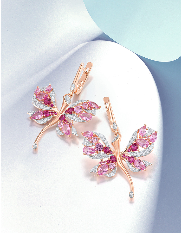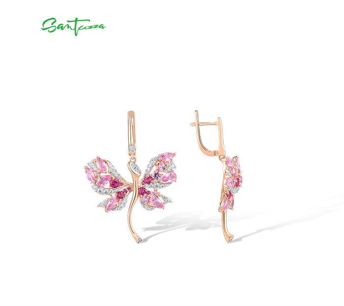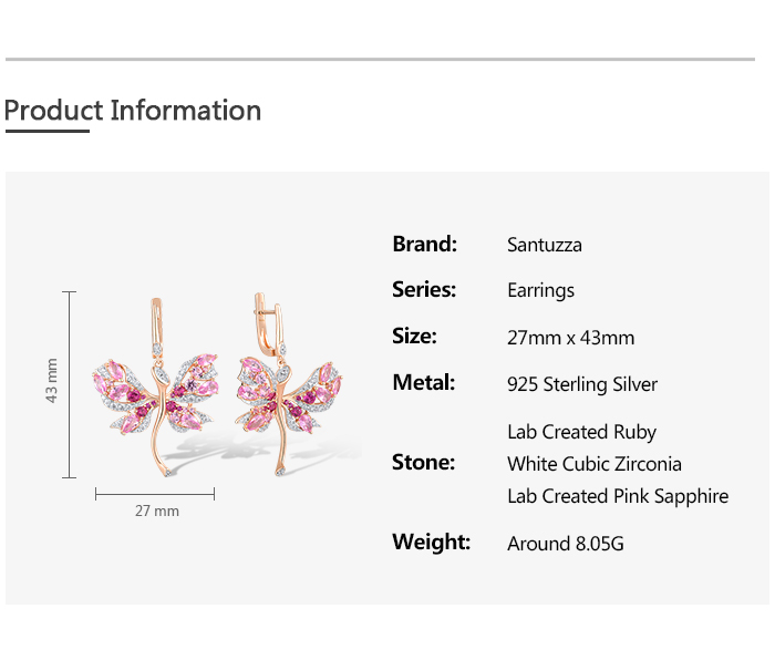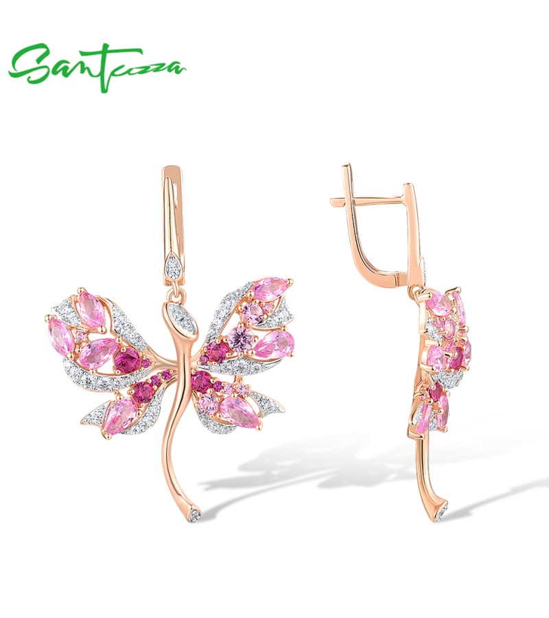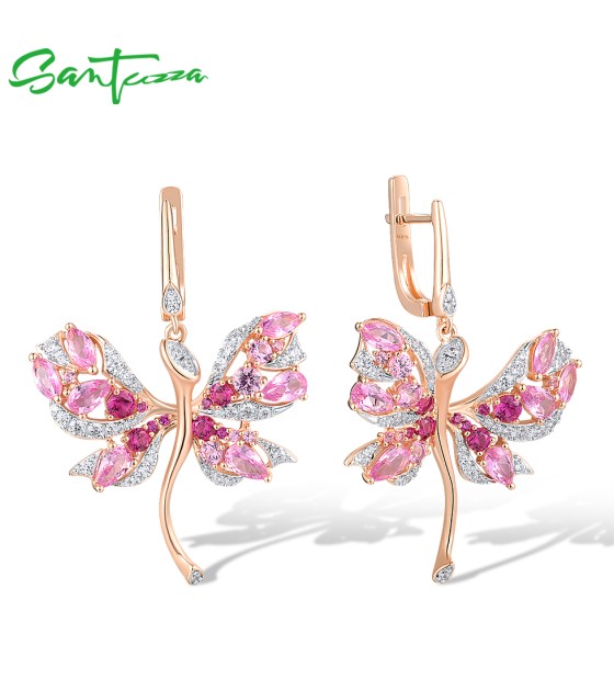 SANTUZZA 925 Sterling Silver Dangling Earrings Created Pink Sapphire Ruby Jewelry